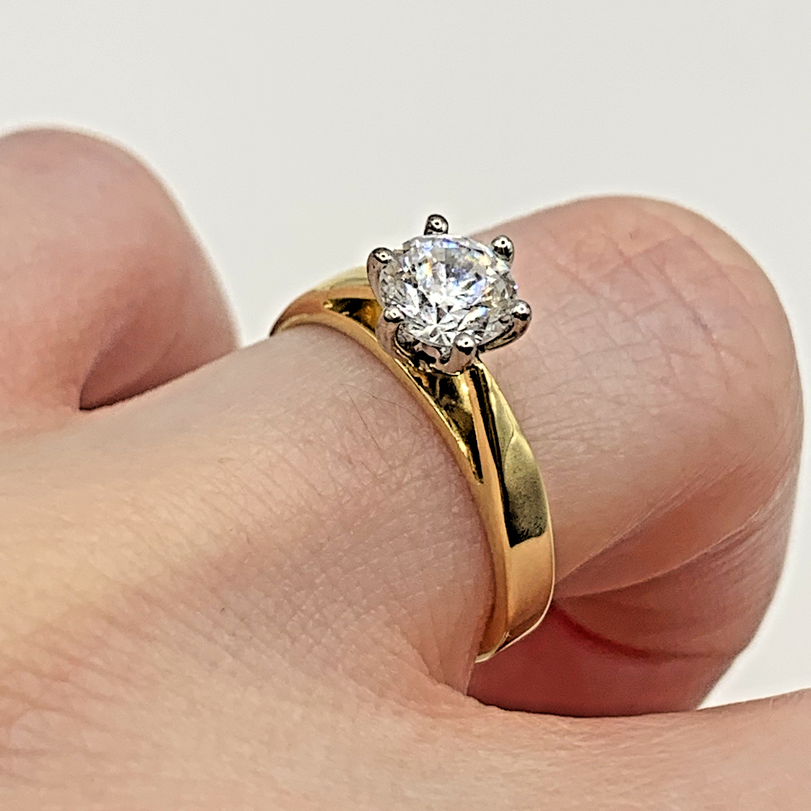 18 ct Gold Diamond .75ct Solitaire Ring 18k 750 Yellow Gold - Size L