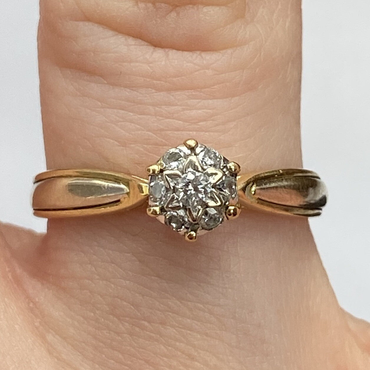 18 ct Gold Diamond Cluster Ring .15ct 750 Yellow Gold - Size M
