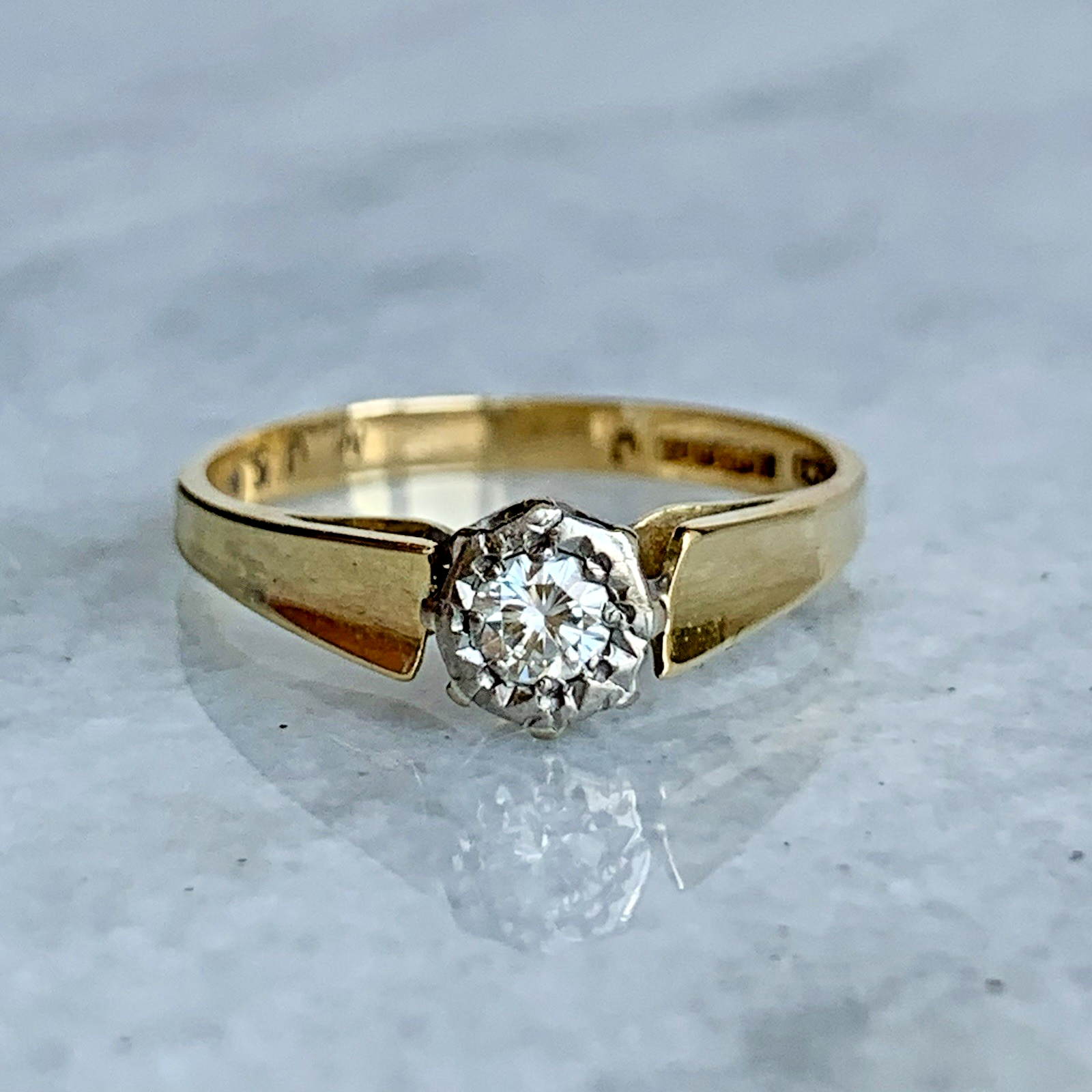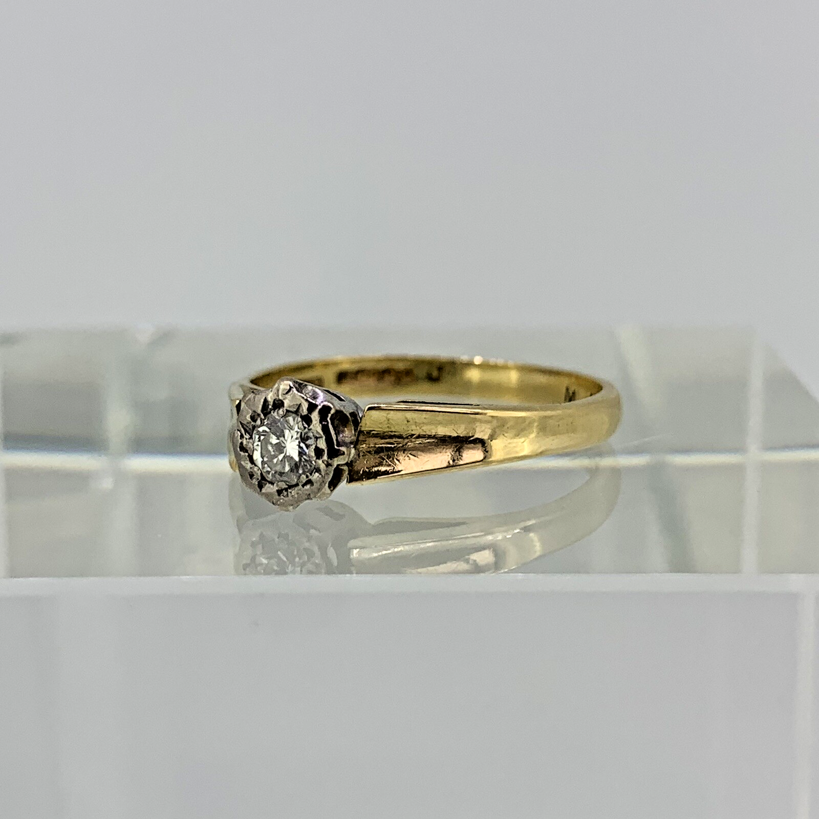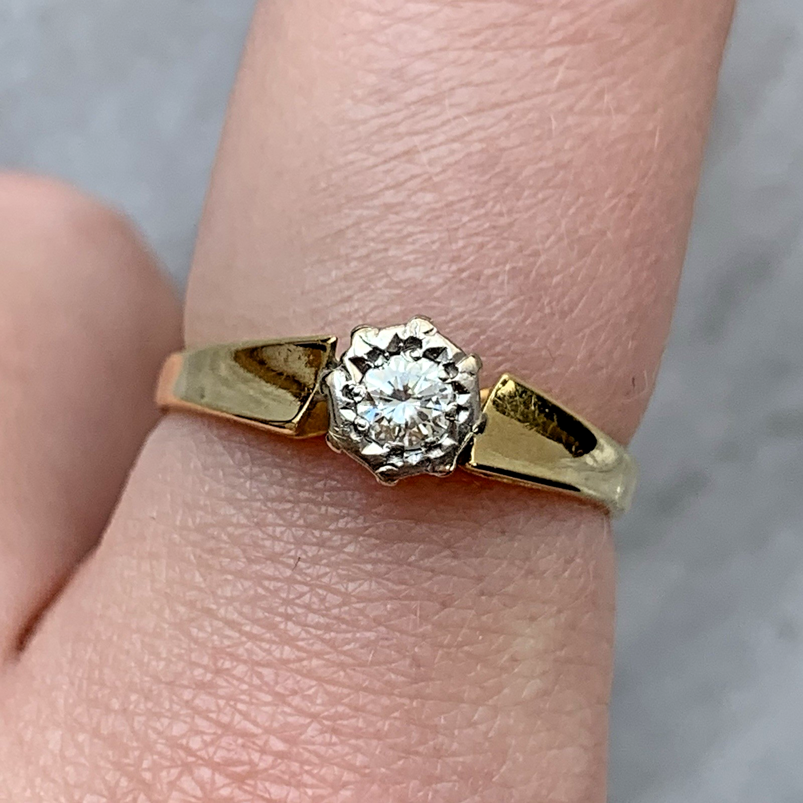 18 ct Gold Diamond Ring Solitaire .15ct Retro Shoulder Yellow Gold - Size N 1/2