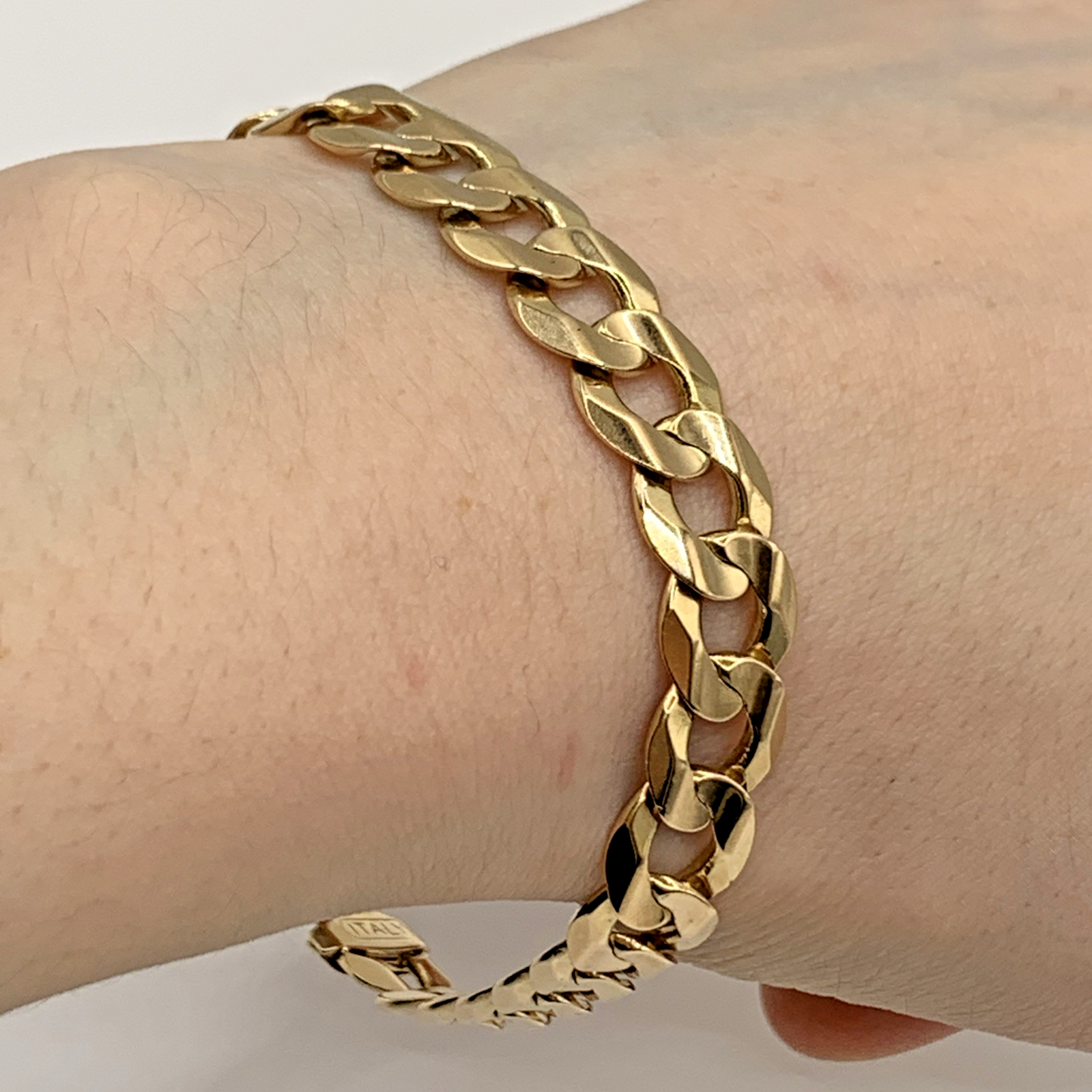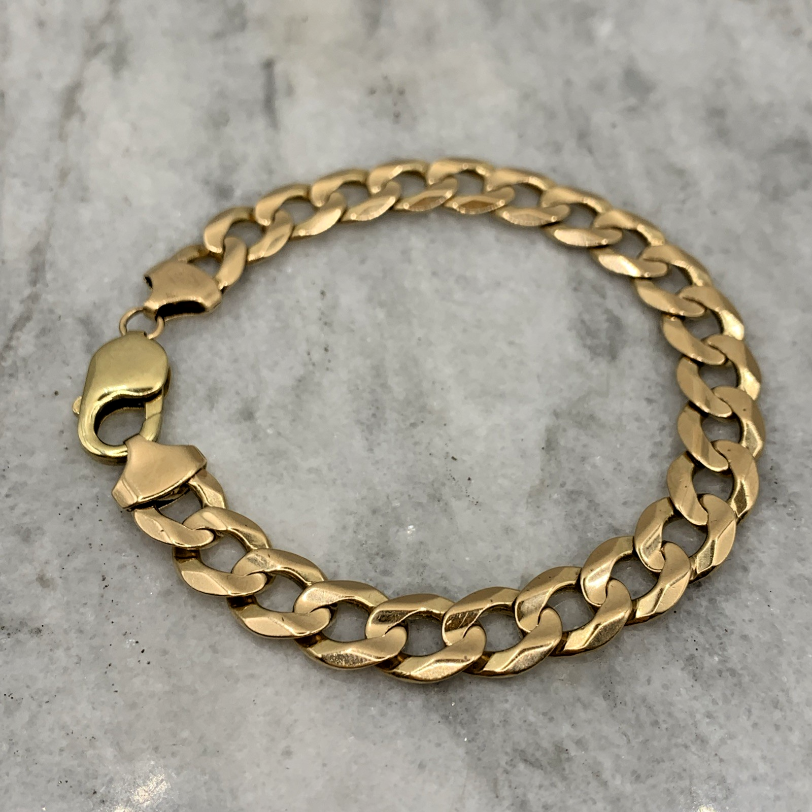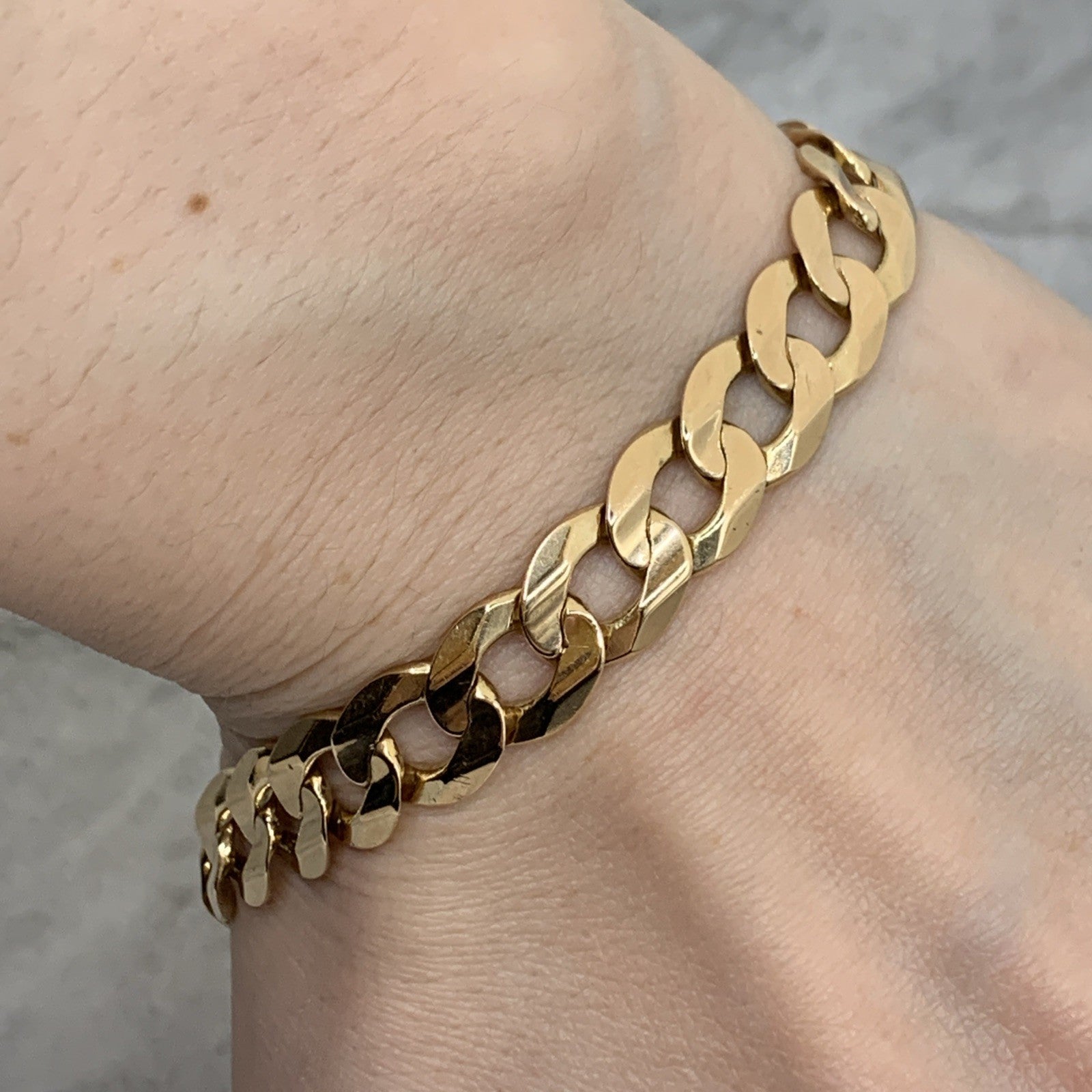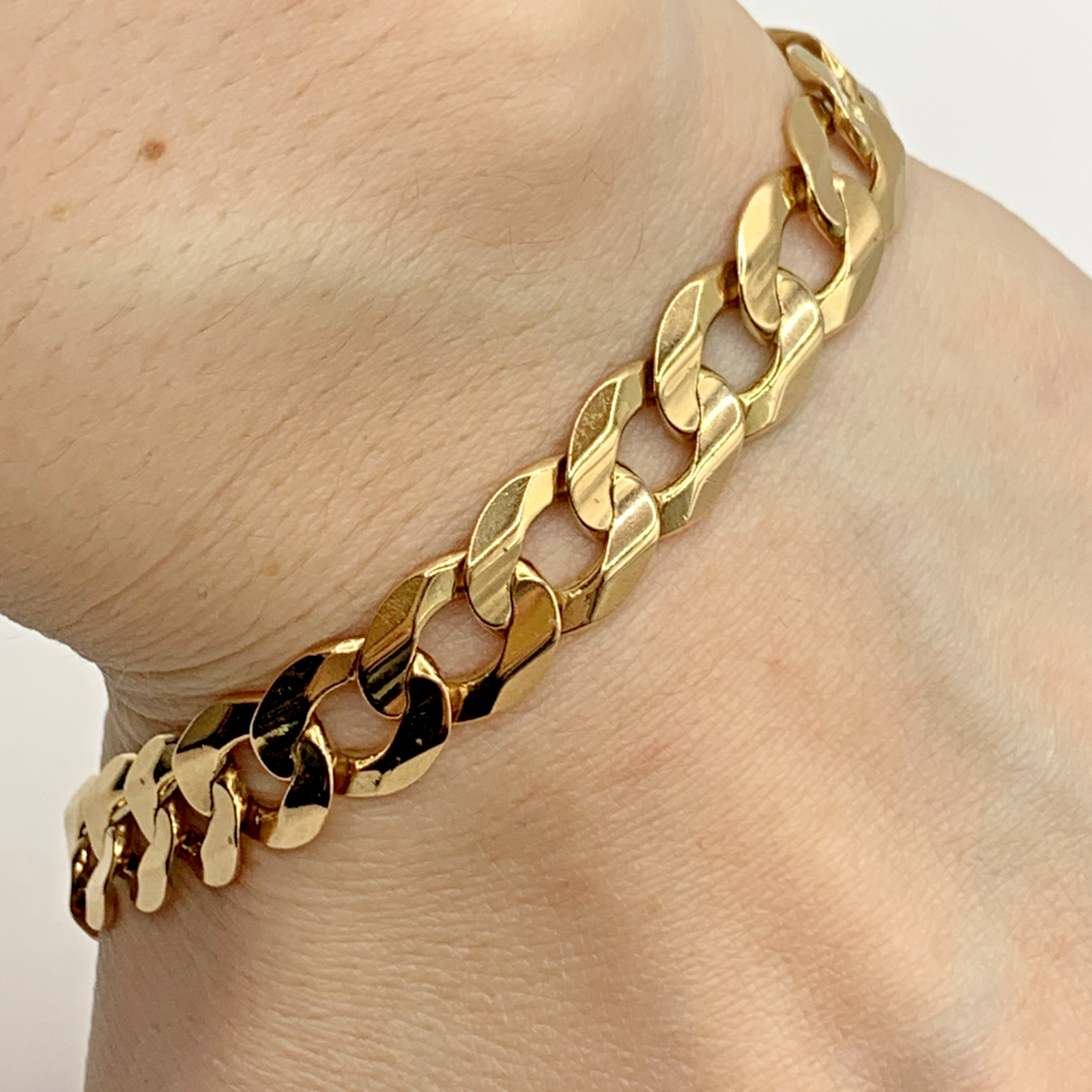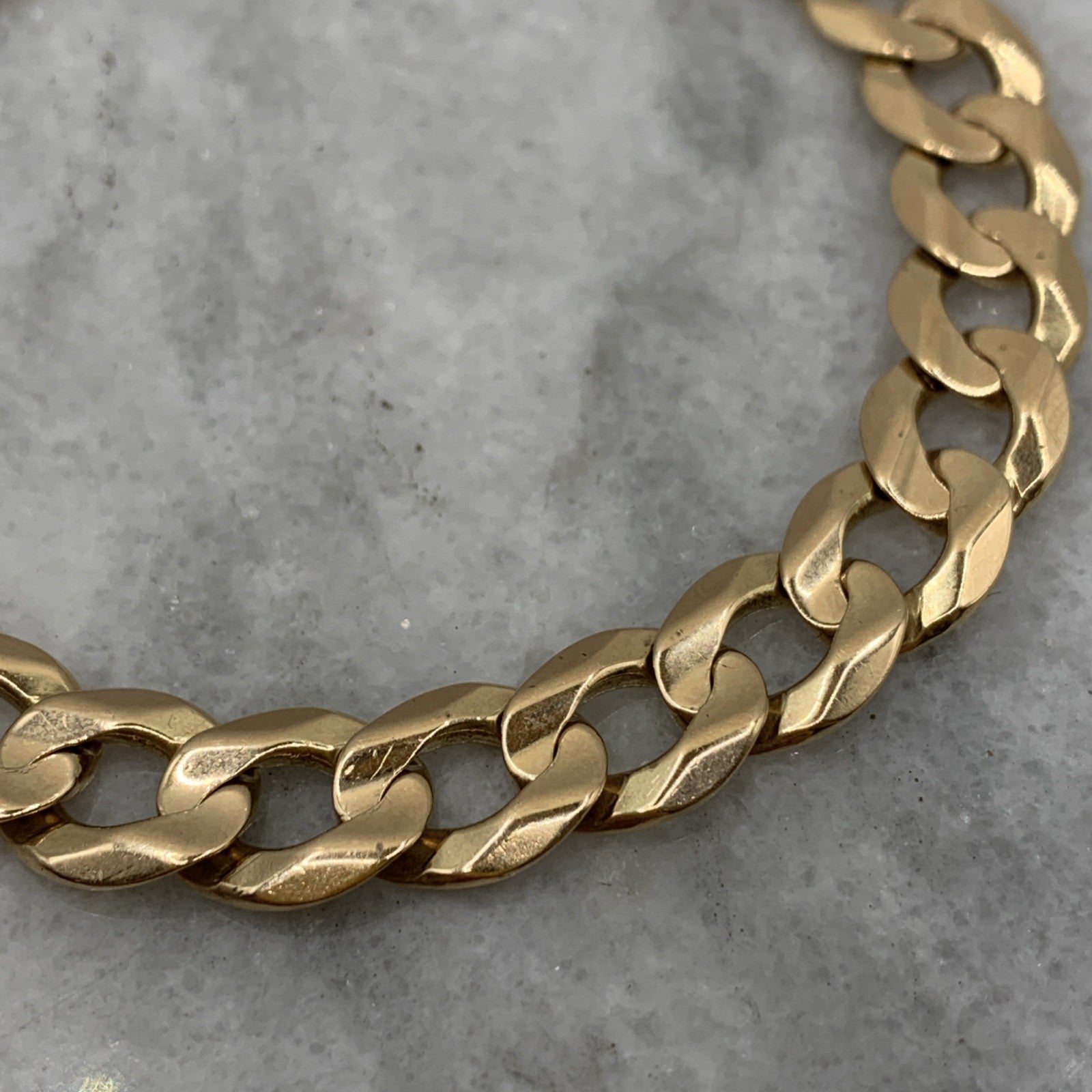 A stunning chunky gold curb link chain bracelet. Lobster clasp.