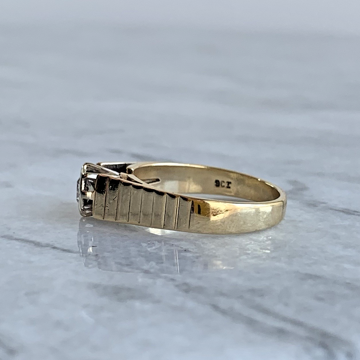 9 ct Gold Diamond Solitaire Antique Textured Ring 9ct 375 Yellow Gold - Size N