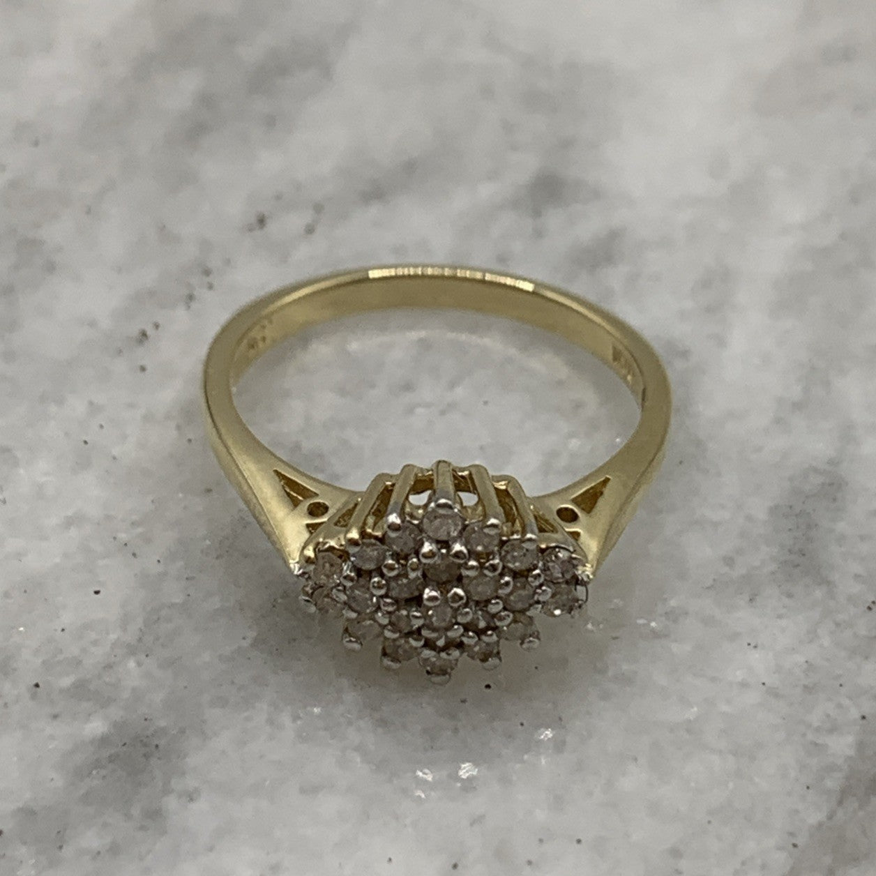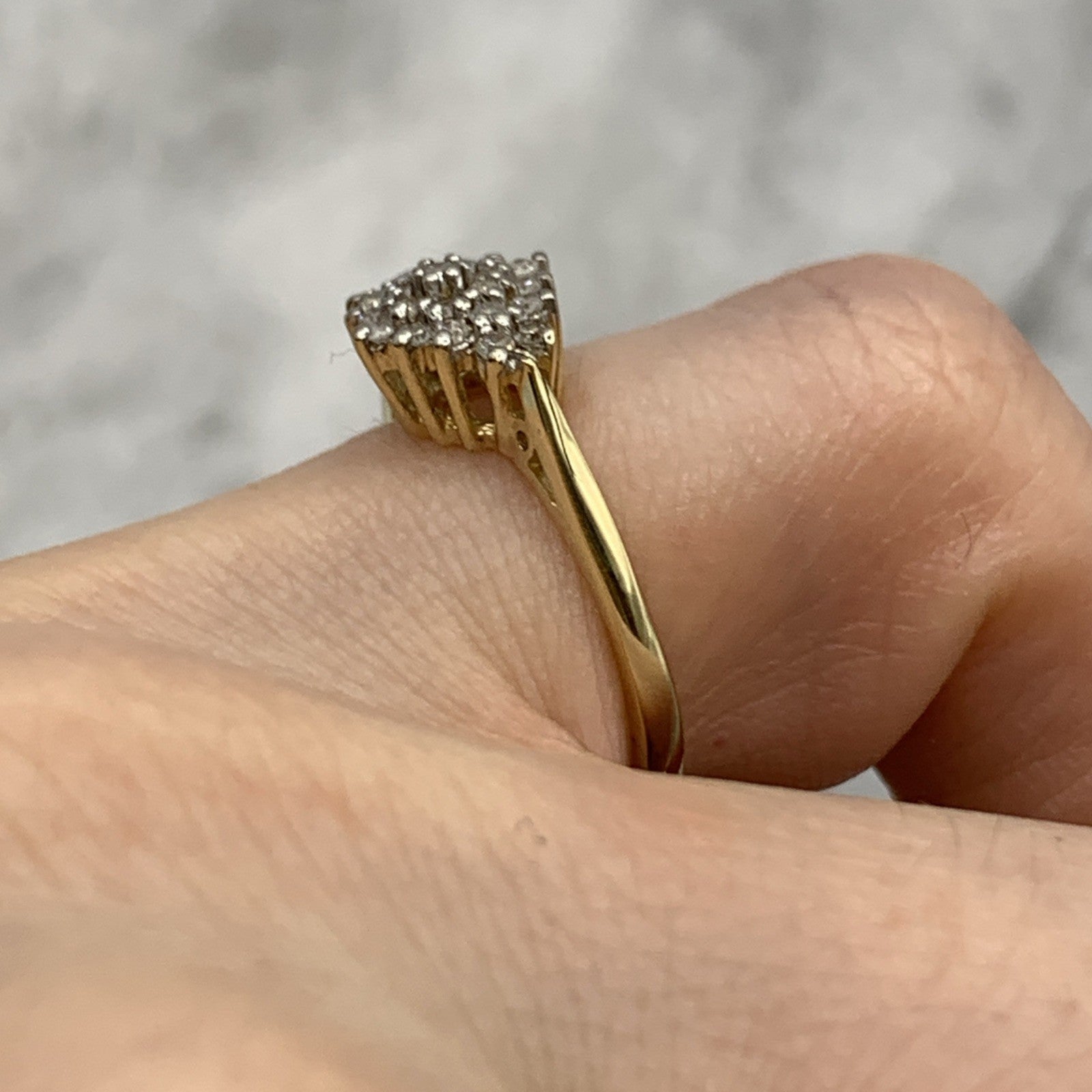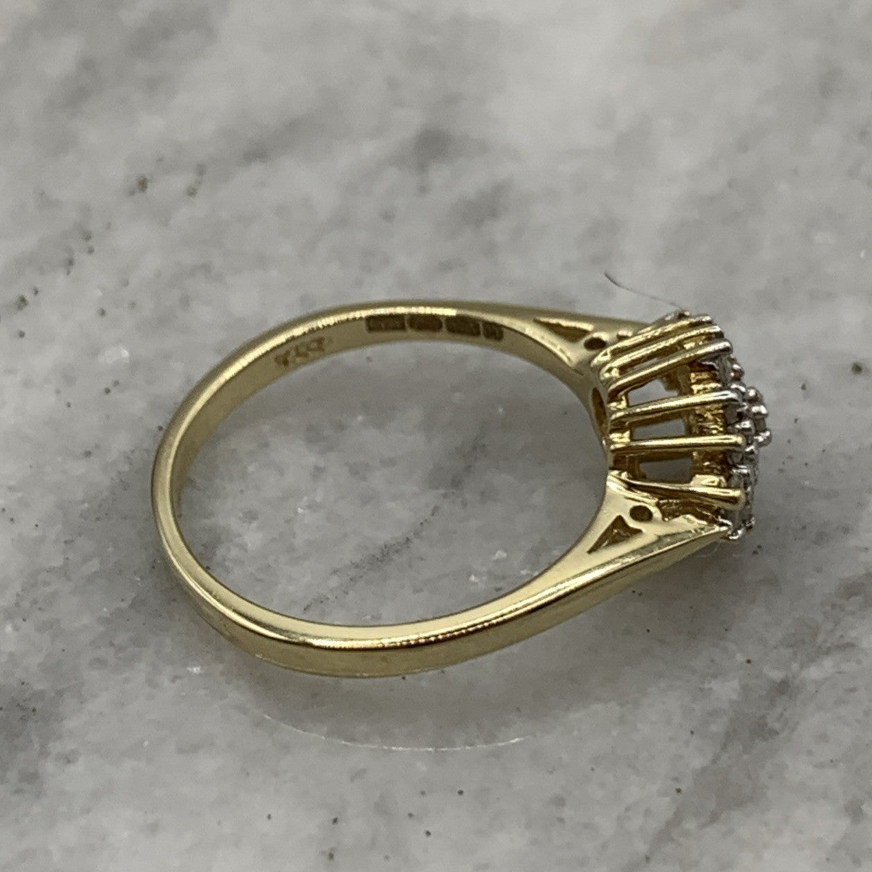 9 ct Gold Ring Diamond .25ct Cluster Ring 375 Yellow Gold - Size L