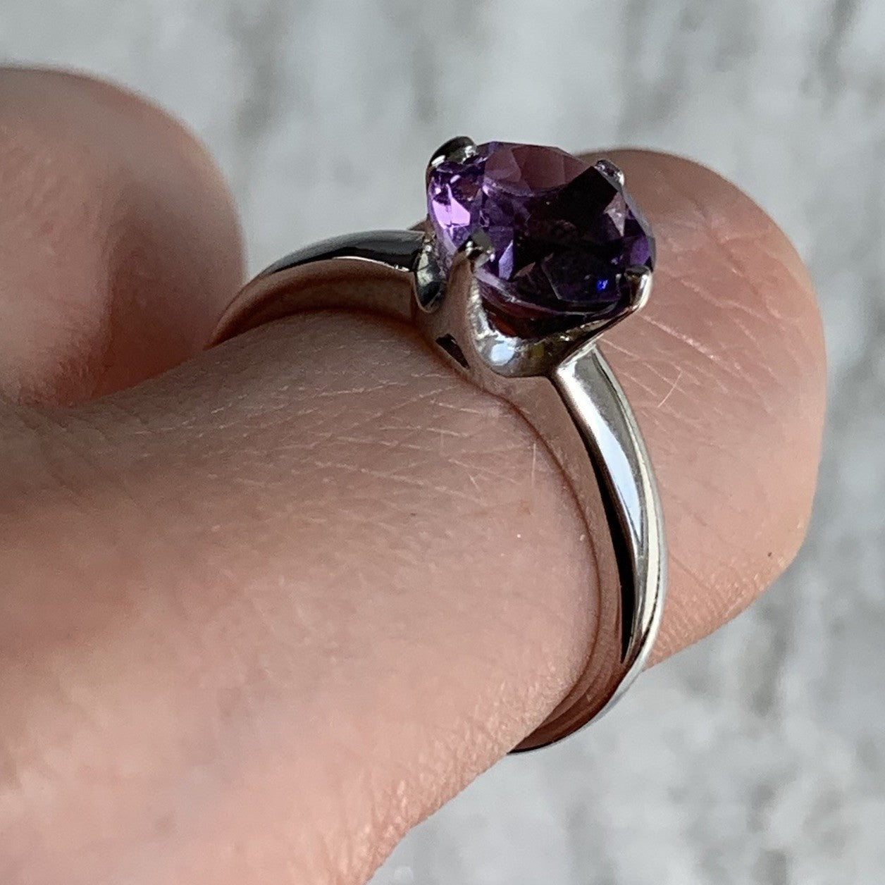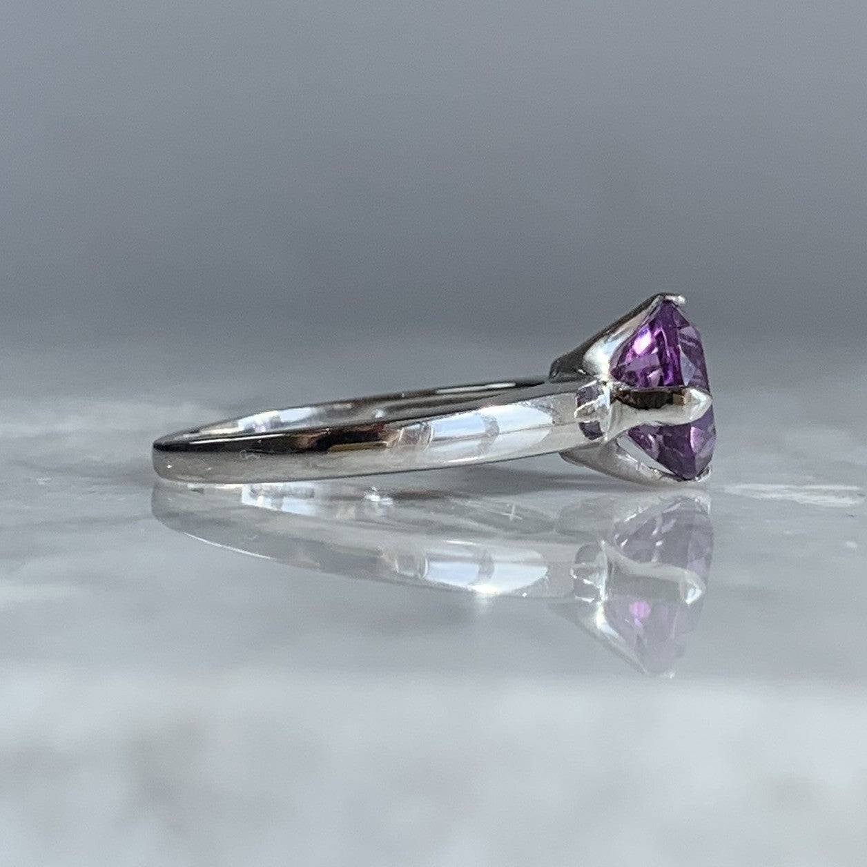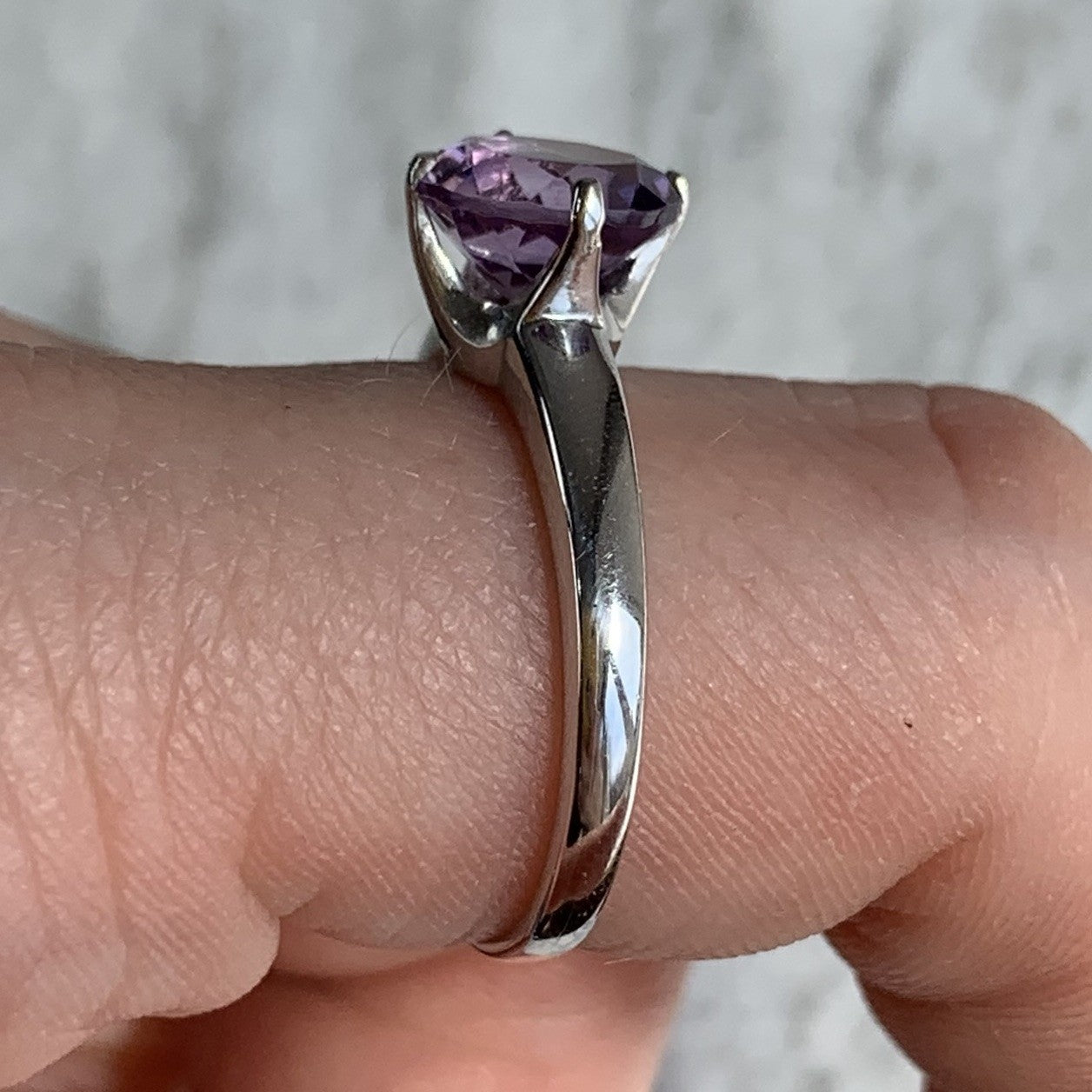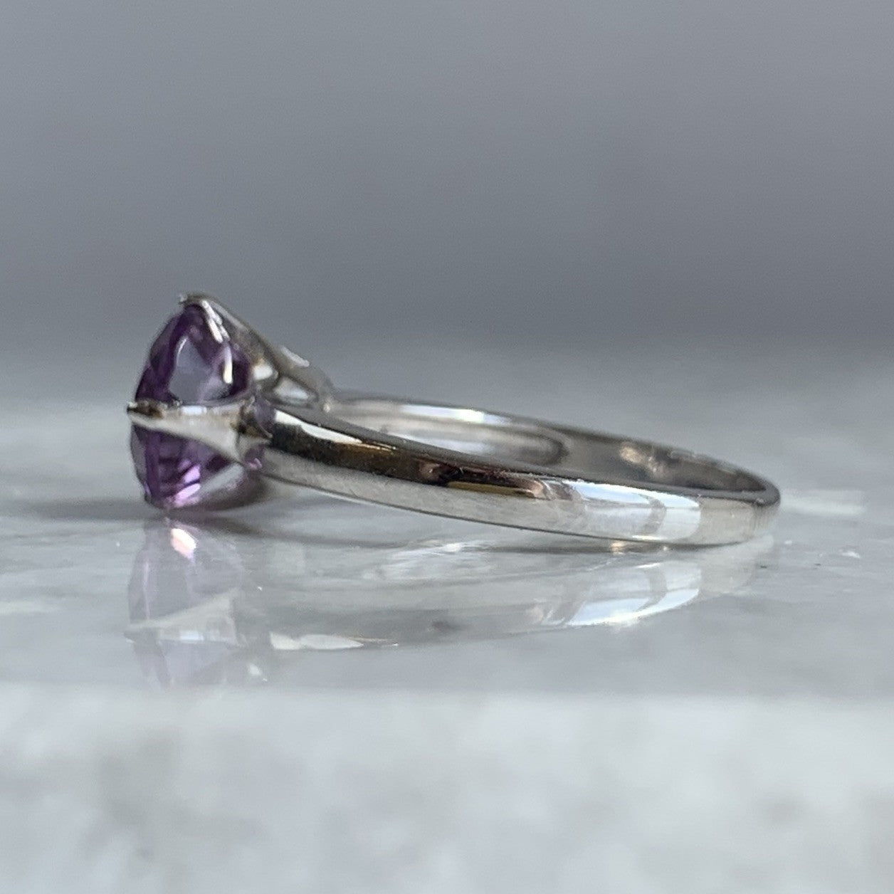 Amethyst Ornate Solitaire Ring 9ct 375 White Gold - Size Q
