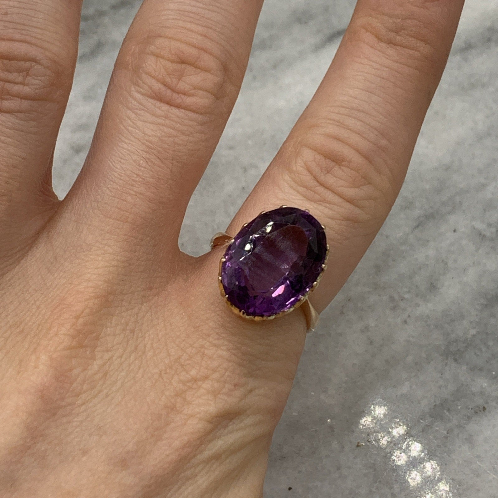 Amethyst Vintage Cocktail Ring 9ct 375 Rose Gold - Size P