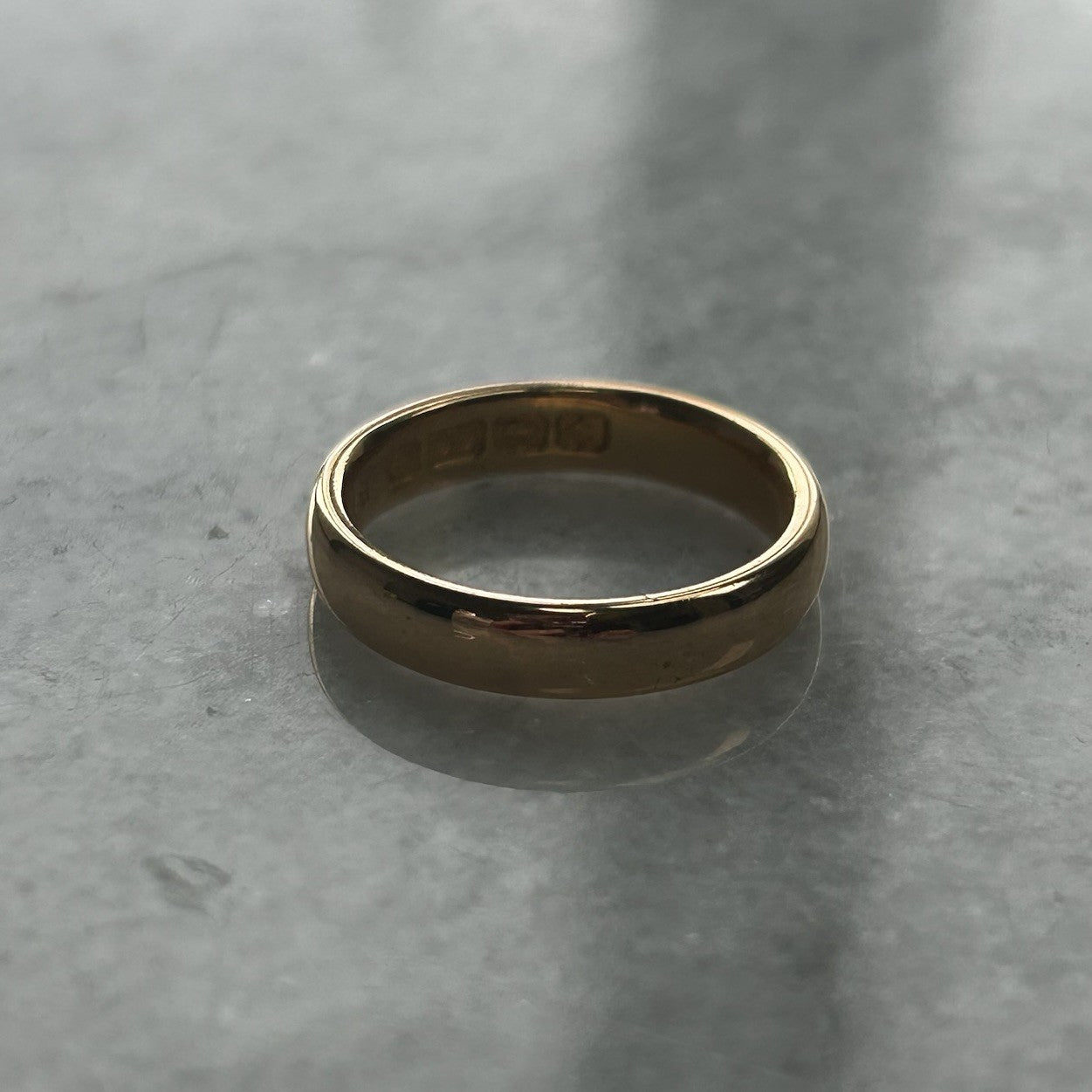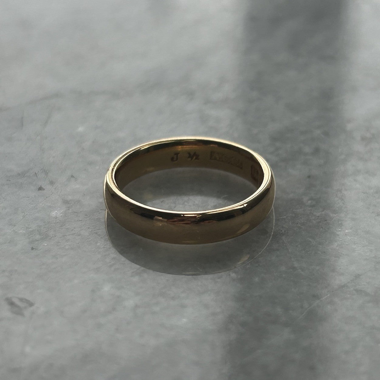 A classic antique gold wedding band ring made in 1918.
