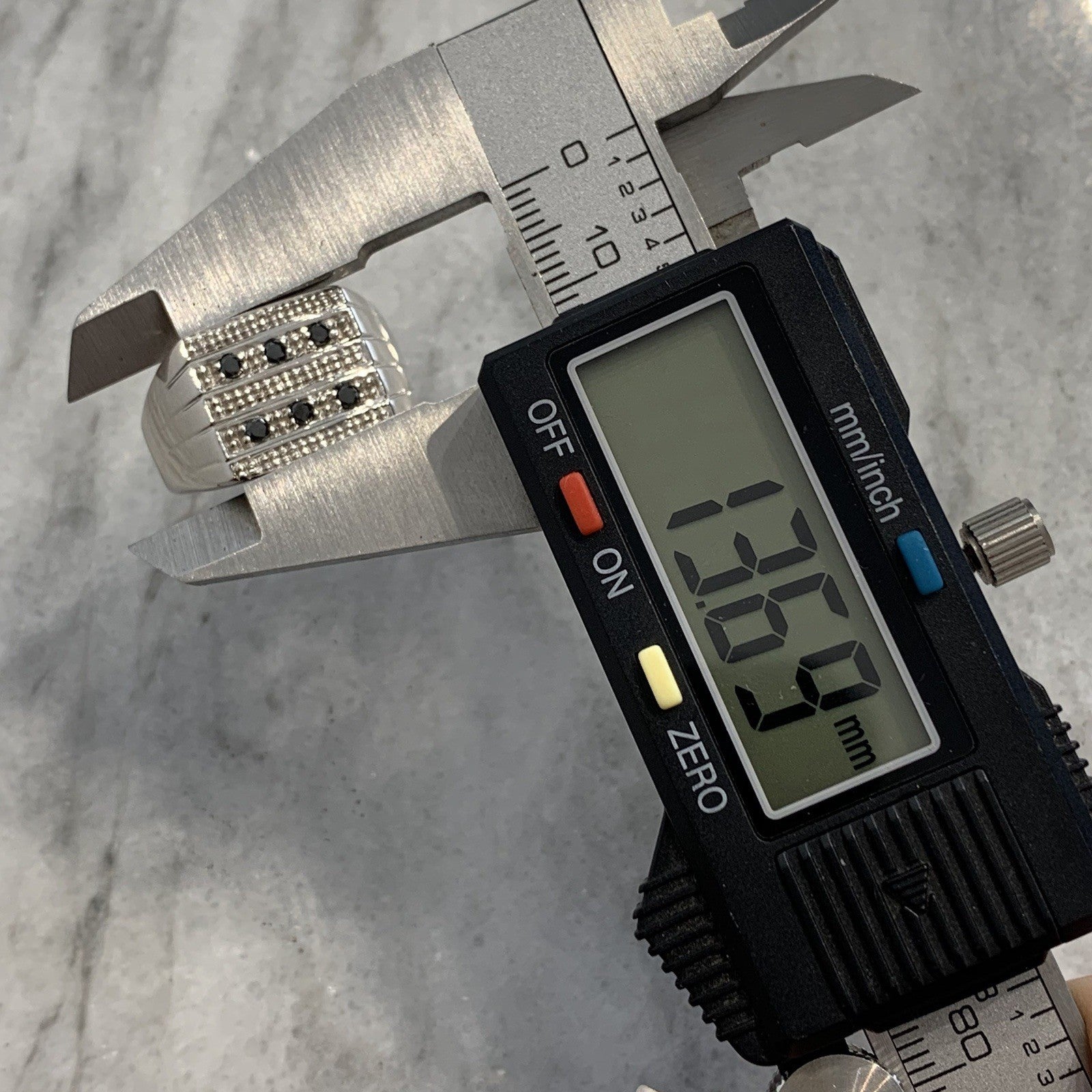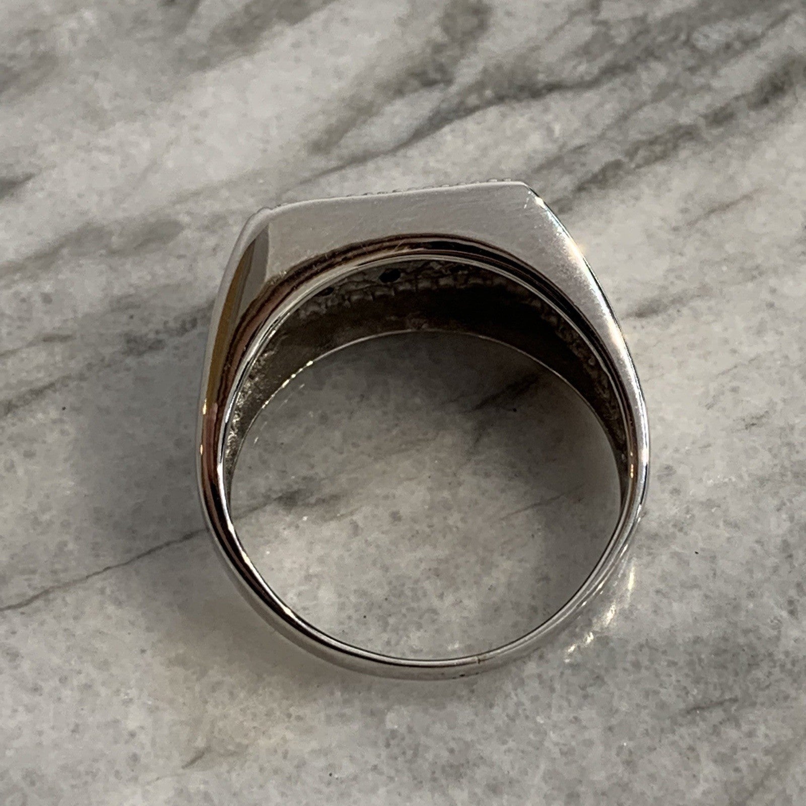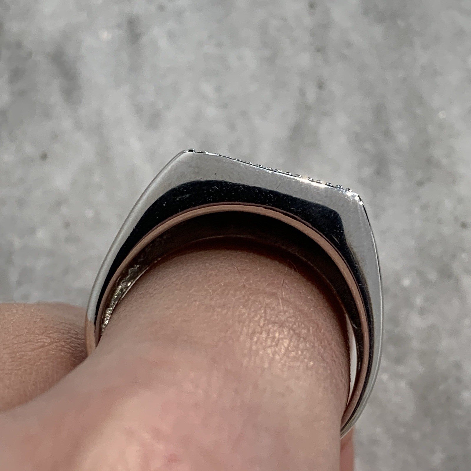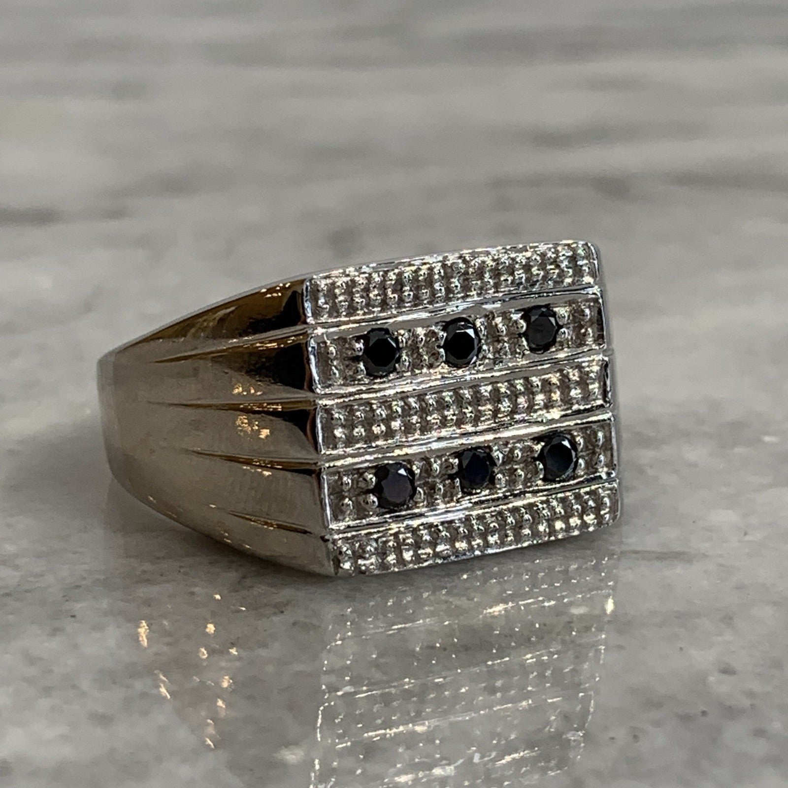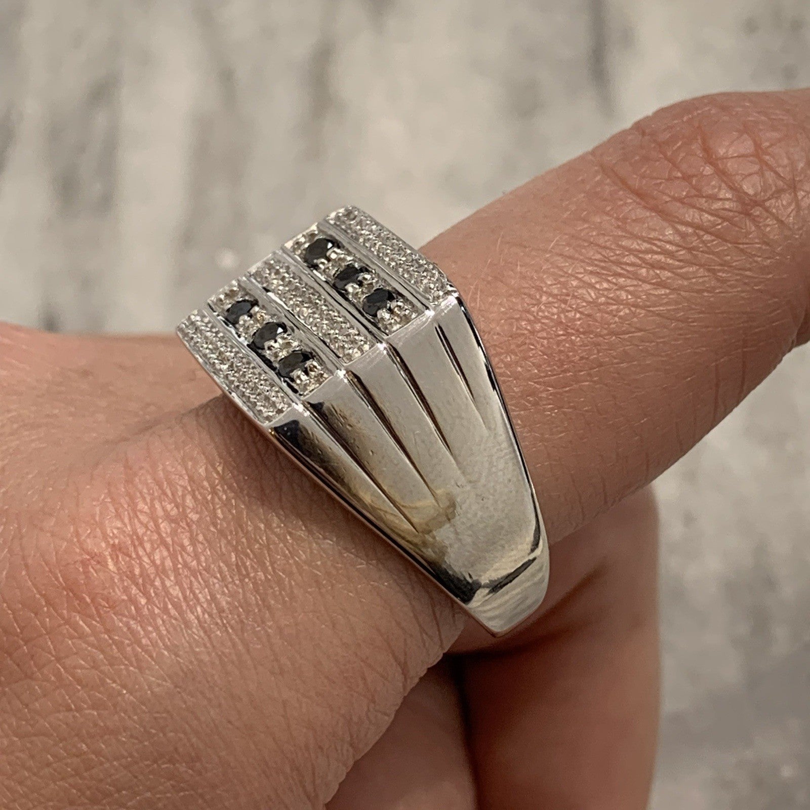 A stunning signet ring in white gold featuring black diamonds.