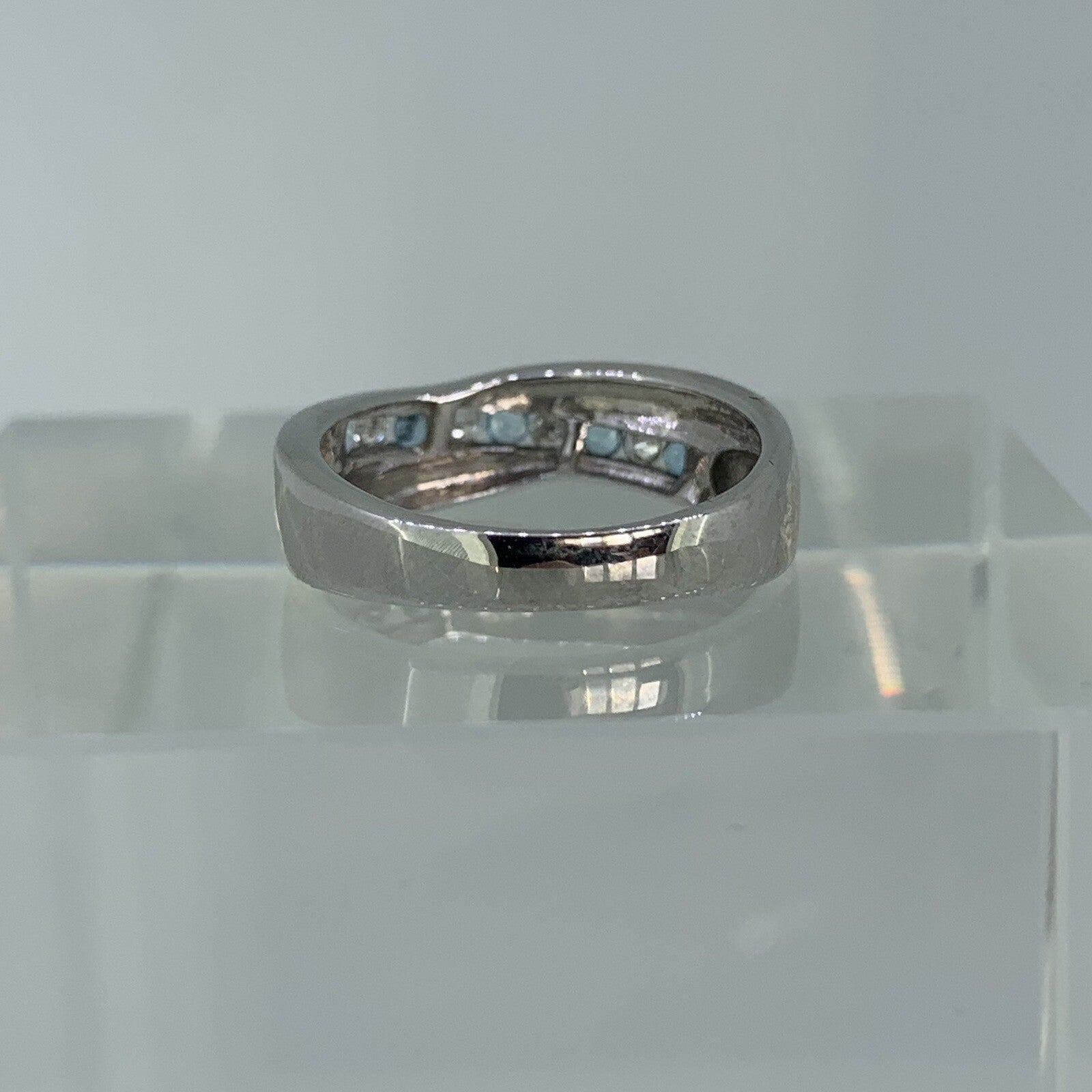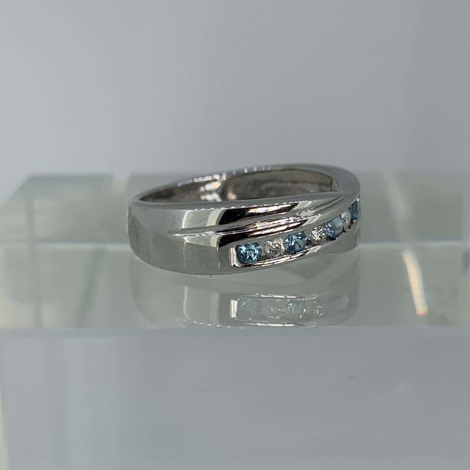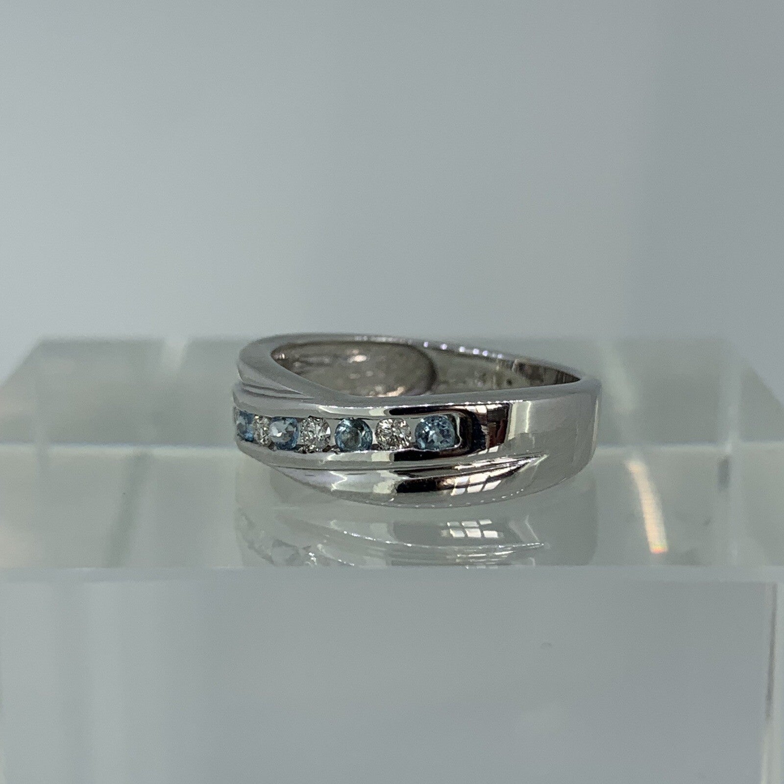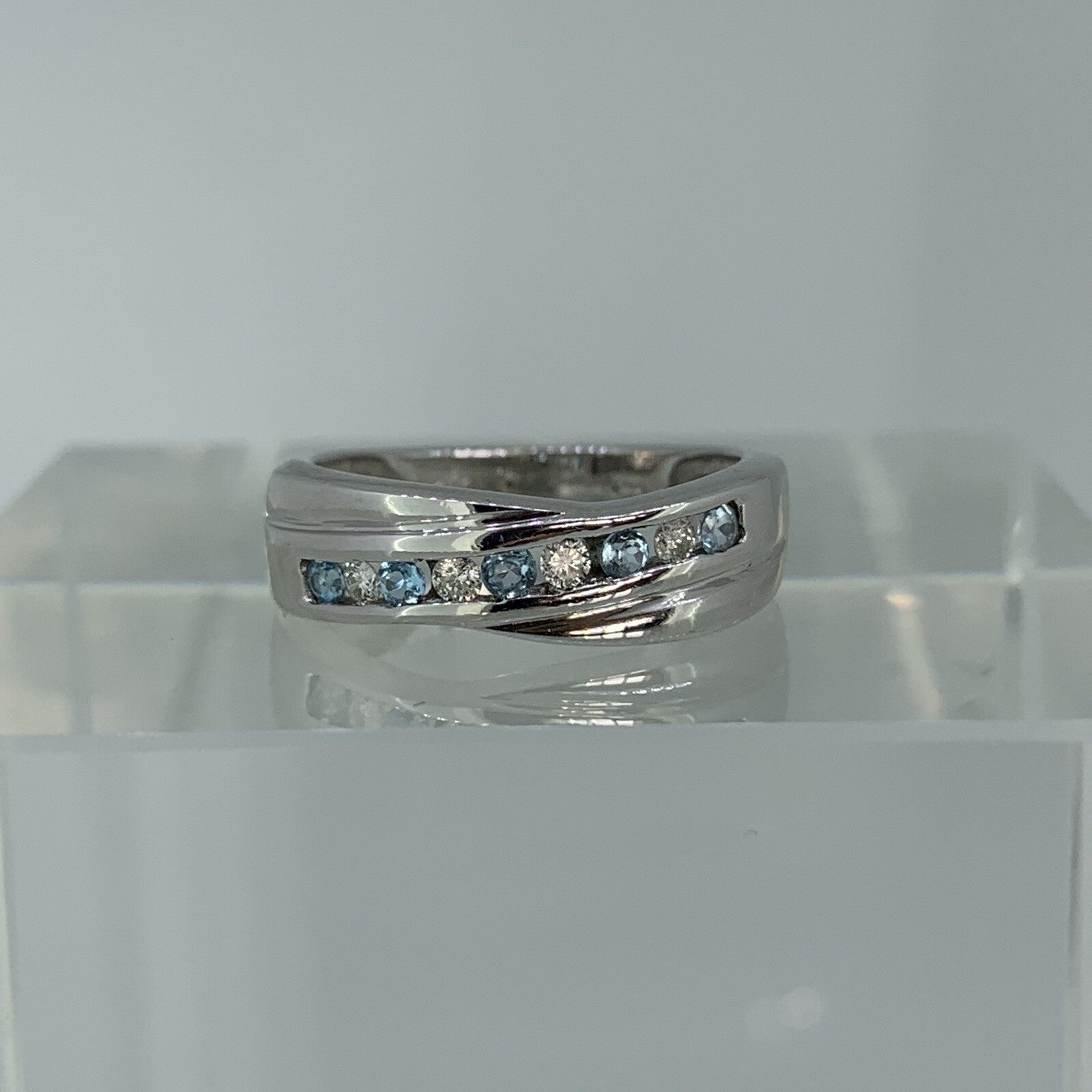 Blue Topaz & Diamond .12ct Crossover Band Ring 9ct 9K White Gold - Size M 1/2