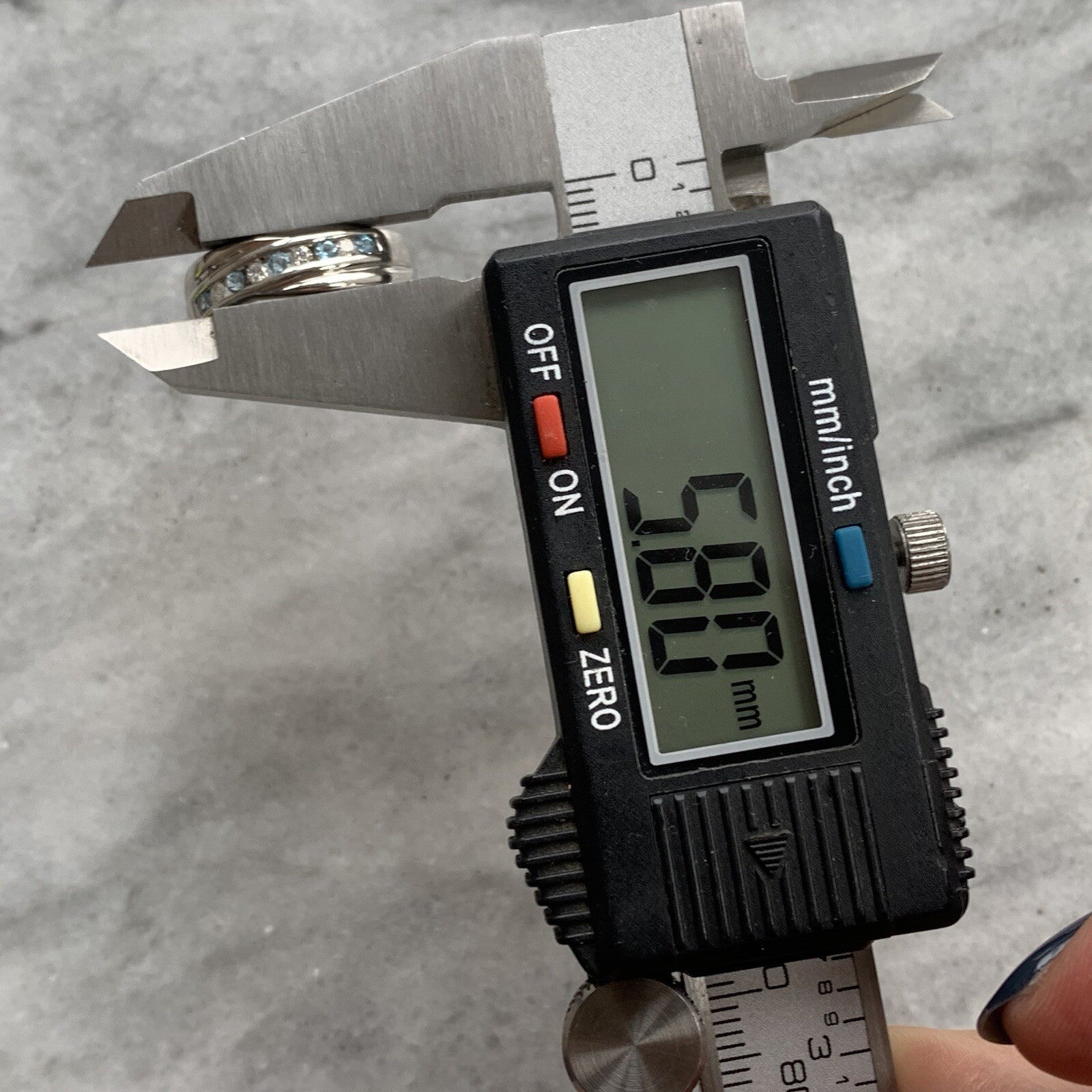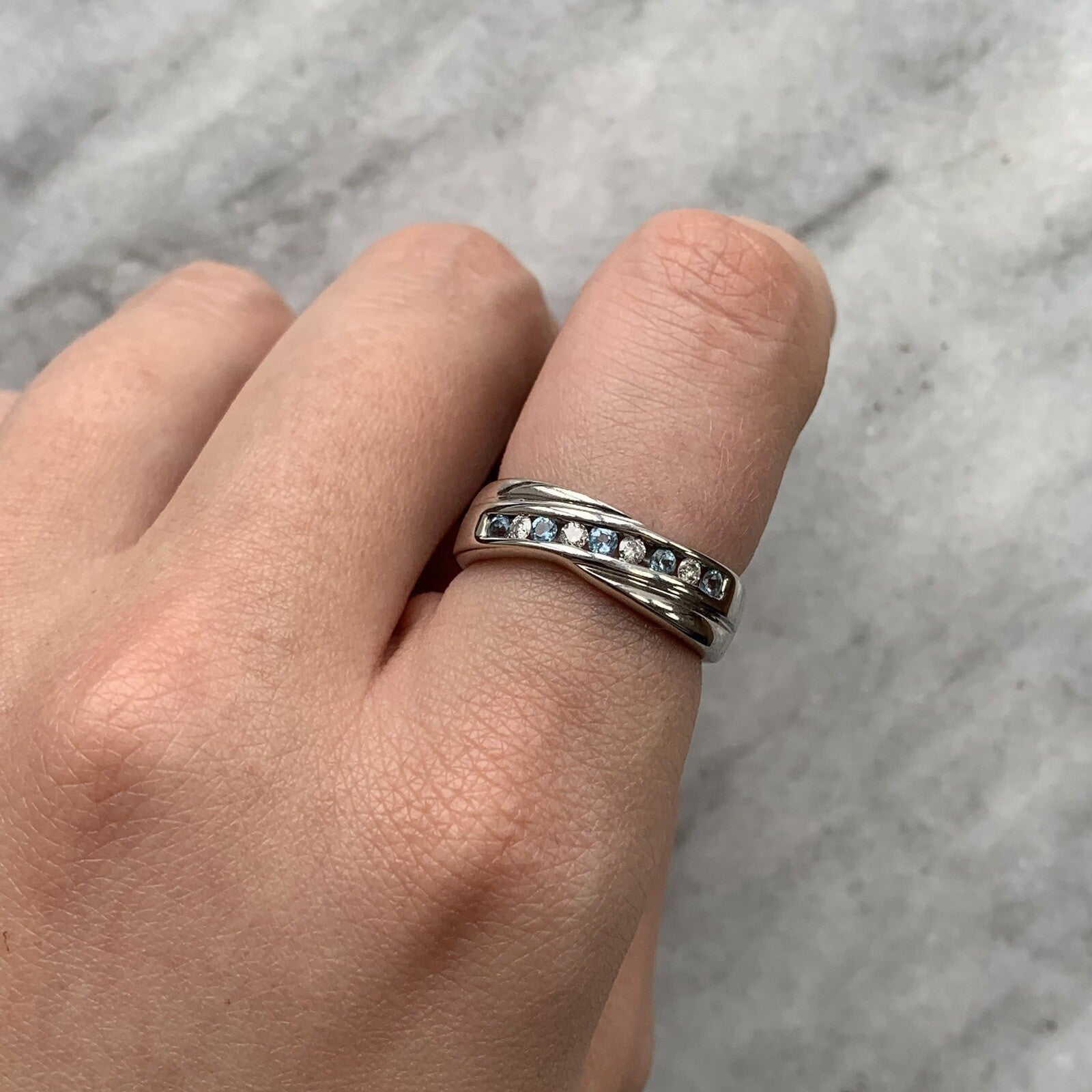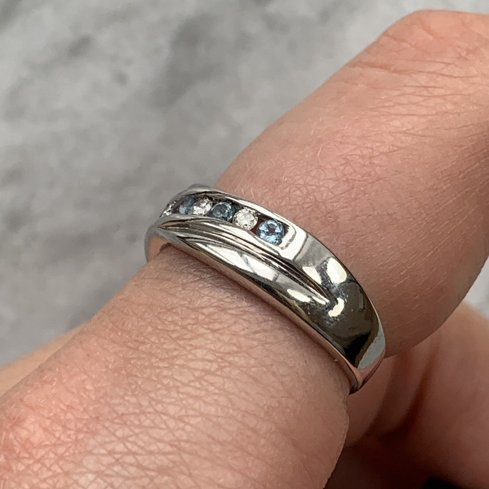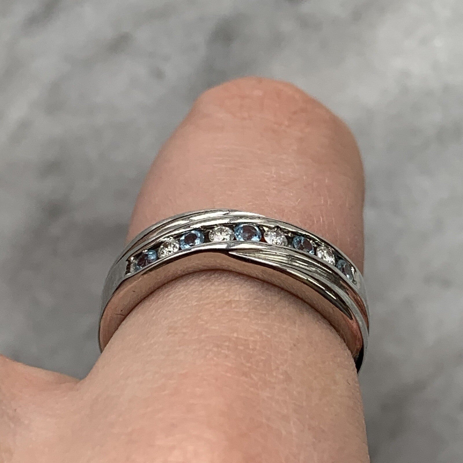 Blue Topaz & Diamond .12ct Crossover Band Ring 9ct 9K White Gold - Size M 1/2