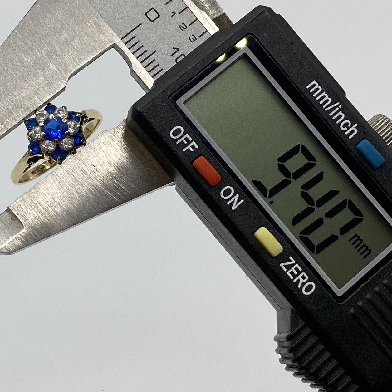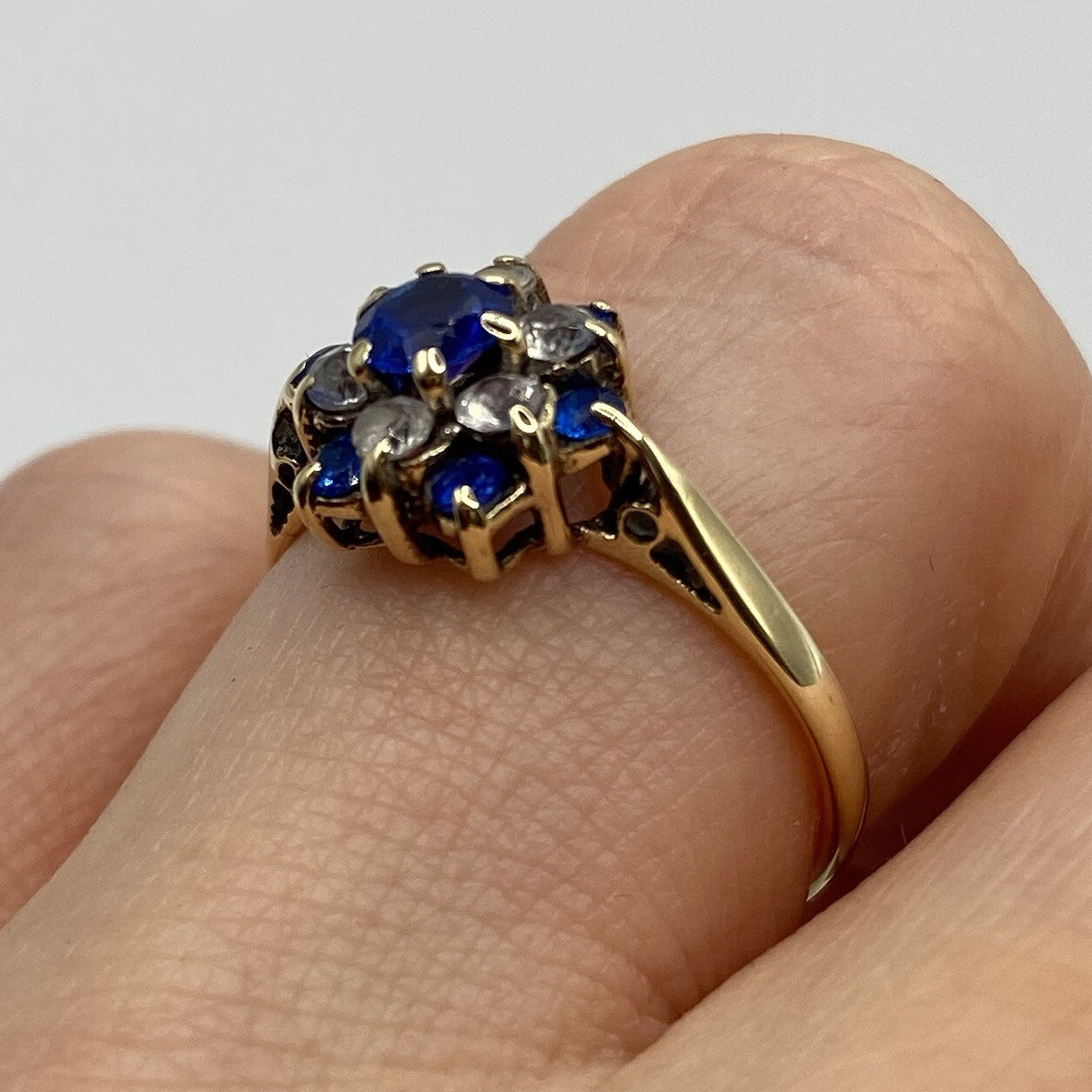 Blue & White CZ Daisy Flower Cluster Ring 9ct 9k Yellow Gold - Size M