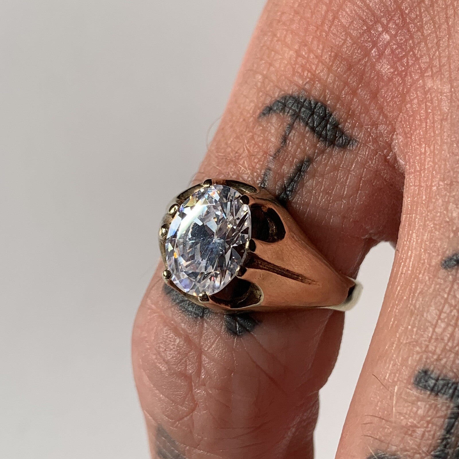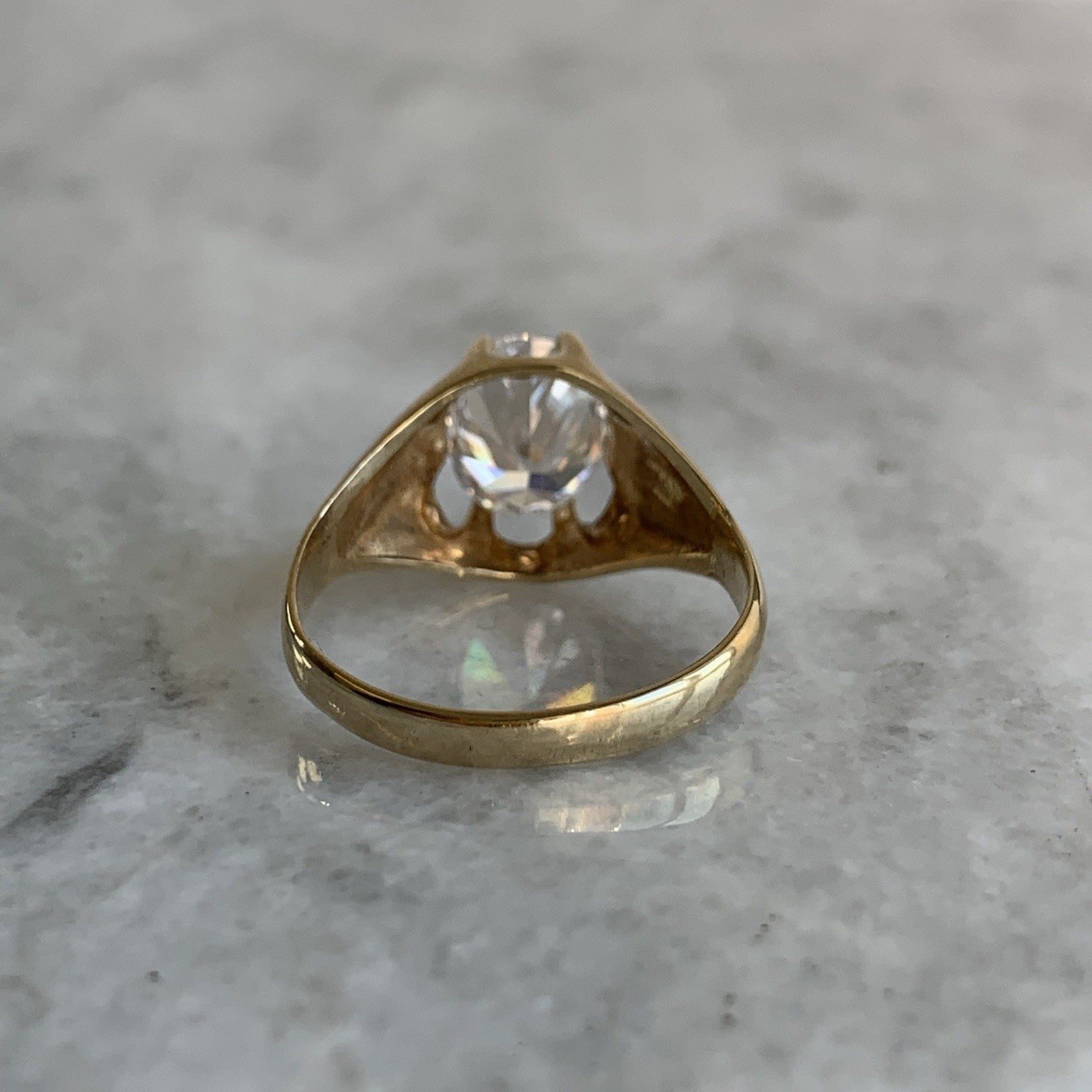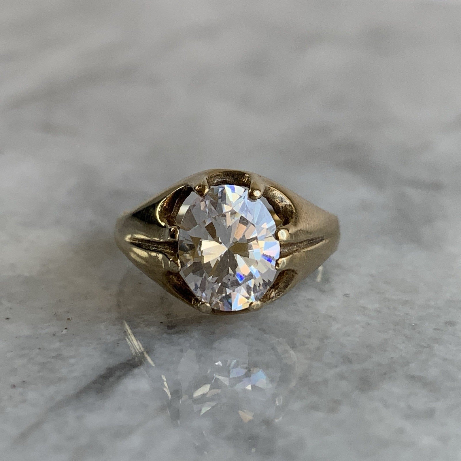 Chunky Stone Gypsy Signet Ring CZ 9ct 9k Yellow Gold - Size S