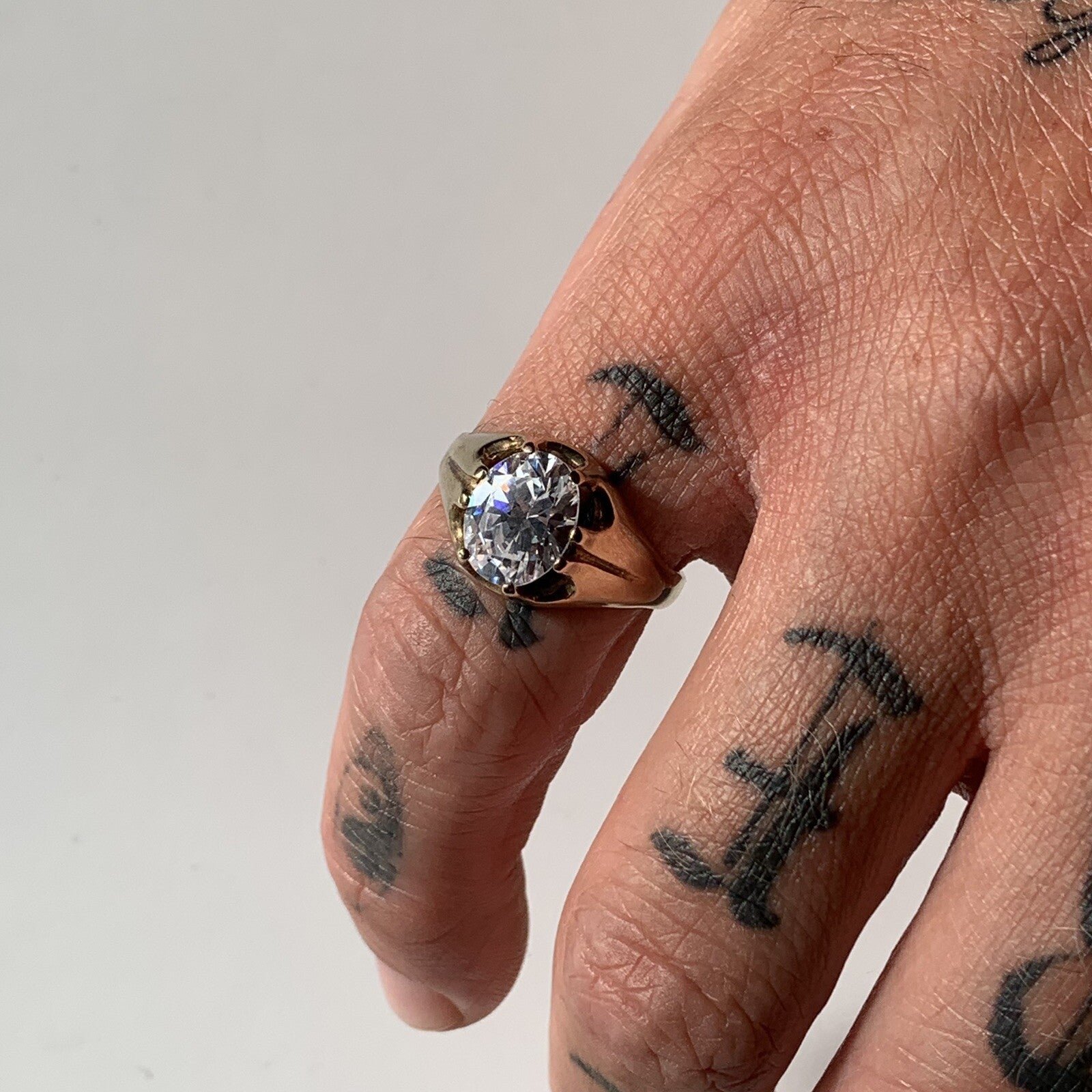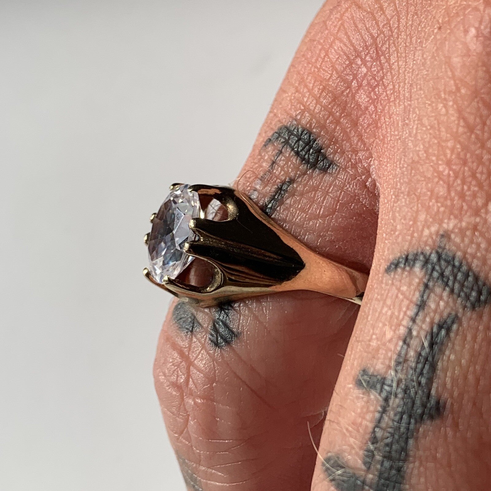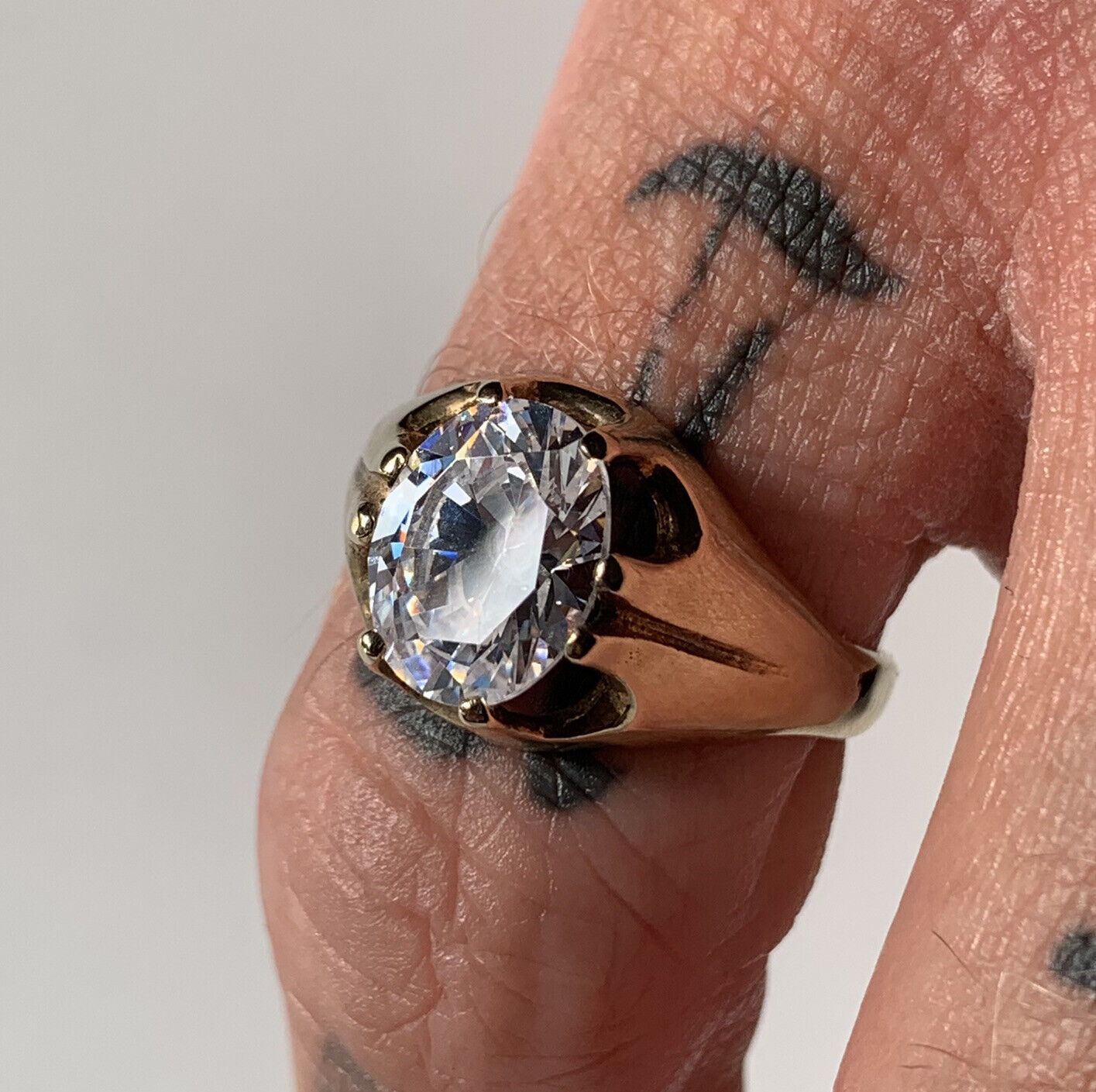 Chunky Stone Gypsy Signet Ring CZ 9ct 9k Yellow Gold - Size S