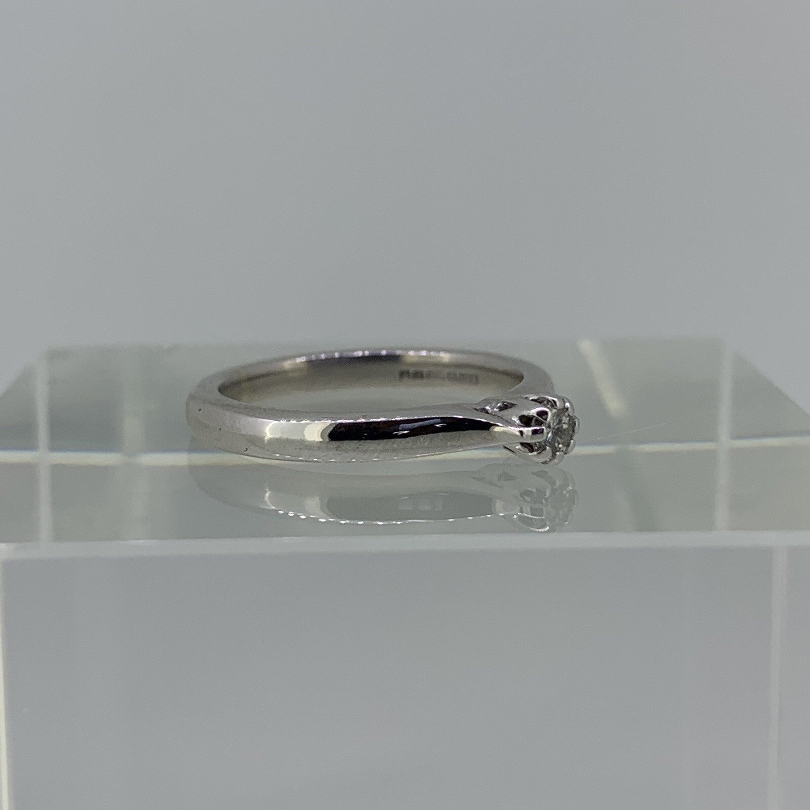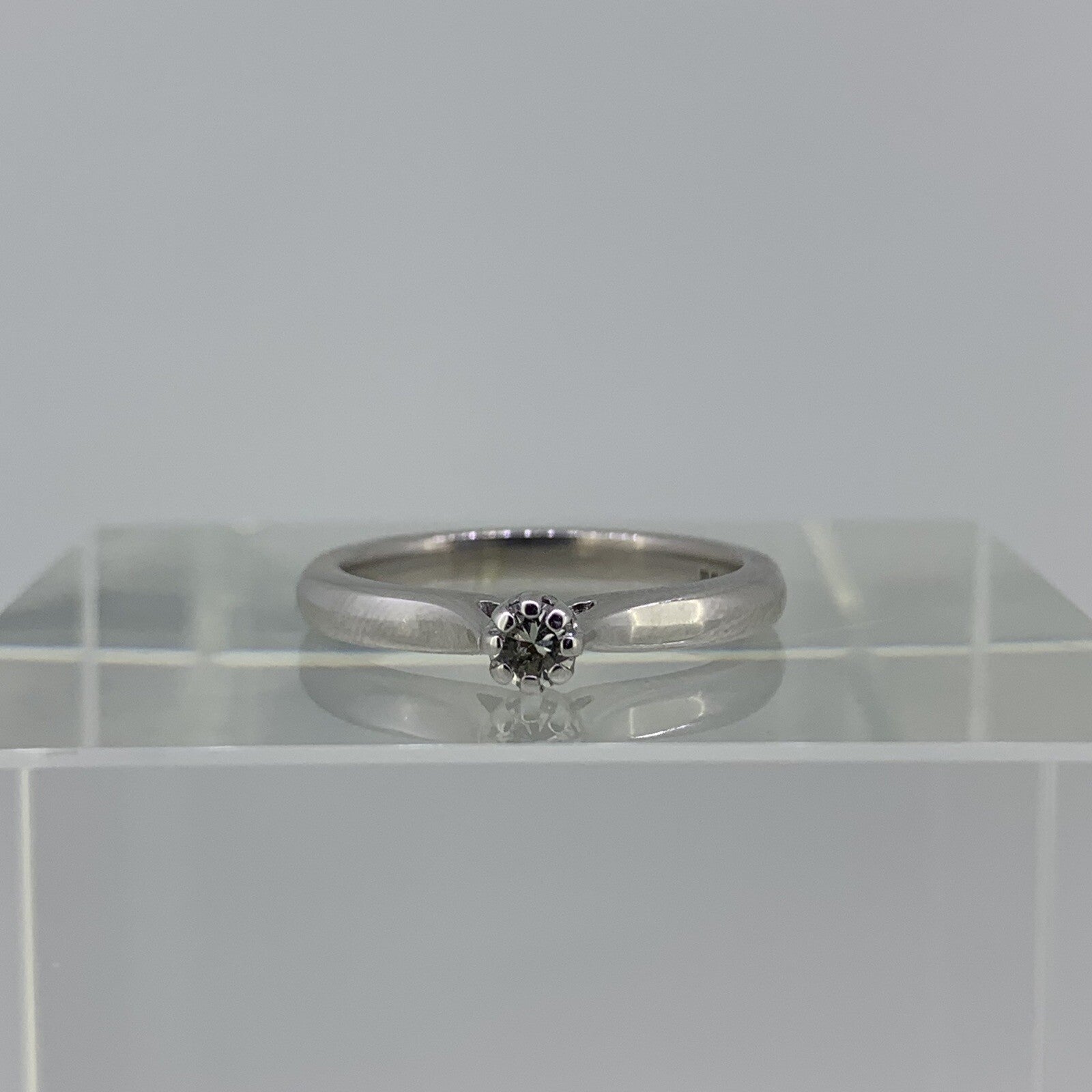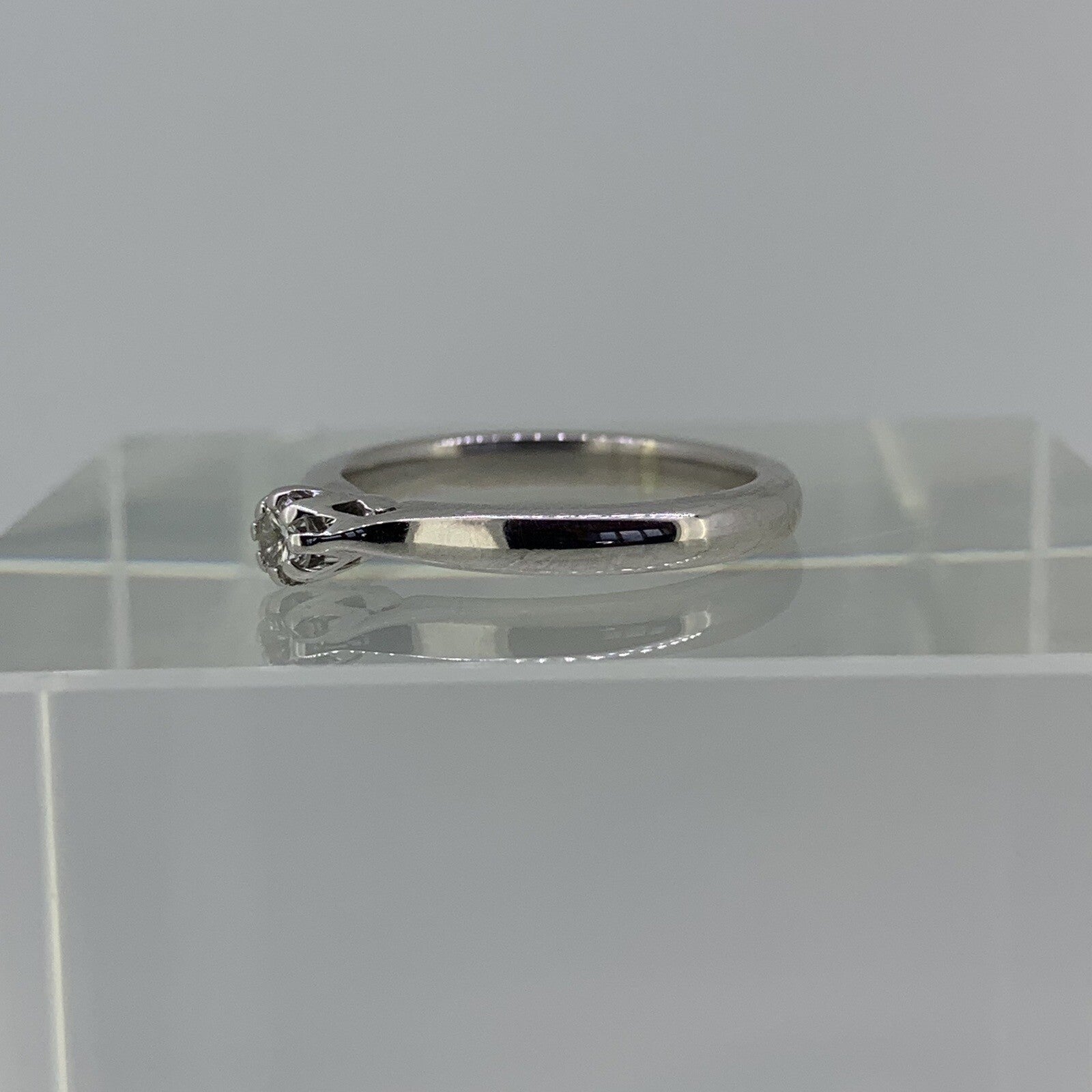 A beautiful solitaire engagement style ring with a natural round cut diamond at .15ct upon a thick, well made shank.