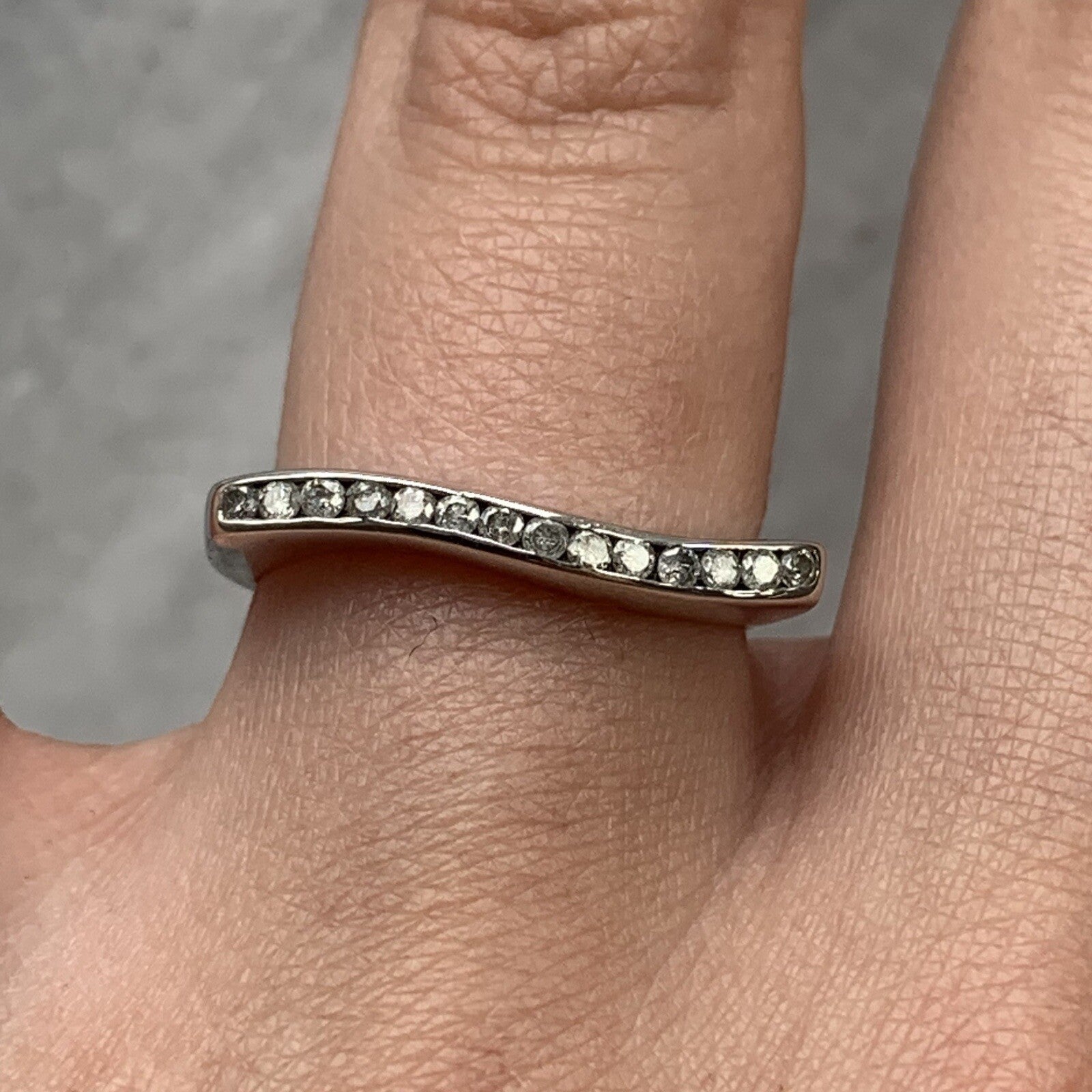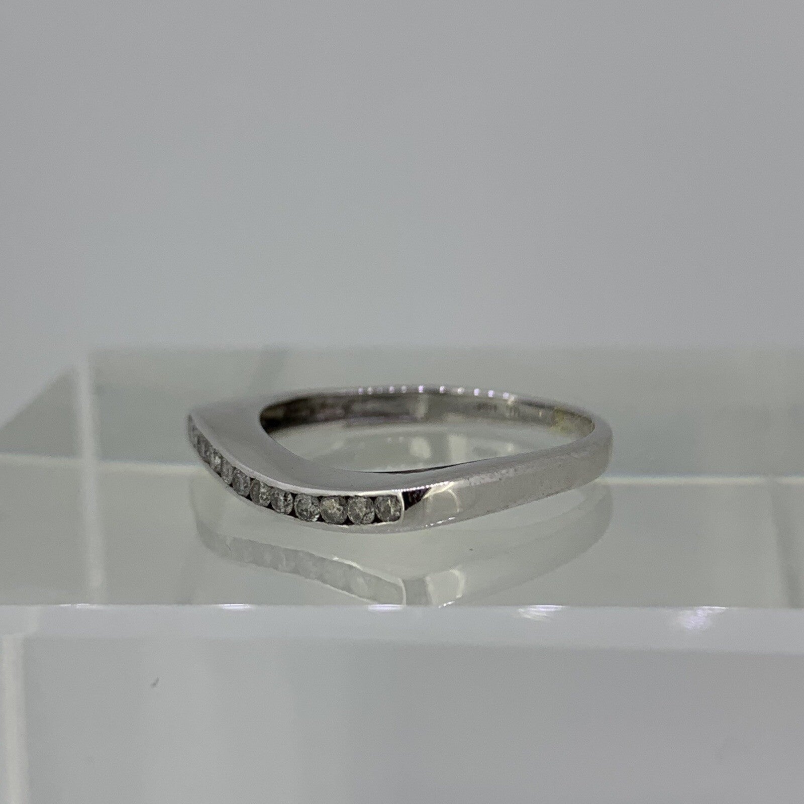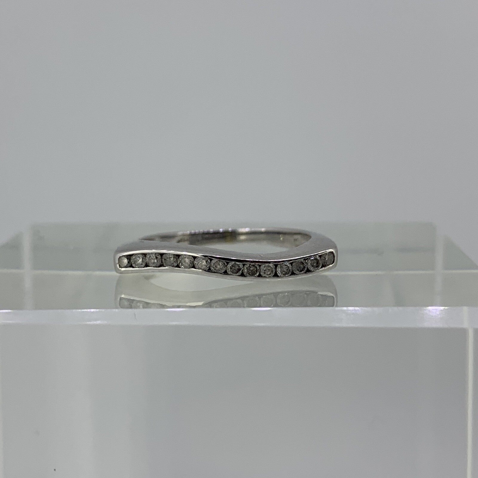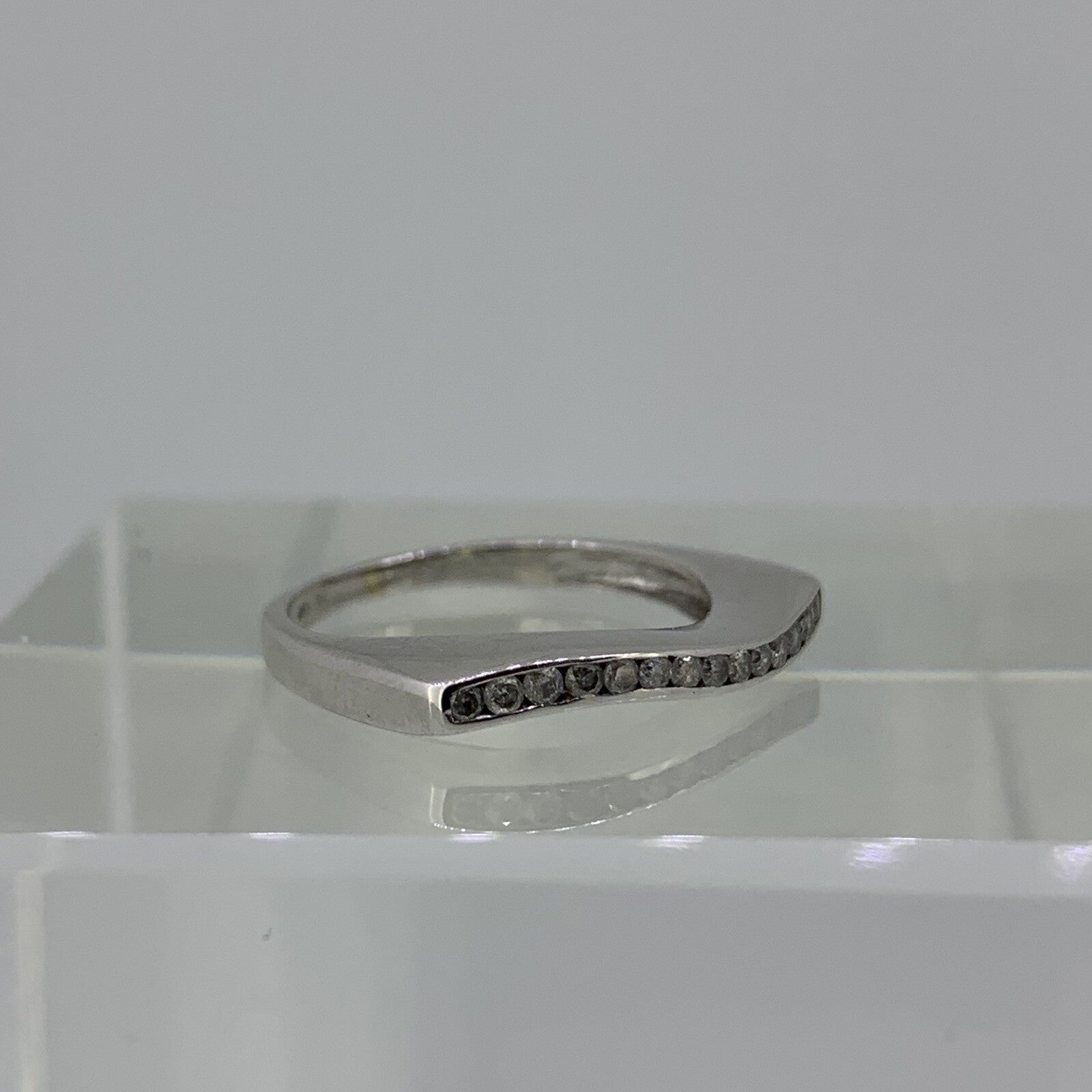 Diamond Channel Set Wave Unique Minimal Ring 9ct 9K White Gold - Size L