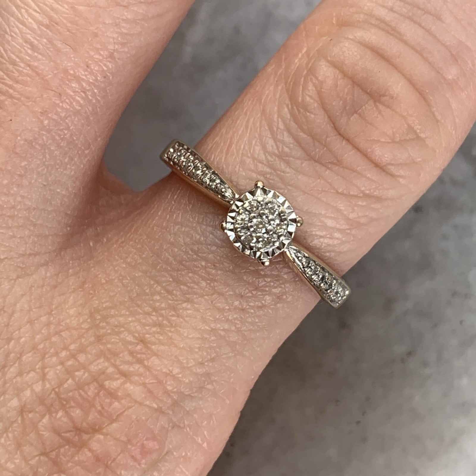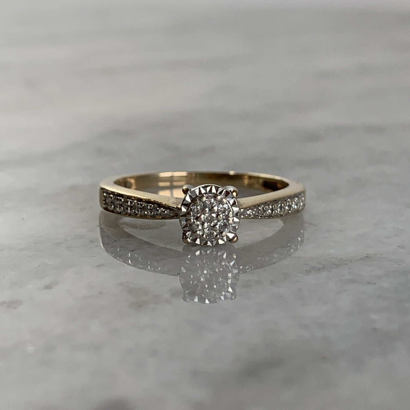 Diamond Cluster Shoulder Accent Ring 9ct 375 Yellow Gold - Size Q