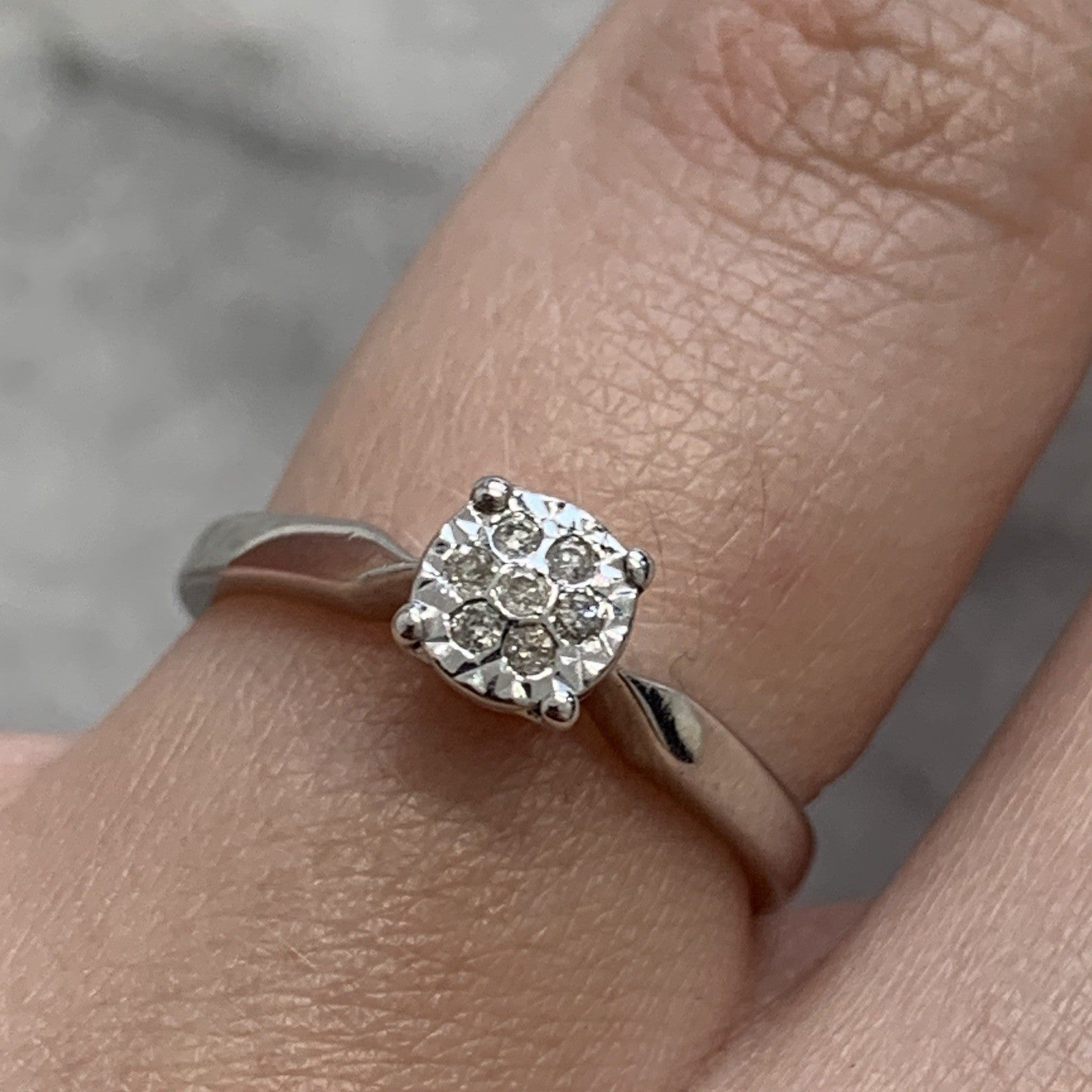 Diamond Illusion Set Cluster Engagement Ring 9ct 375 White Gold - Size I 1/2