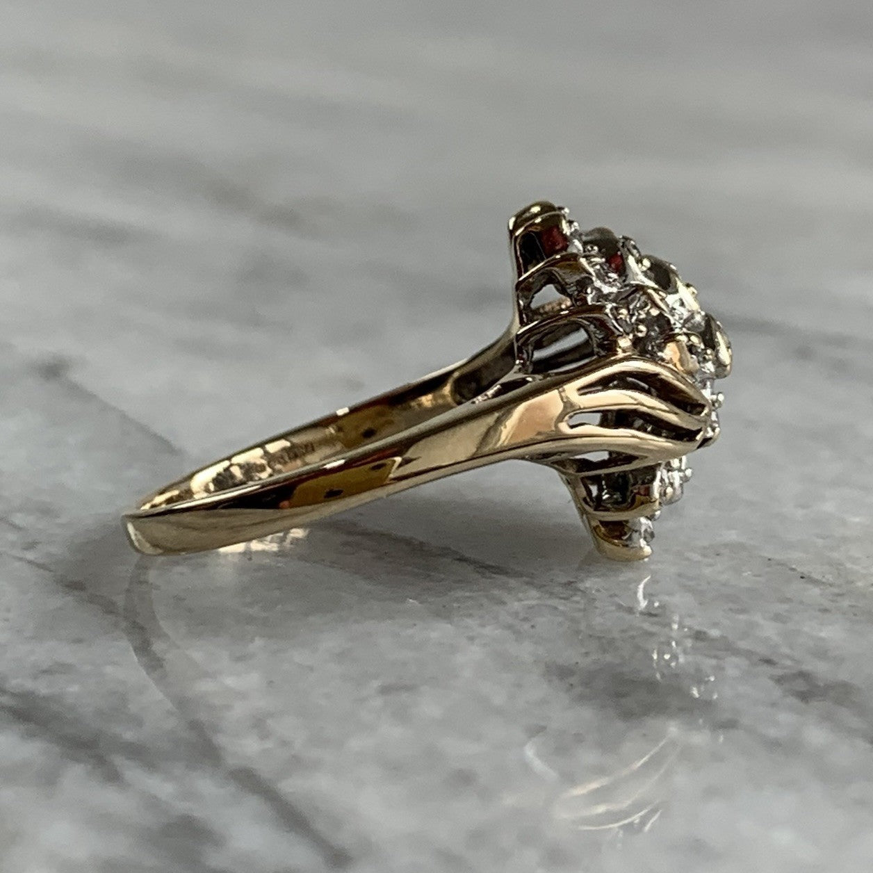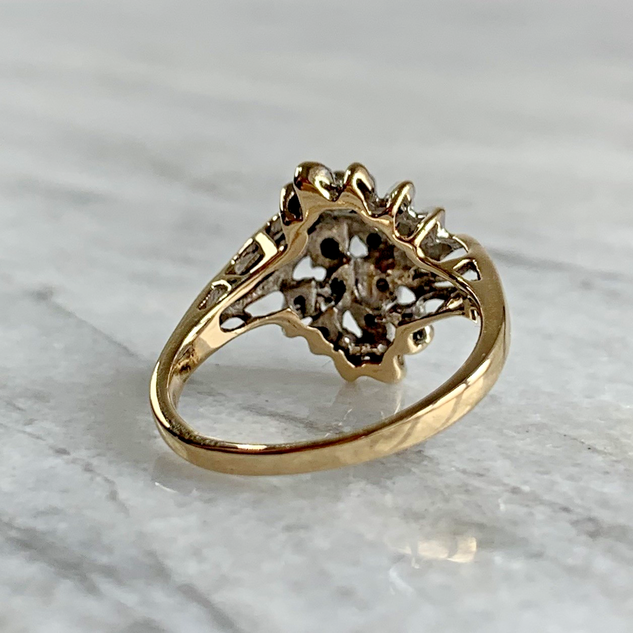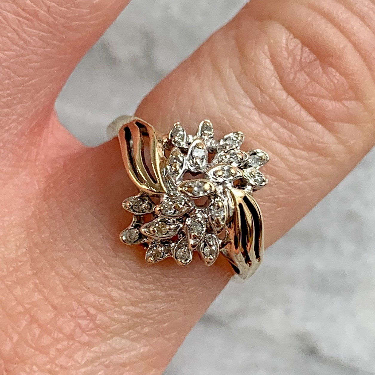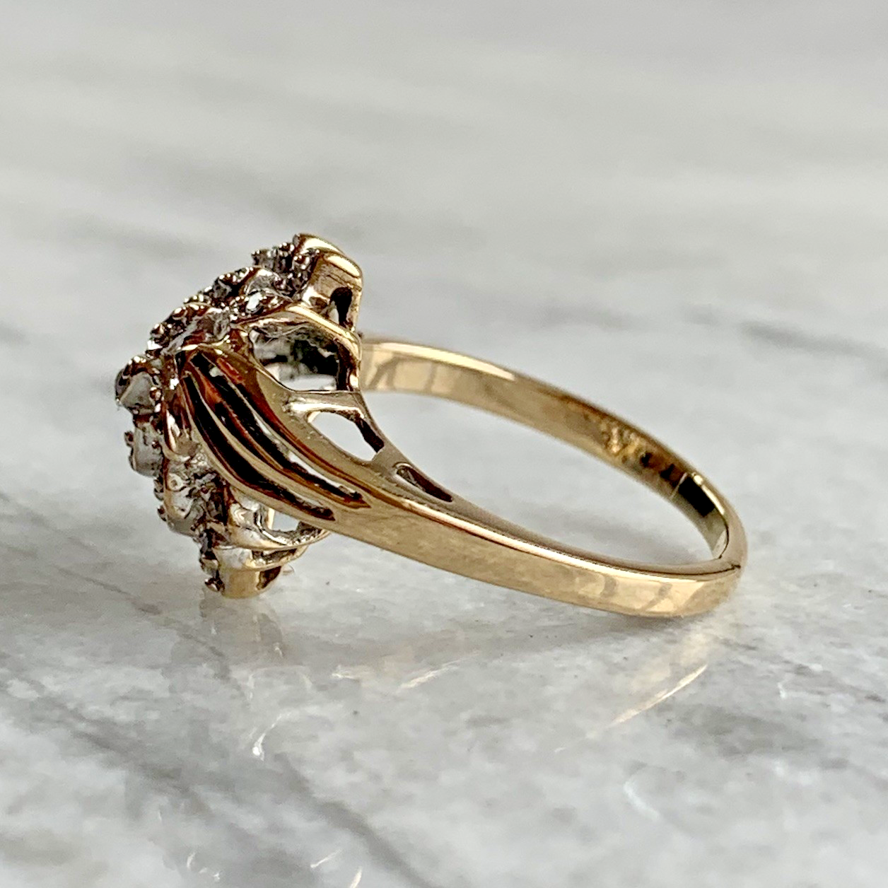 Diamond Ring 9ct Gold Foliate Cluster Bypass in 375 Yellow Gold - Size N