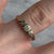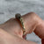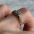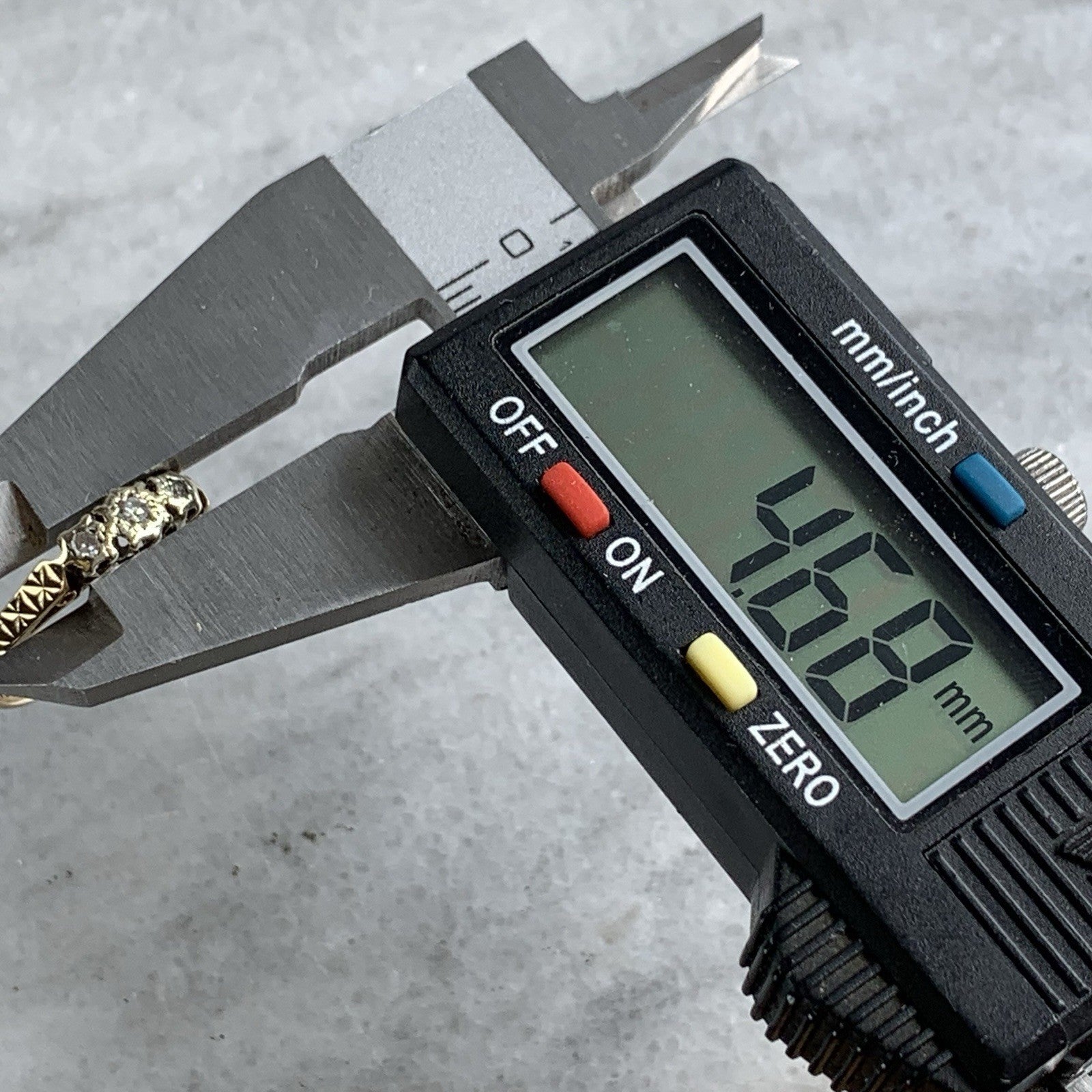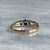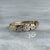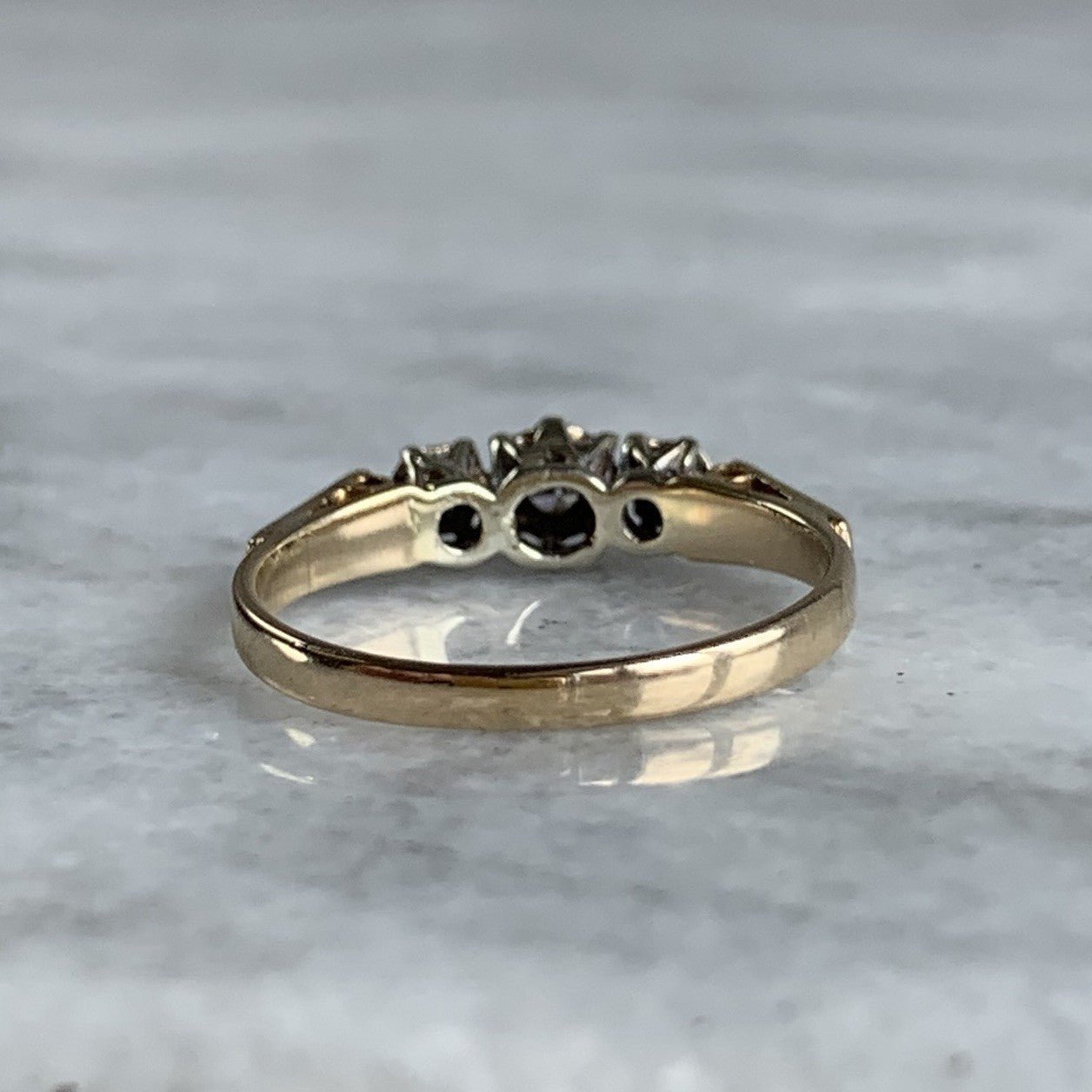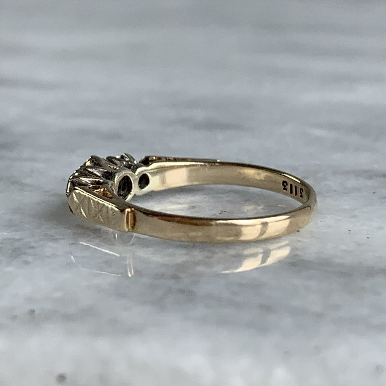 A lovely gold ring showcasing a trilogy of illusion set diamonds upon antique style shoulders with a textured patterned finish.