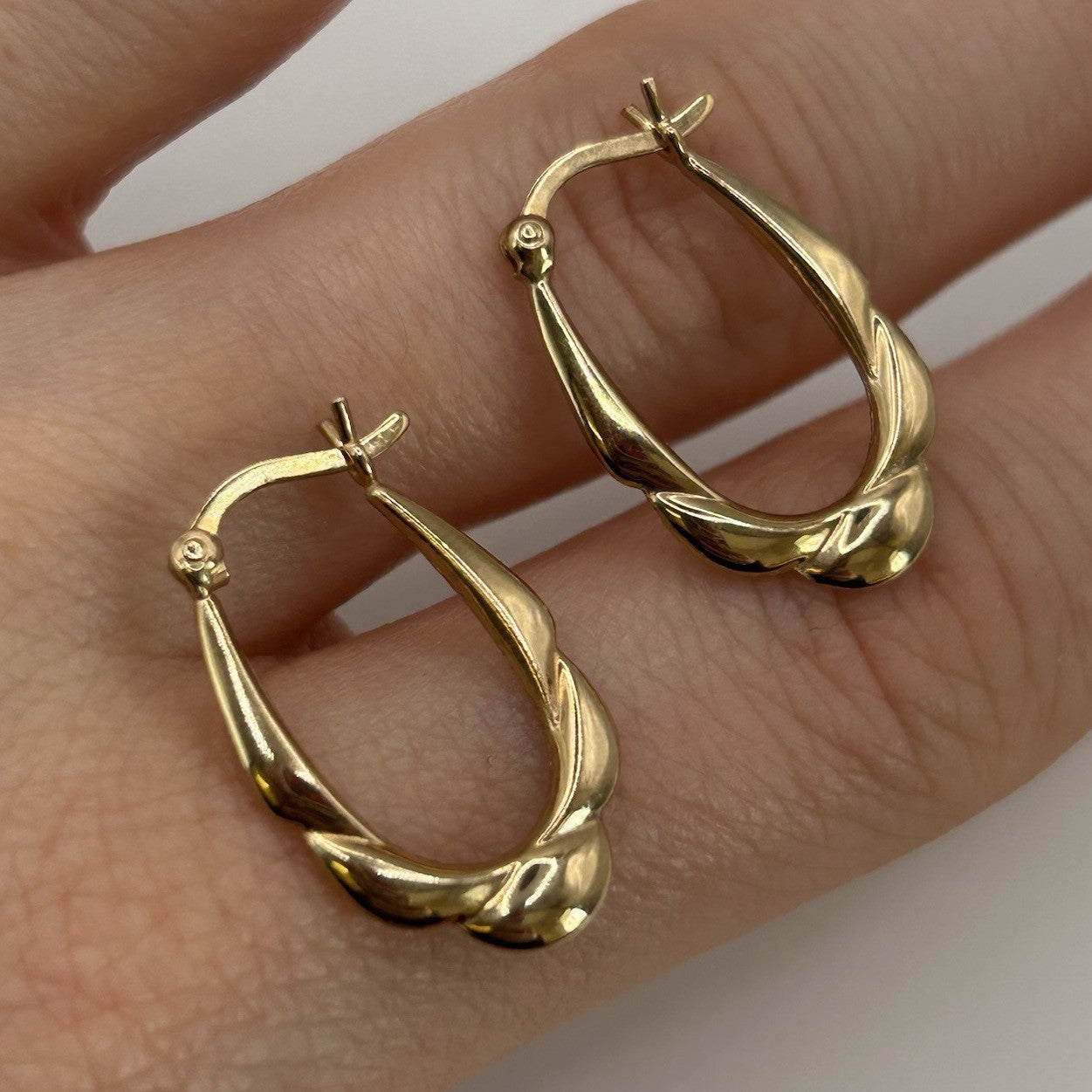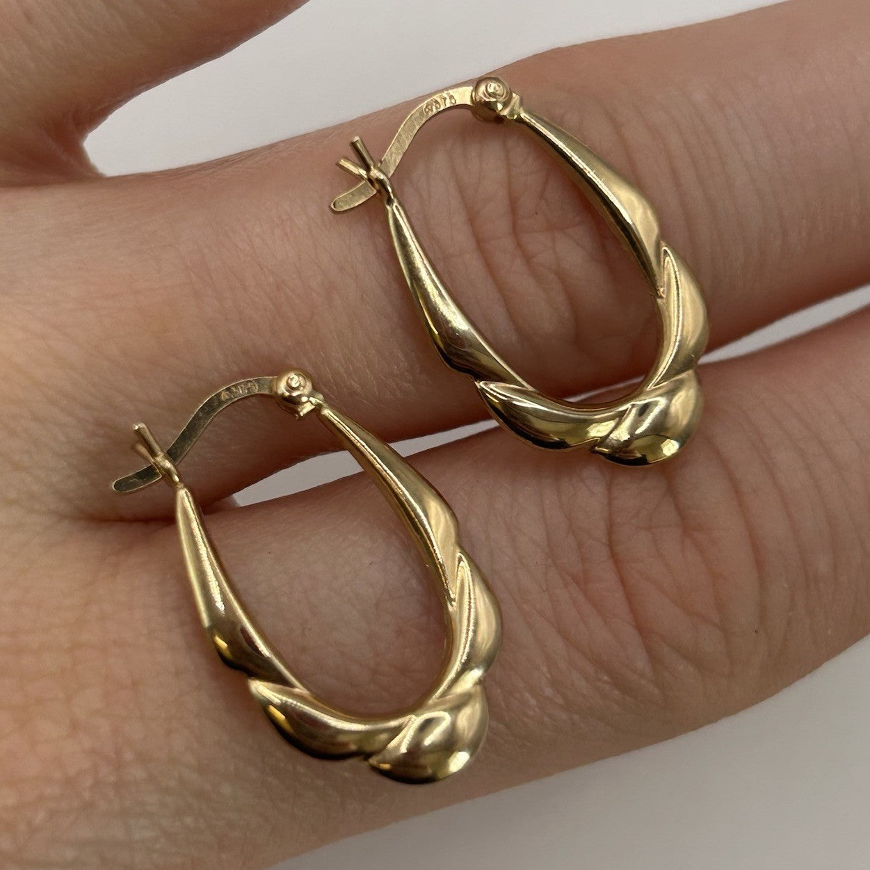 Elongated Hoop Latch Earrings 9ct 9k 375 Yellow Gold