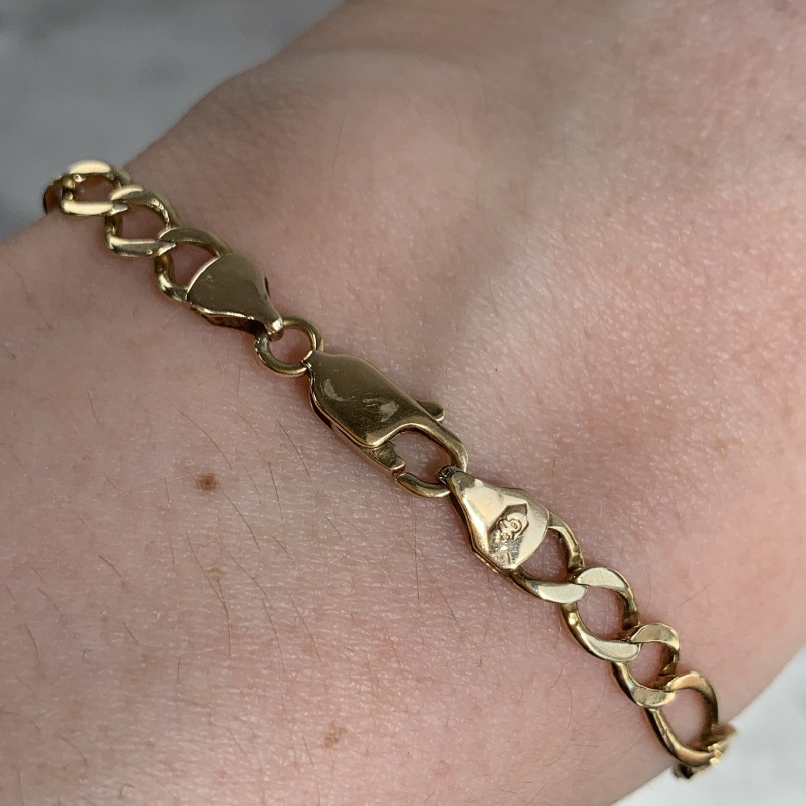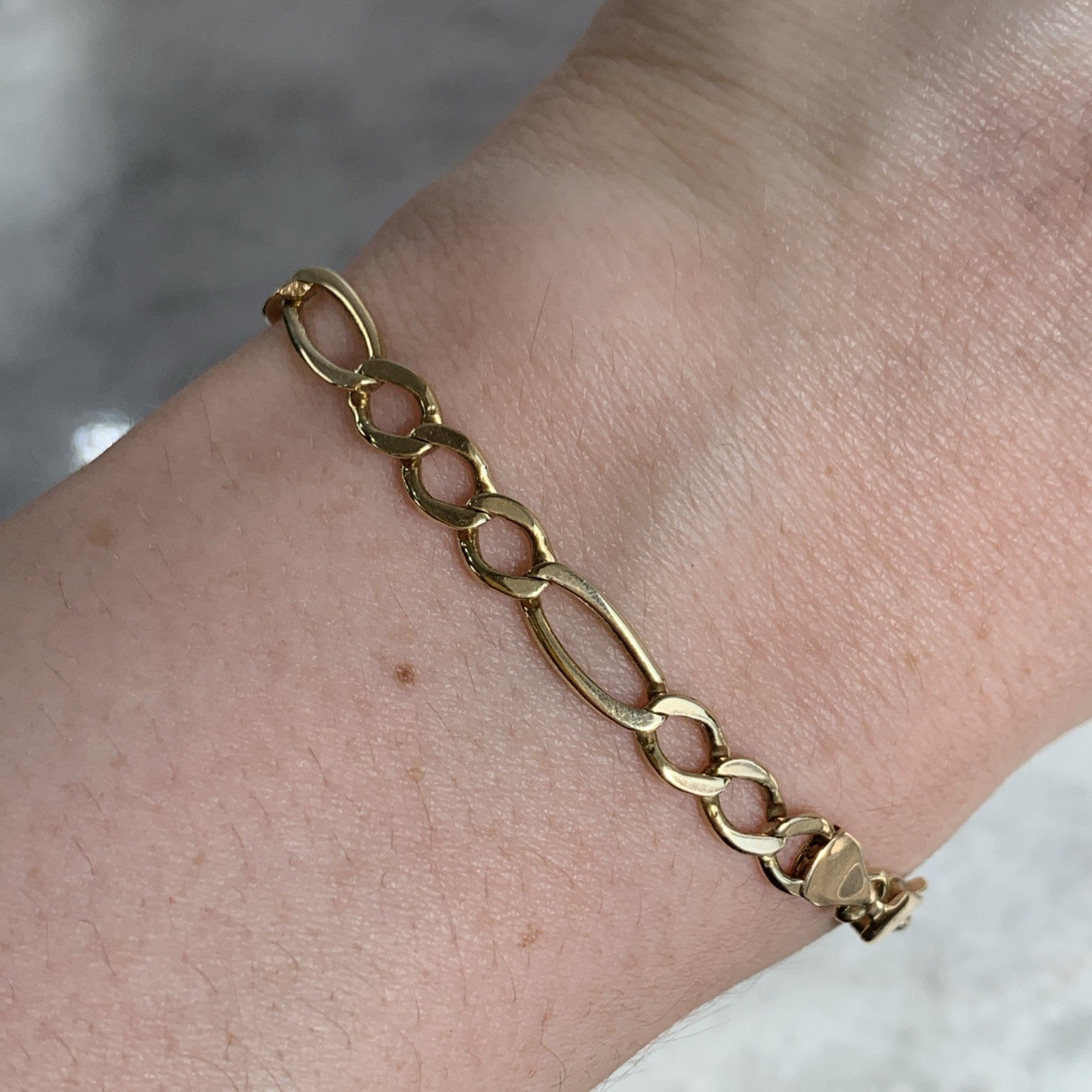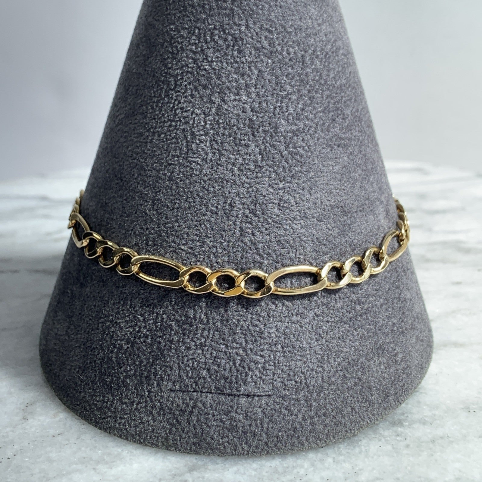 A timeless gold figaro chain bracelet. Lobster claw closure.