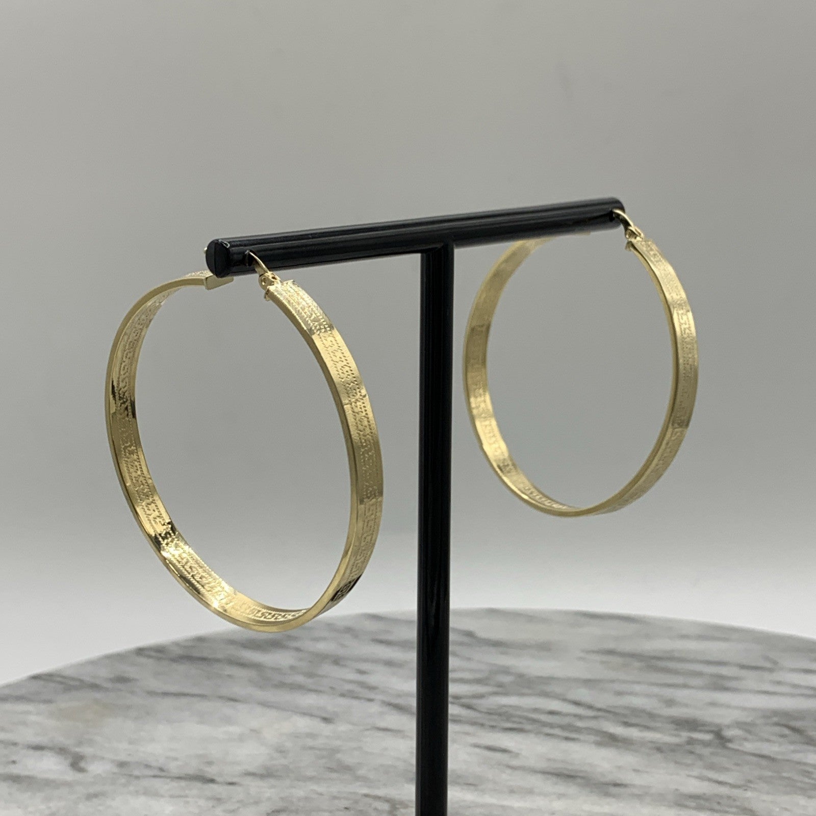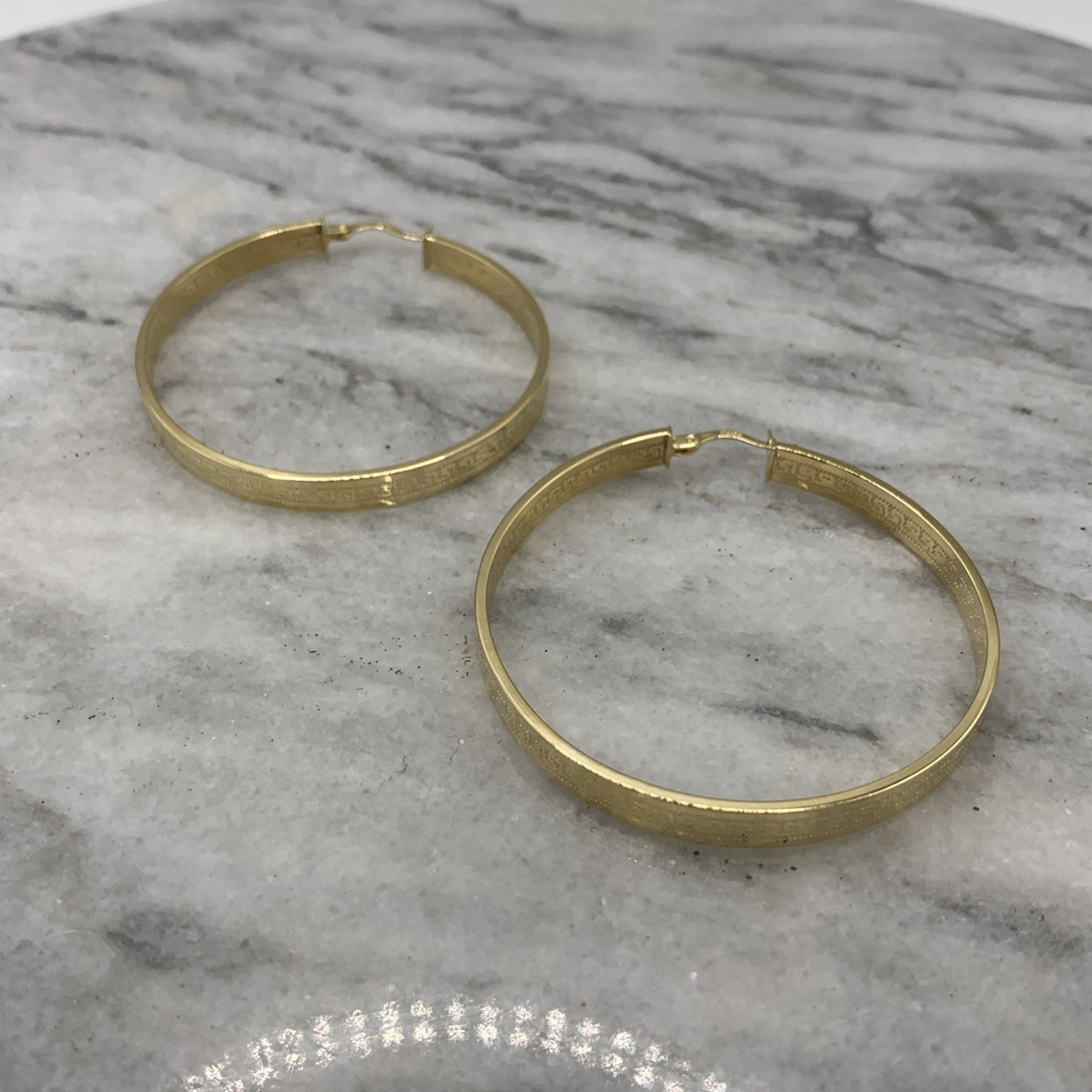 Greek Key Hoop Earrings 14ct 588 Yellow Gold 5cm Diameter