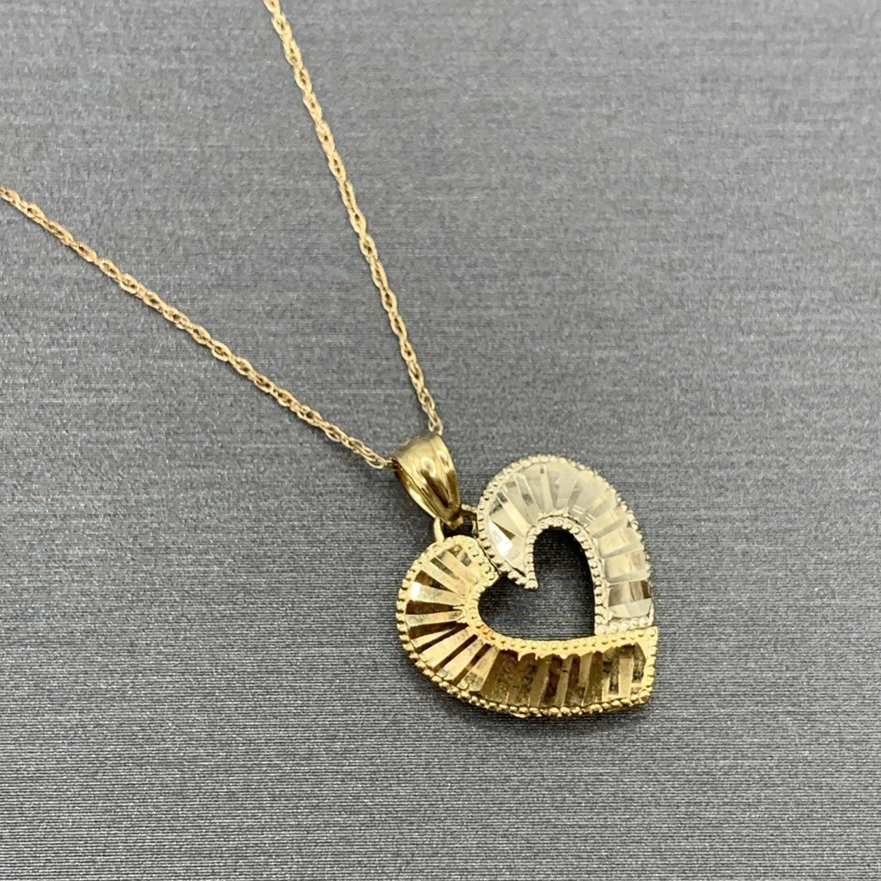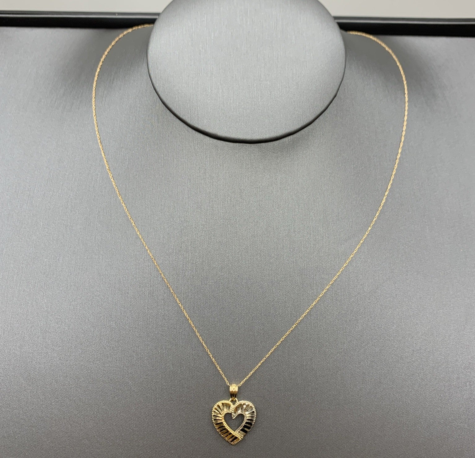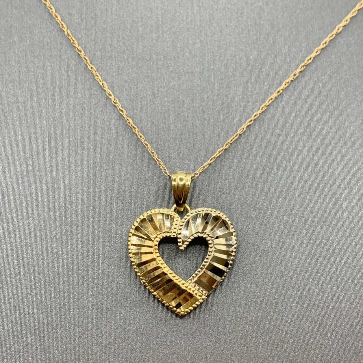 Love Heart Pendant Fine Chain Necklace 10ct 10k 417 Yellow Gold - 18" Inches