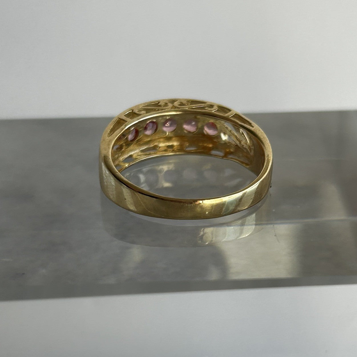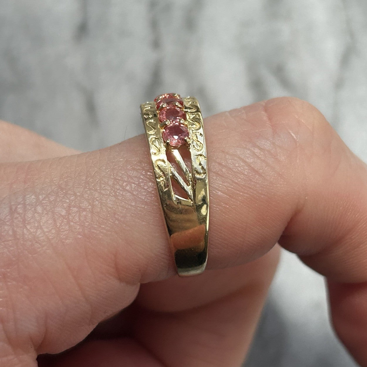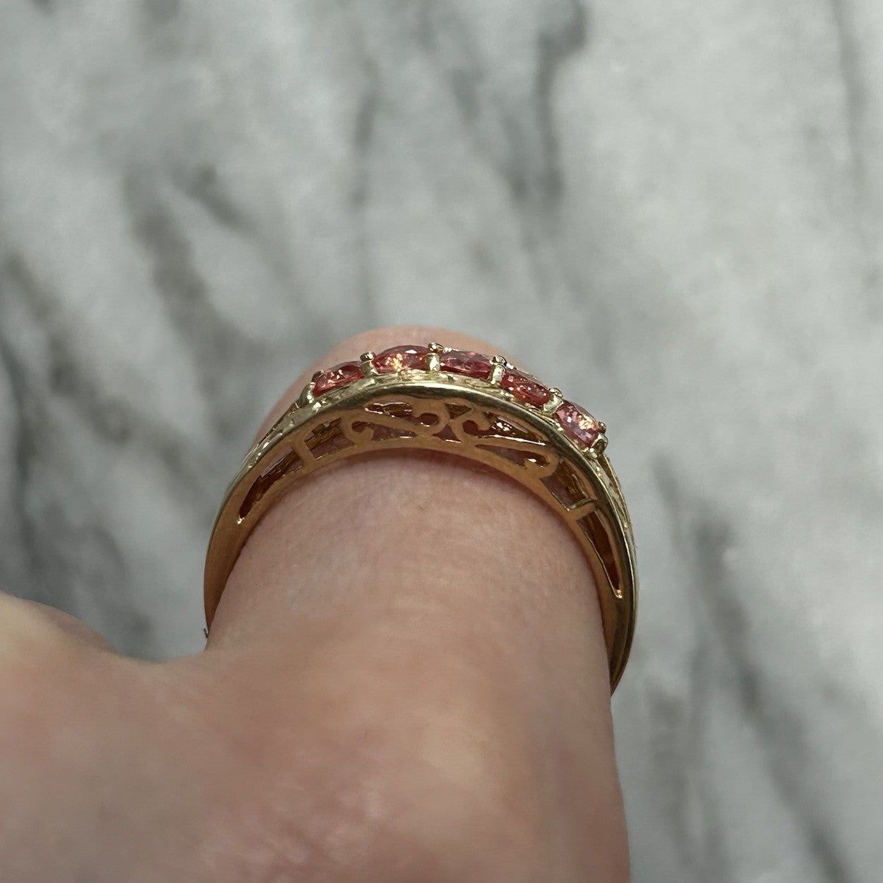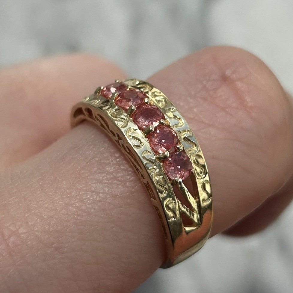 Pink Orange Sapphire Five Stone Band Ring 18ct 18k 375 Yellow Gold - Size Q 1/2