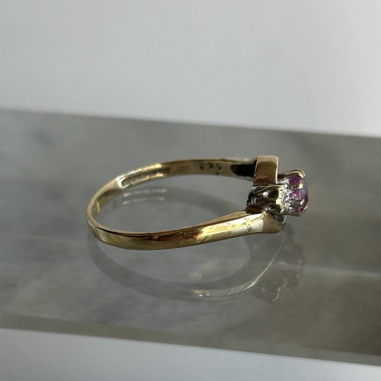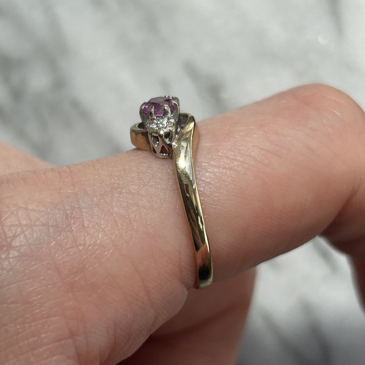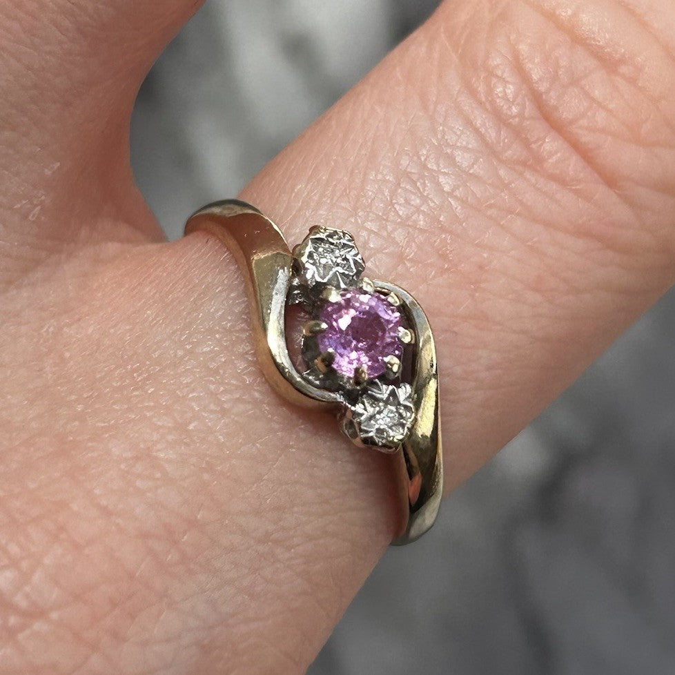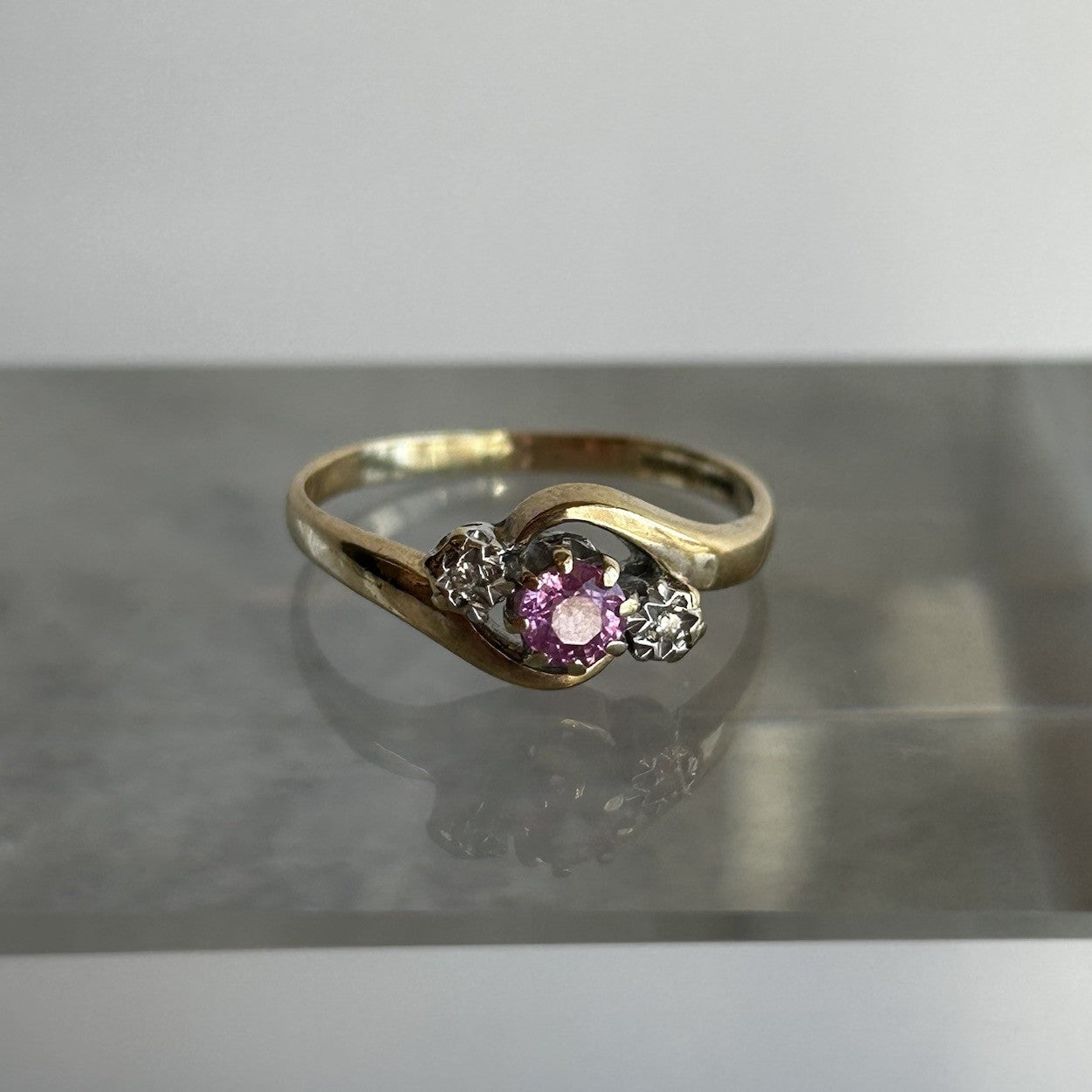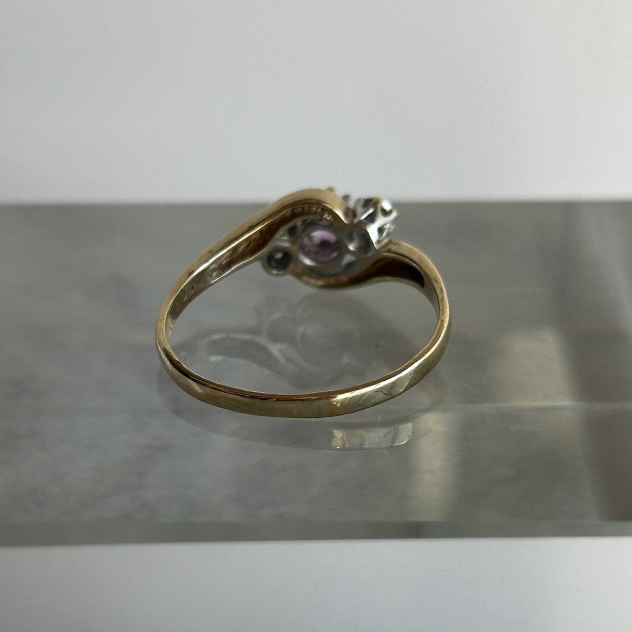 Pink Topaz & Diamond Bypass Ring 9ct 9k 375 Yellow Gold- Size Q