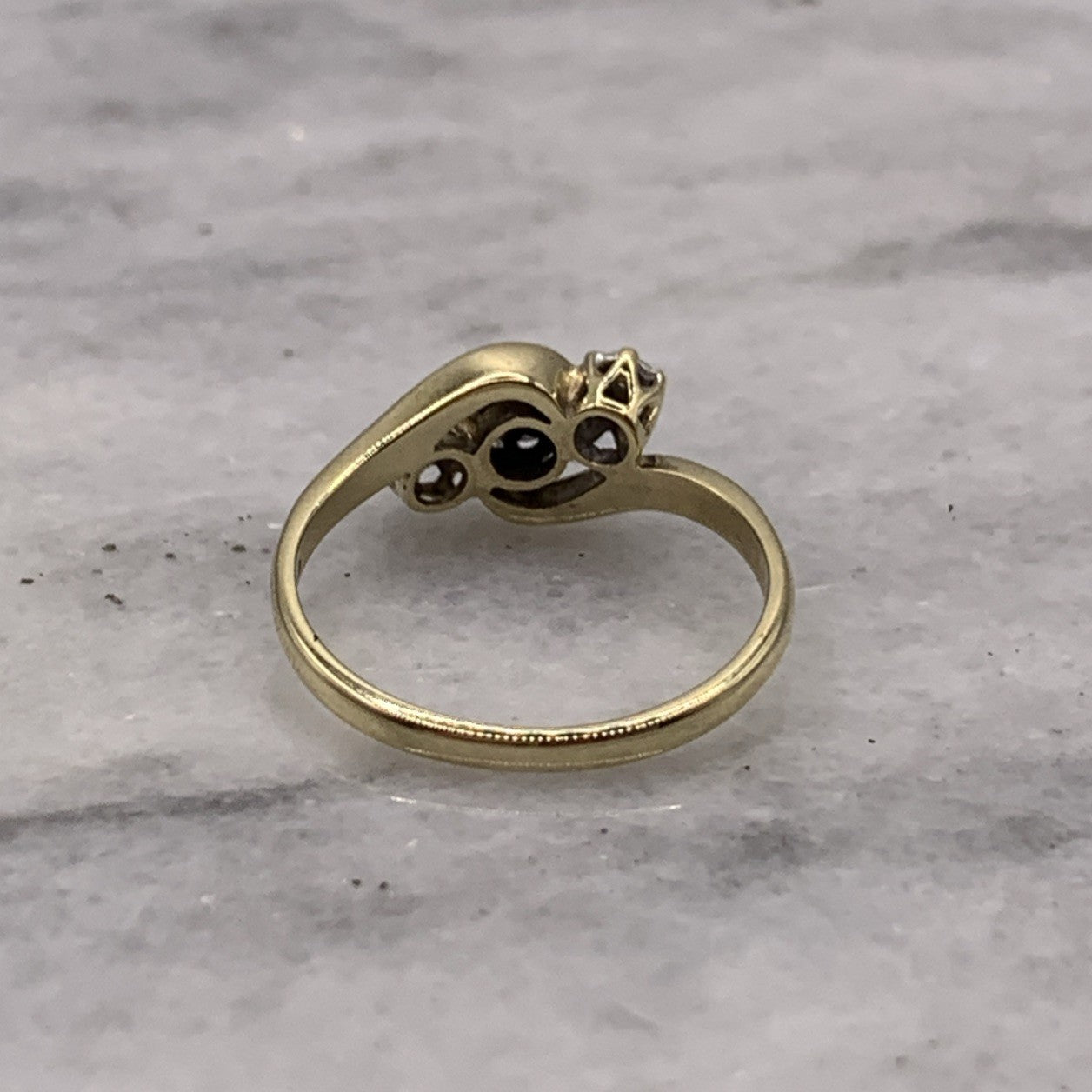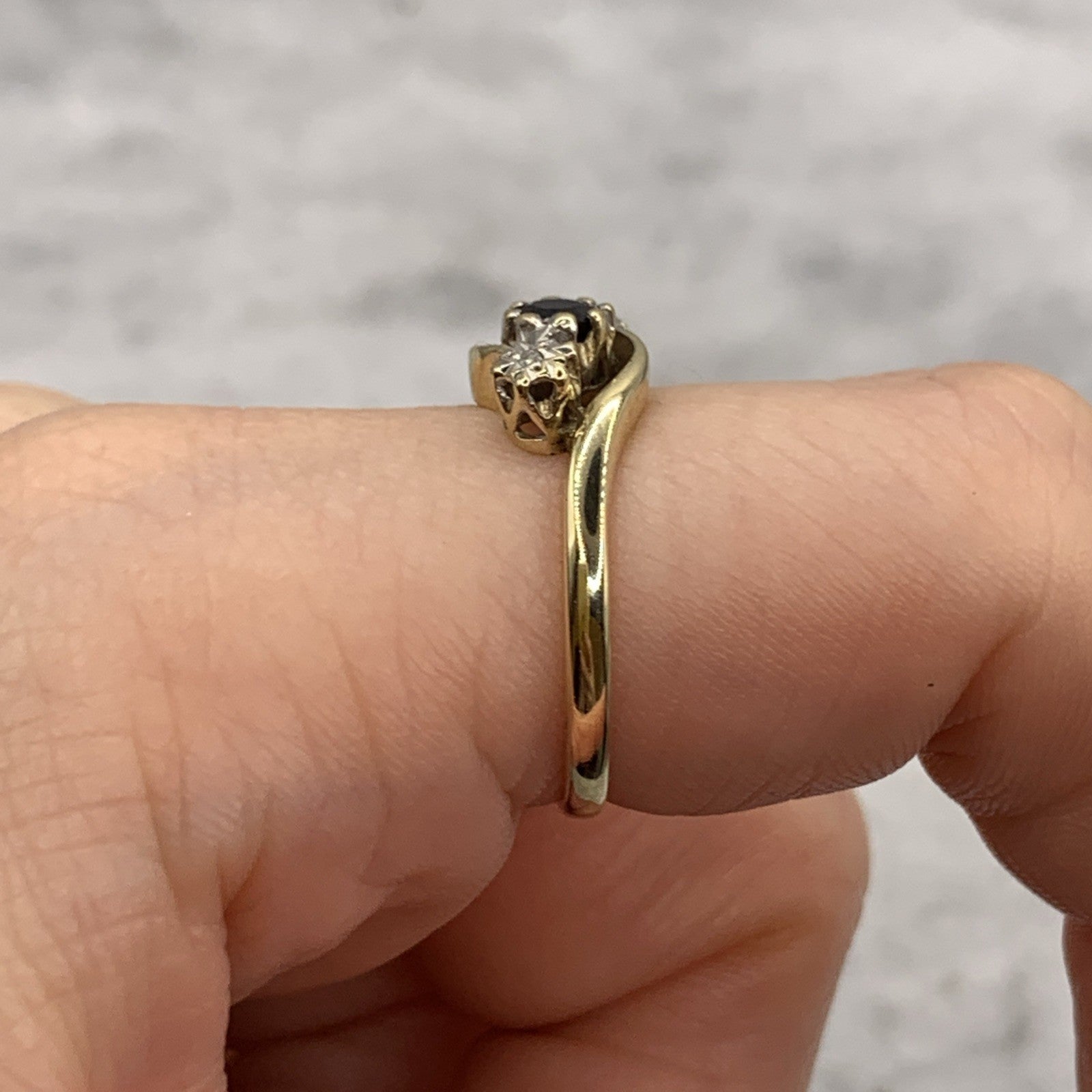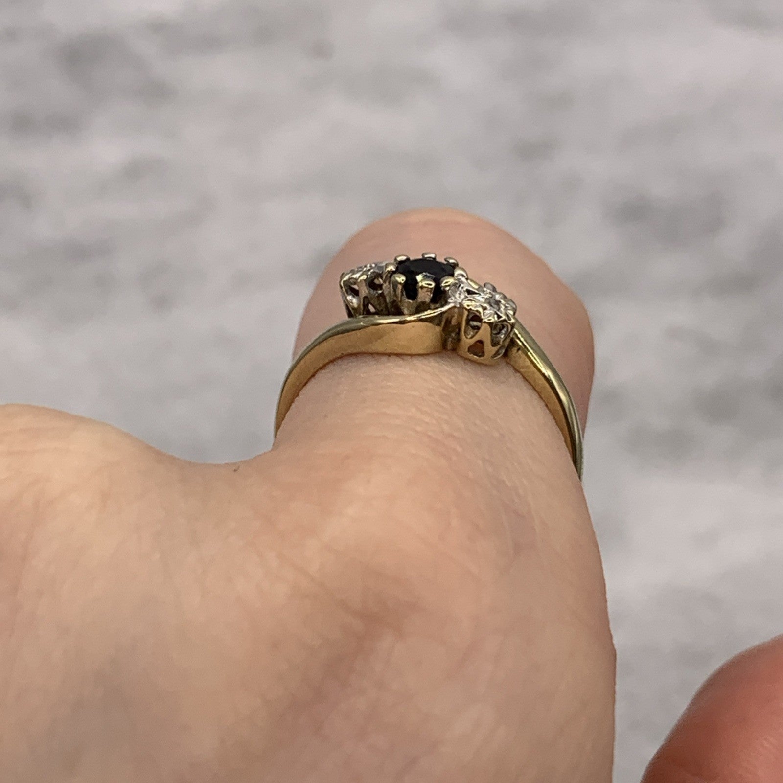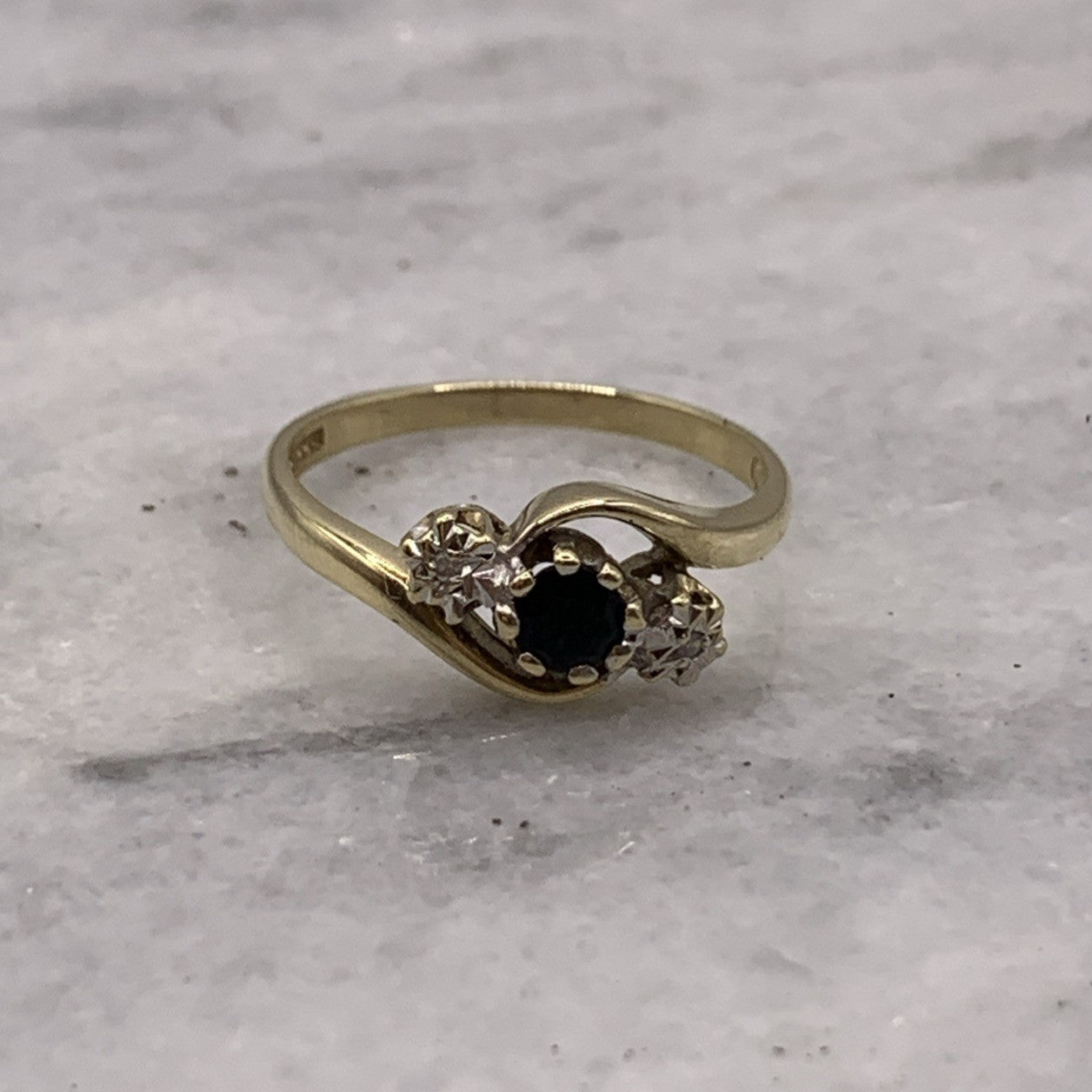 Sapphire & Diamond Three Stone Bypass Ring 9ct 375 Yellow Gold - Size O
