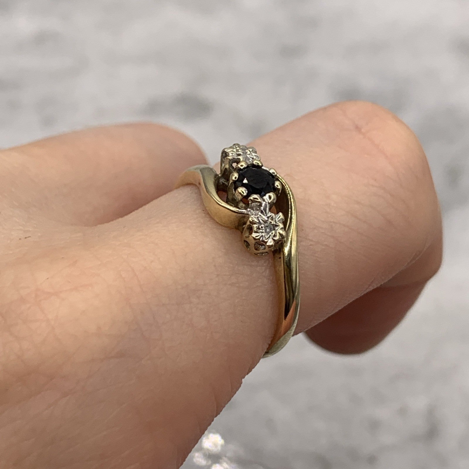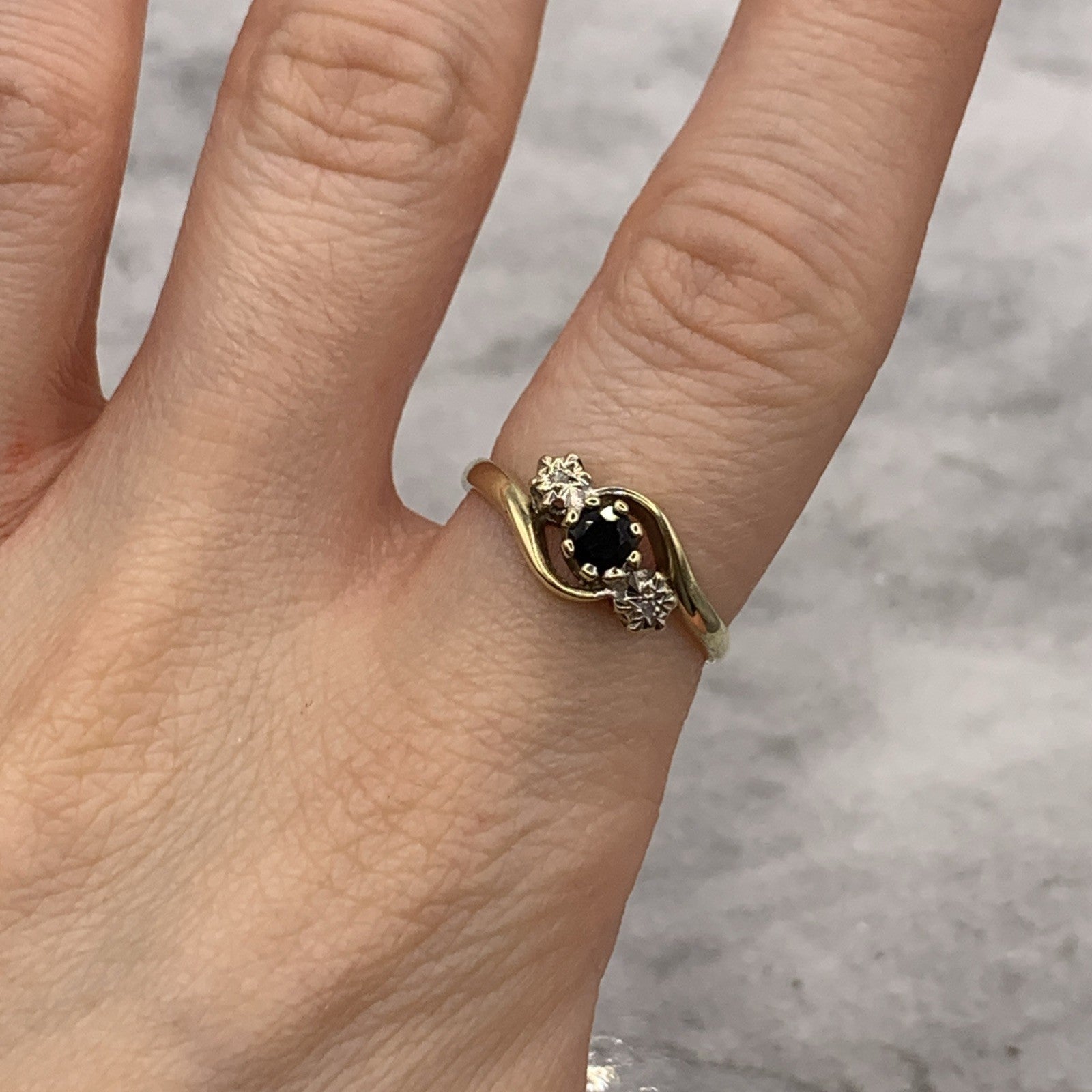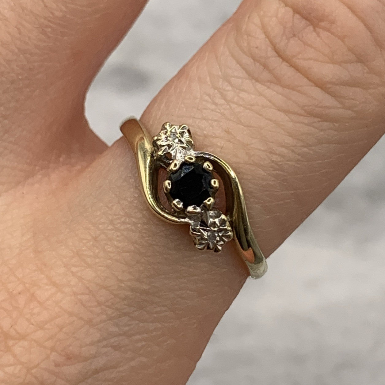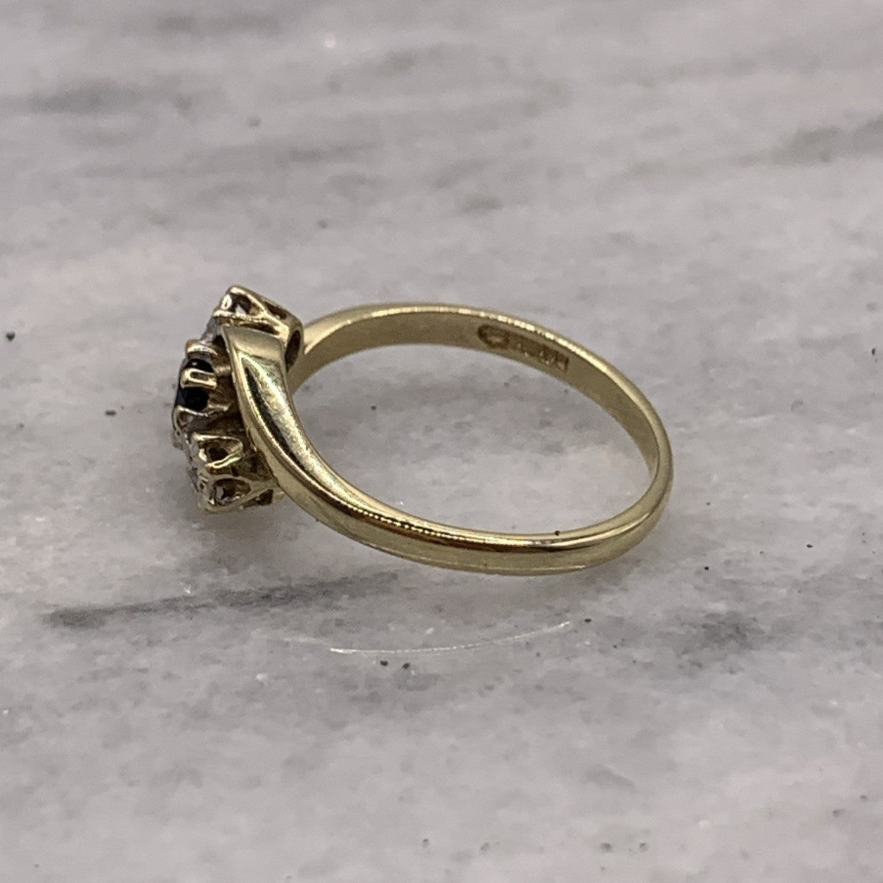 Sapphire & Diamond Three Stone Bypass Ring 9ct 375 Yellow Gold - Size O