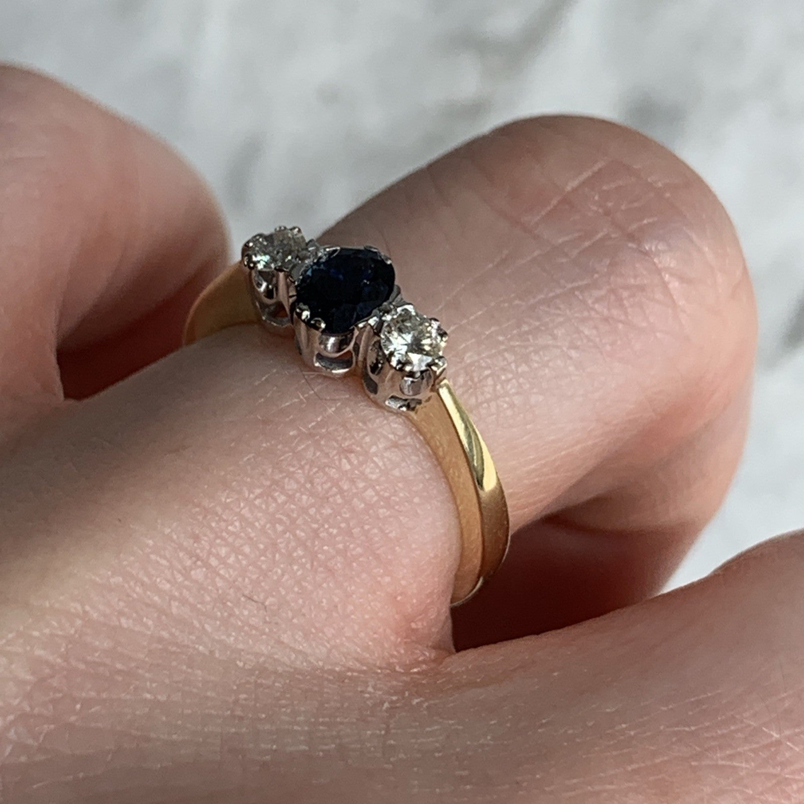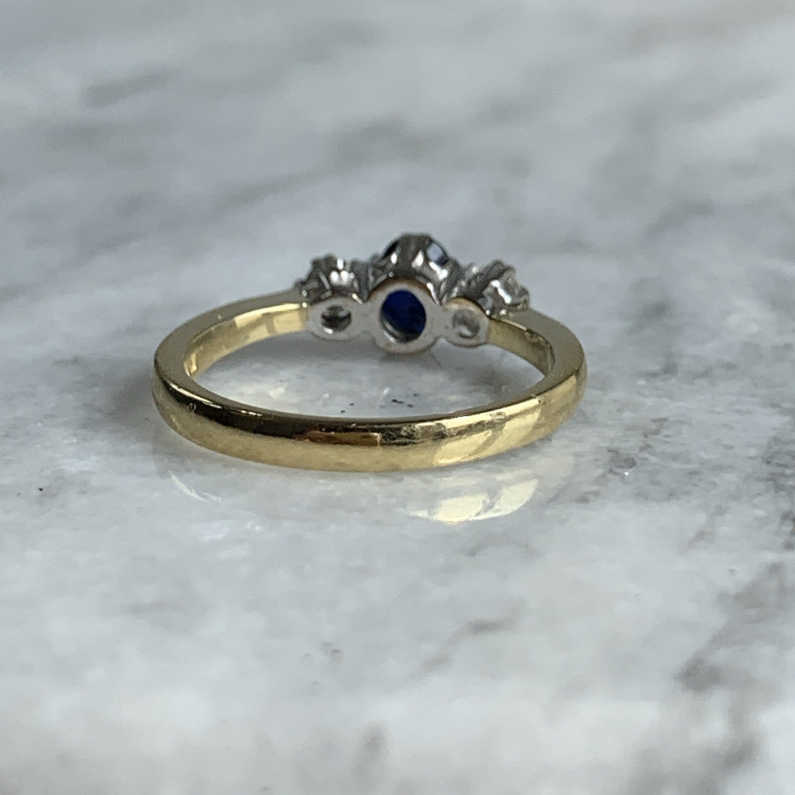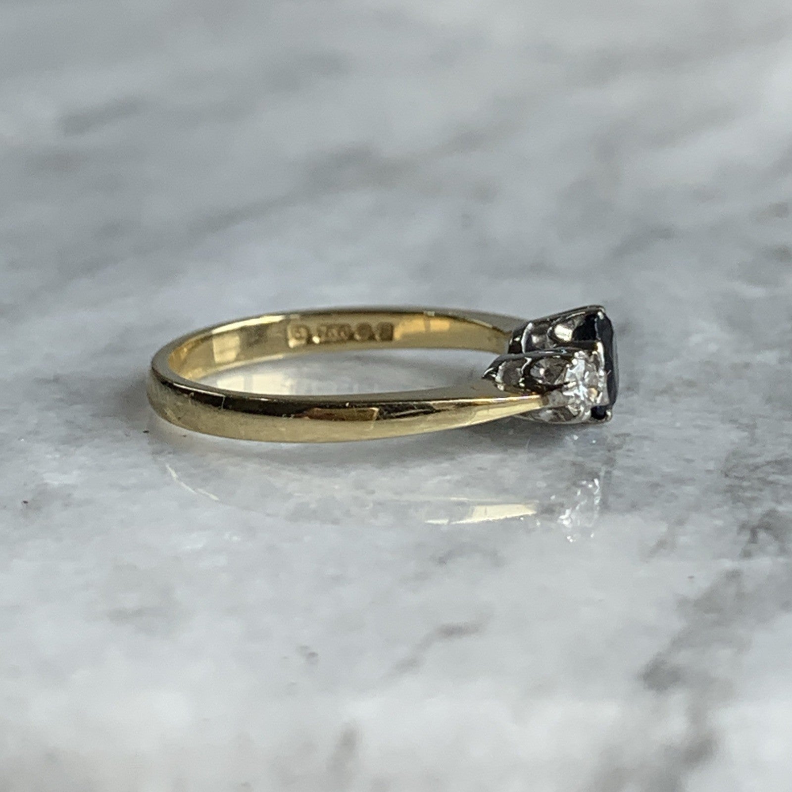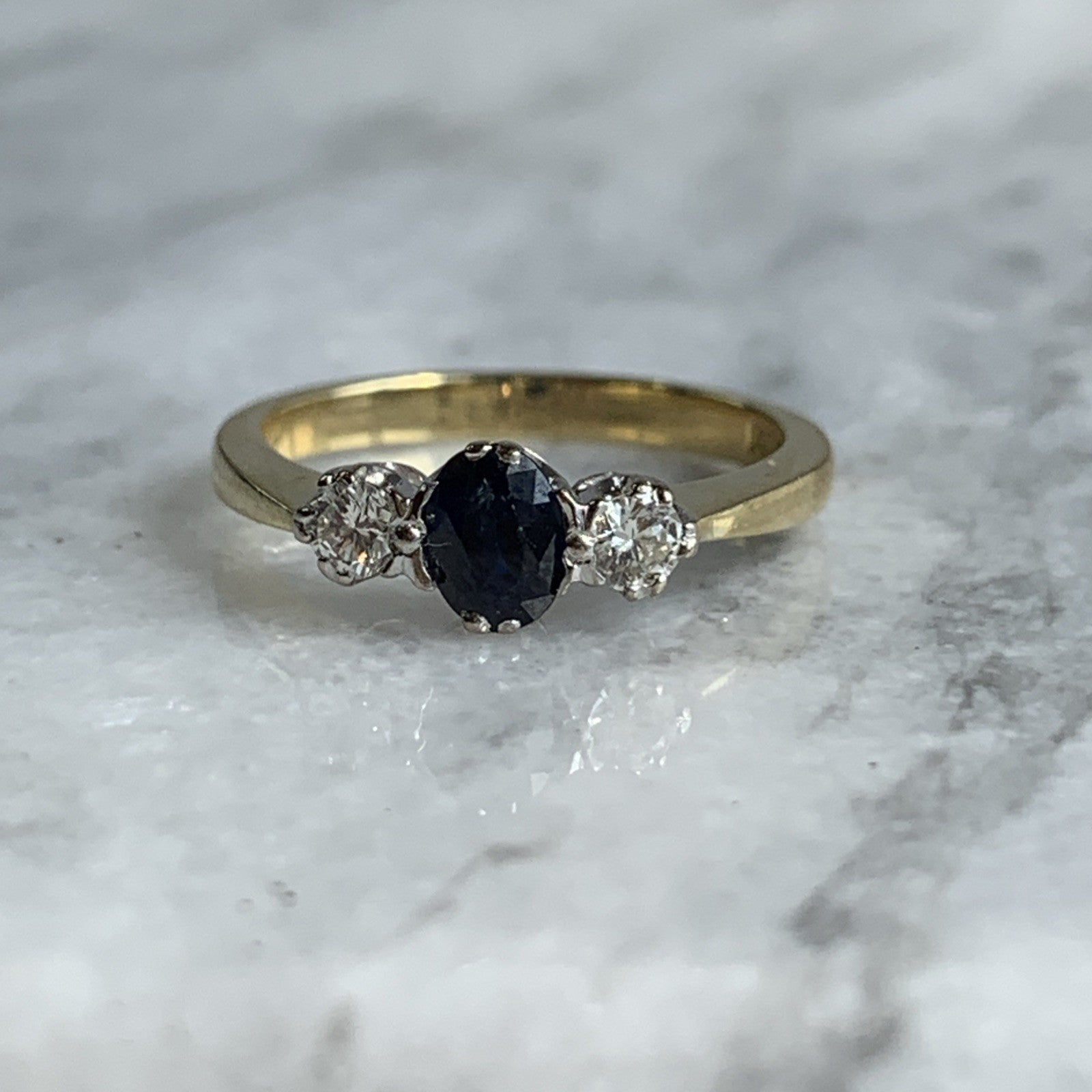 Sapphire & Diamond Trilogy Ring 18ct 750 Yellow Gold - Size J