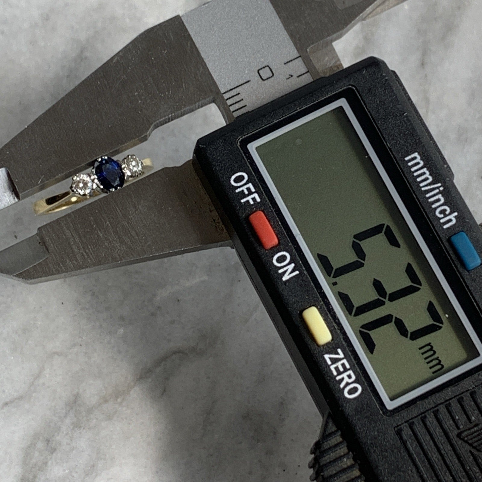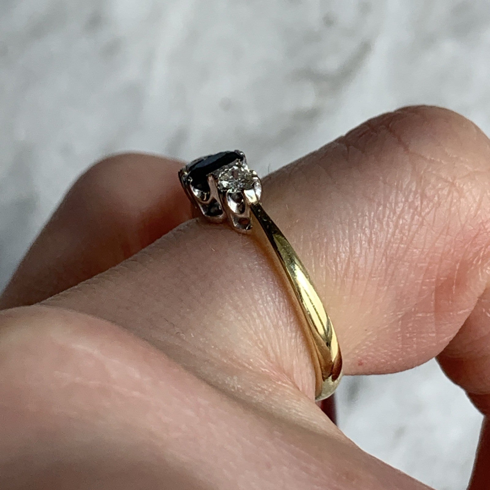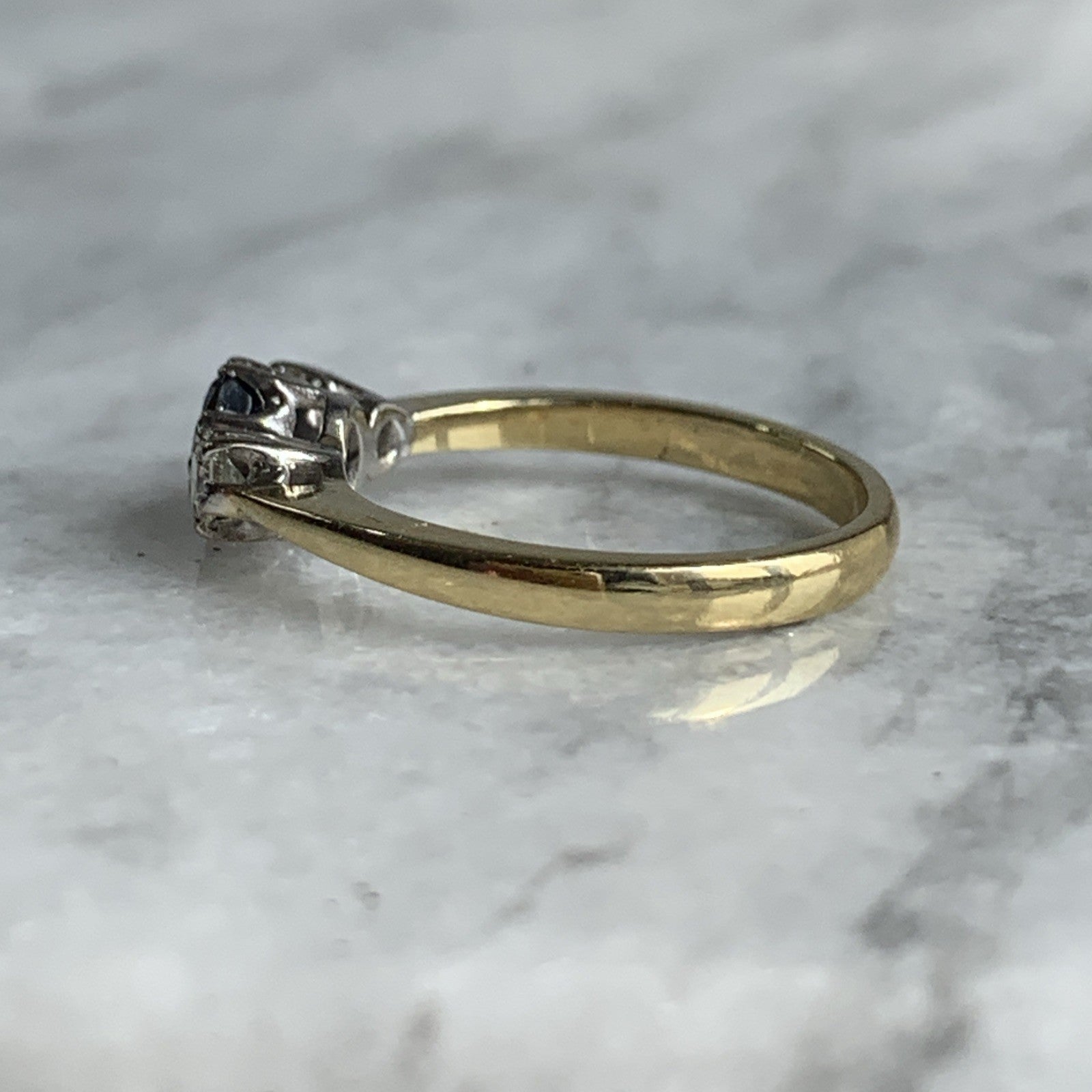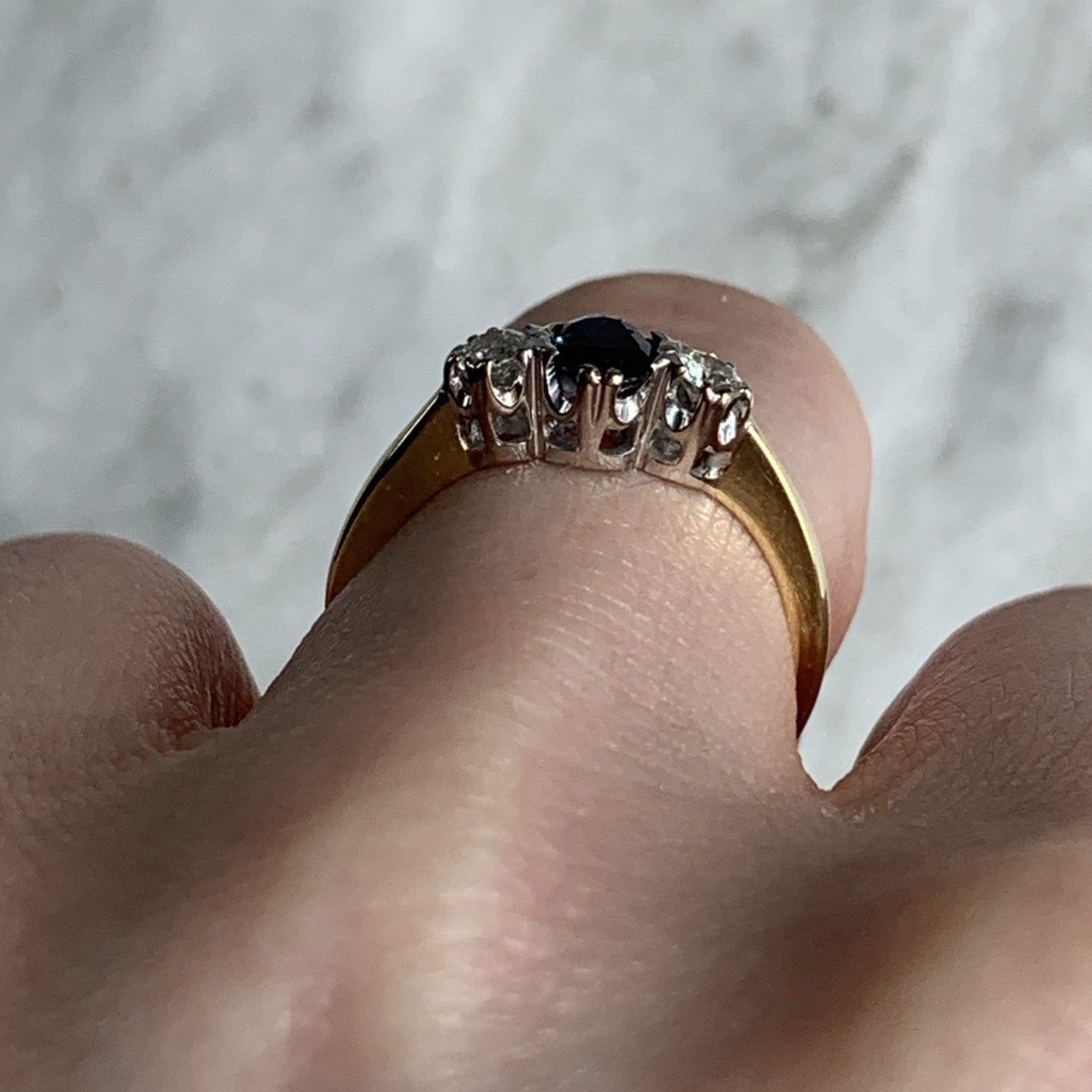 Sapphire & Diamond Trilogy Ring 18ct 750 Yellow Gold - Size J