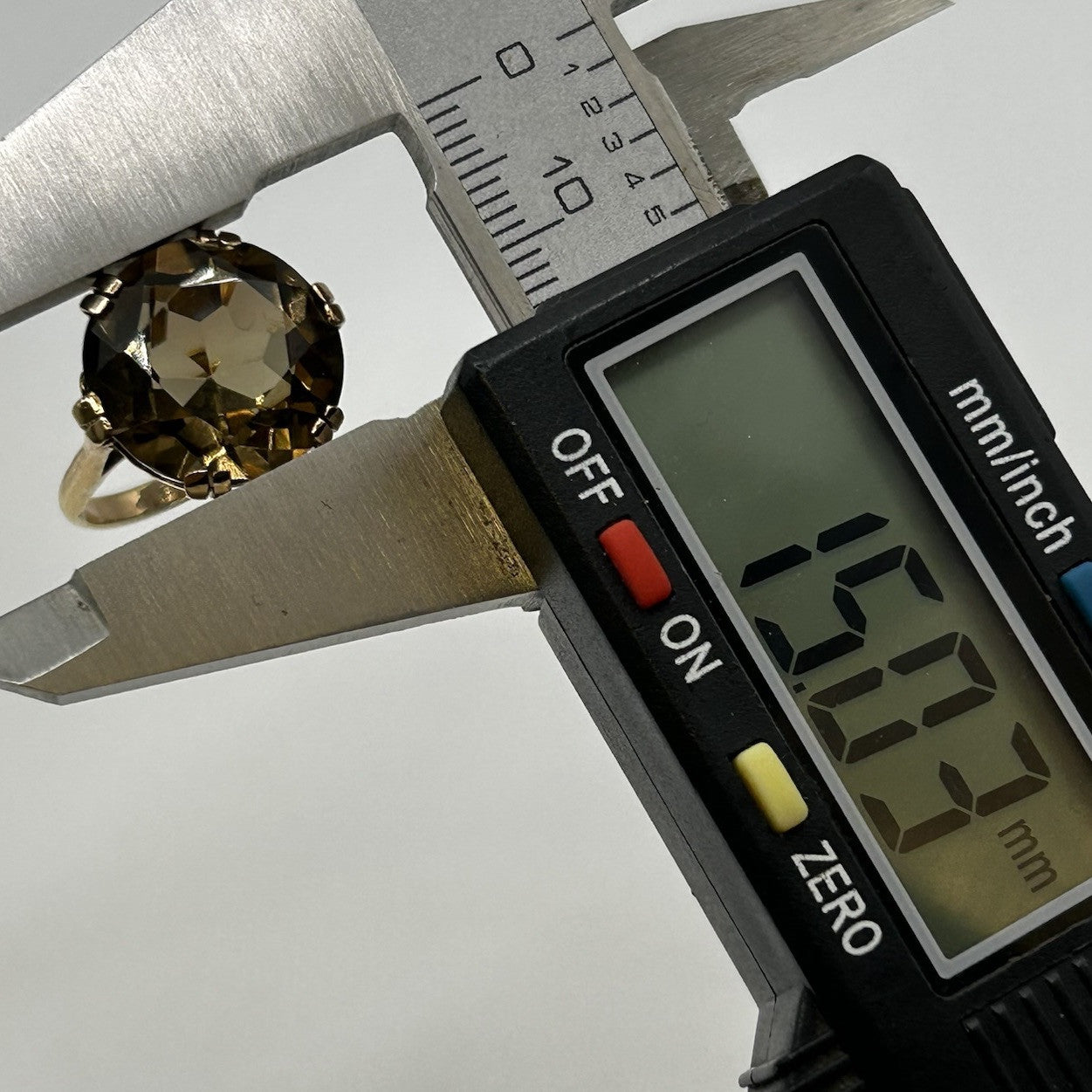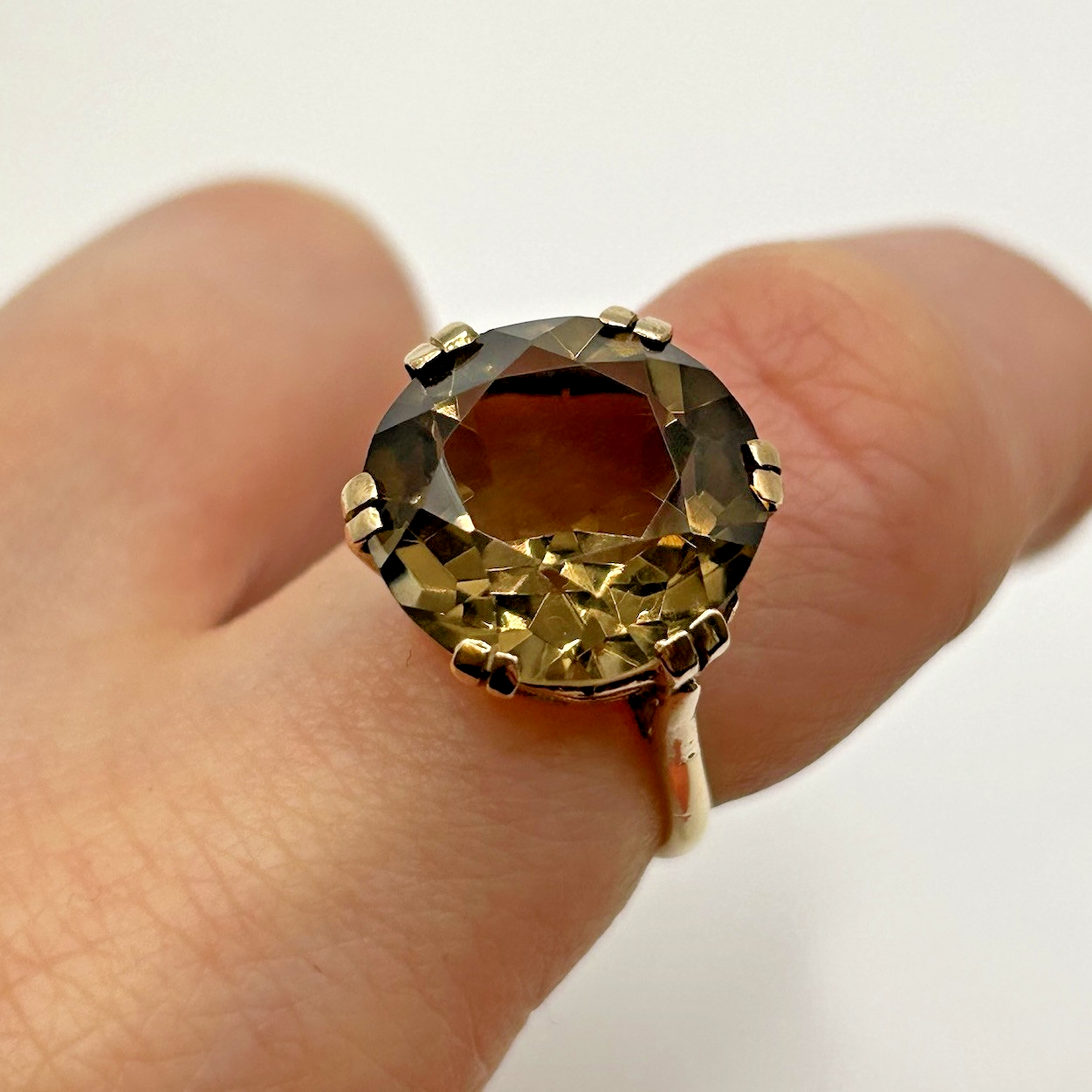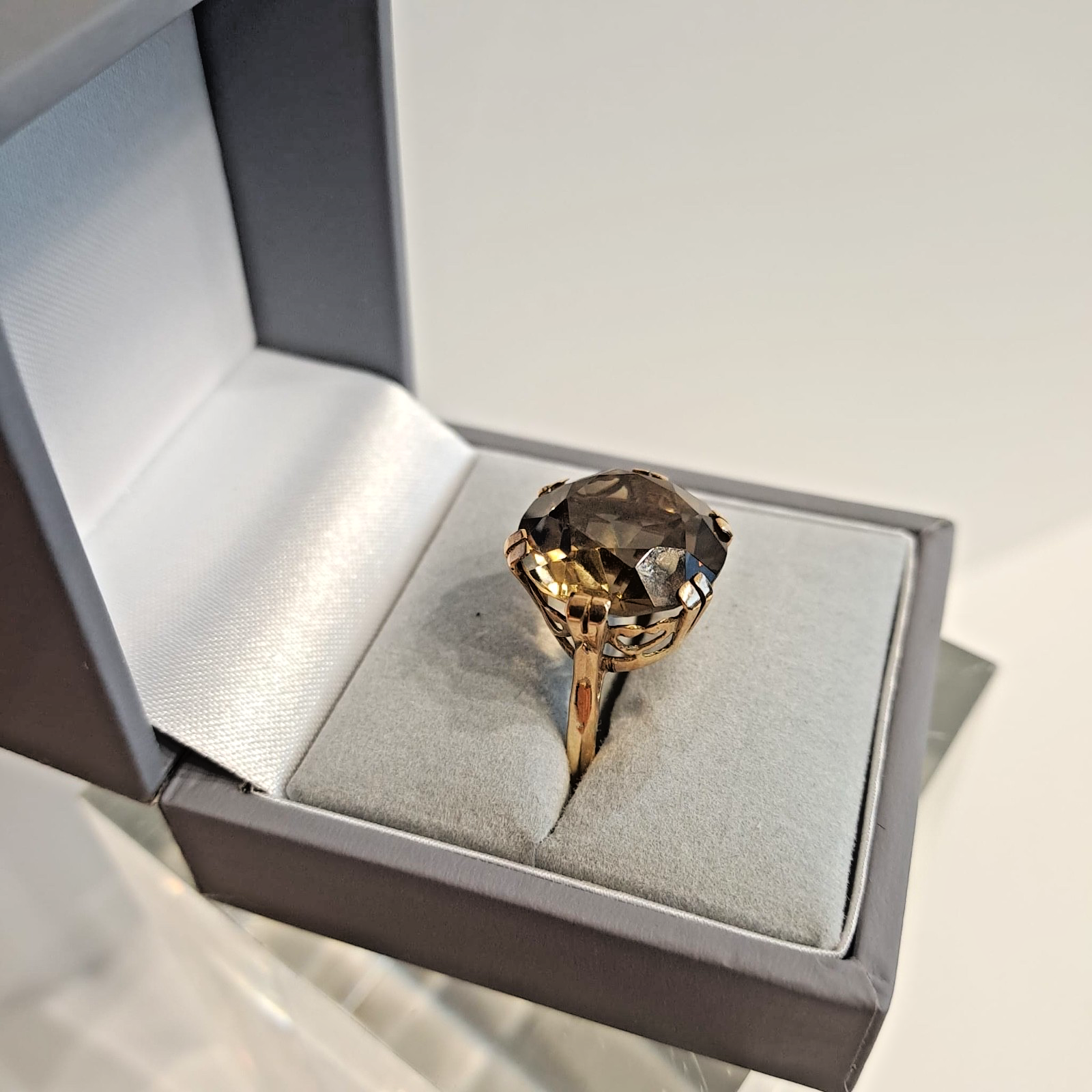 Smoky Quartz Ring 9ct Gold Ornate Solitaire Heart Cut Out Yellow Gold - Size M