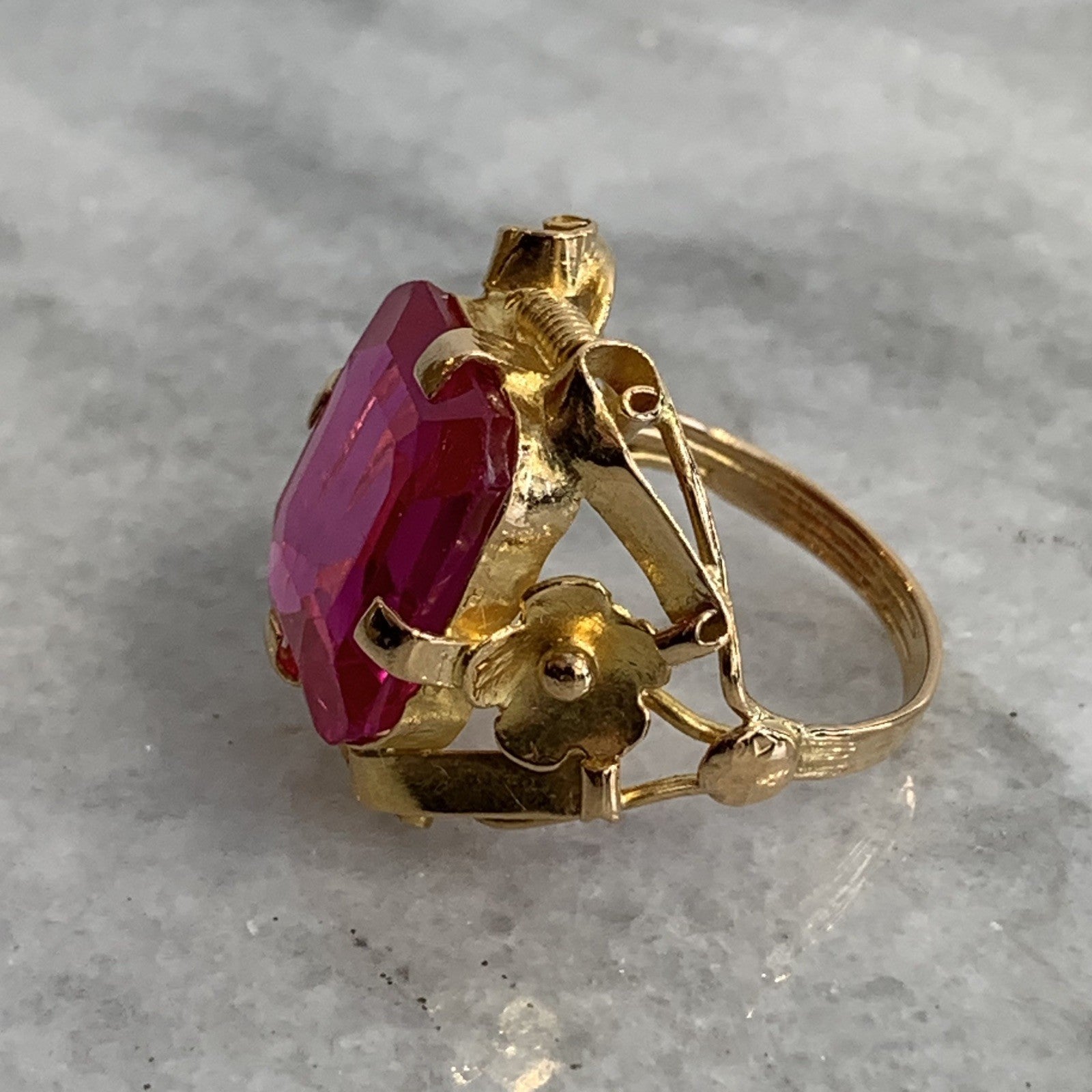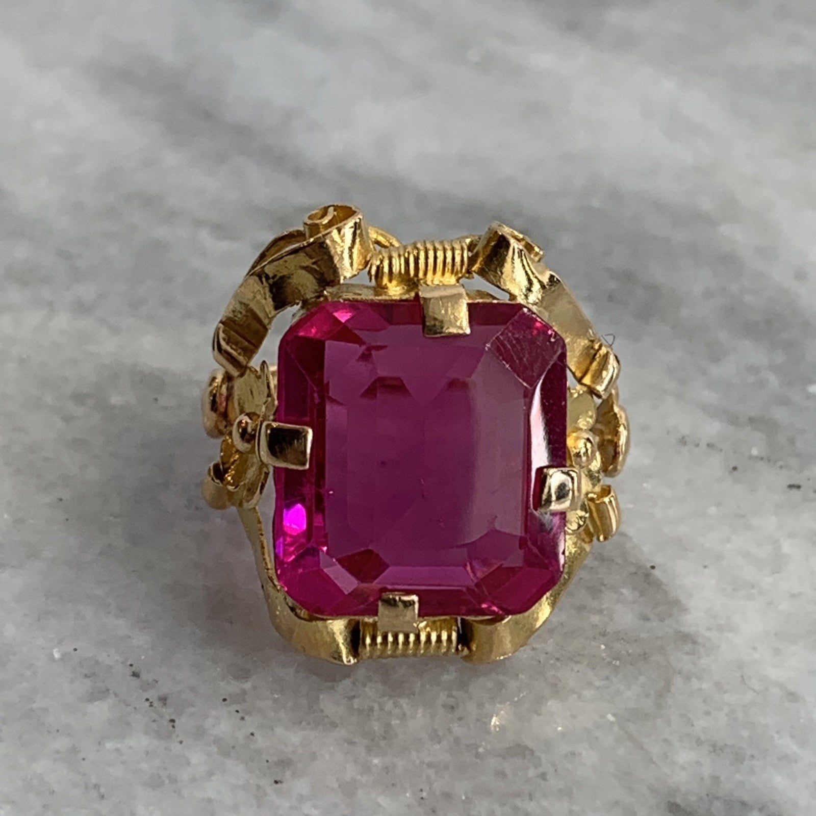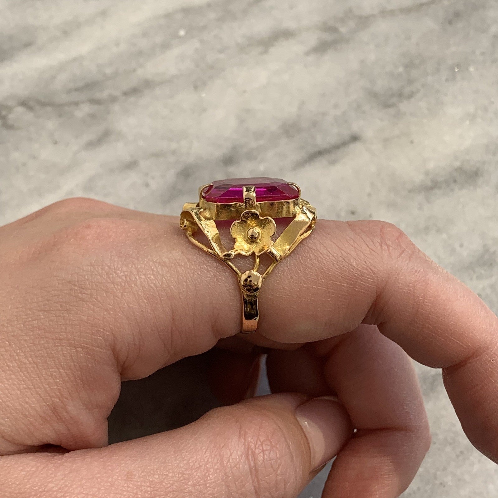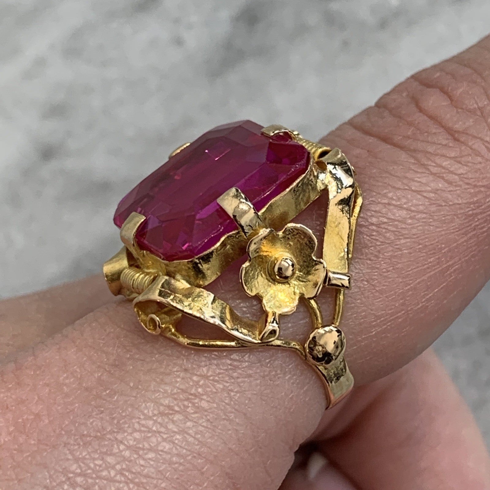 Synthetic Pink Sapphire Ornate Floral Ring 21ct 21k Yellow Gold - Size L 1/2