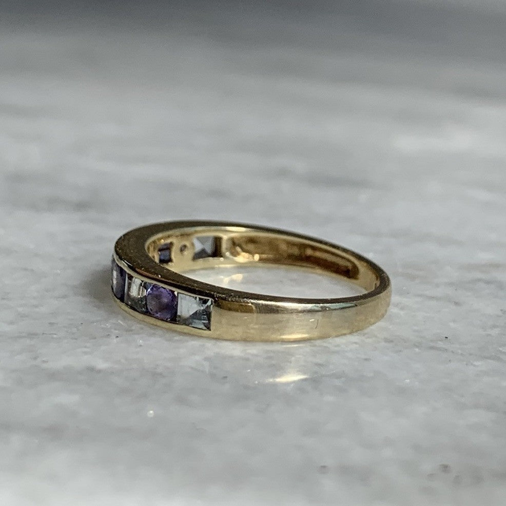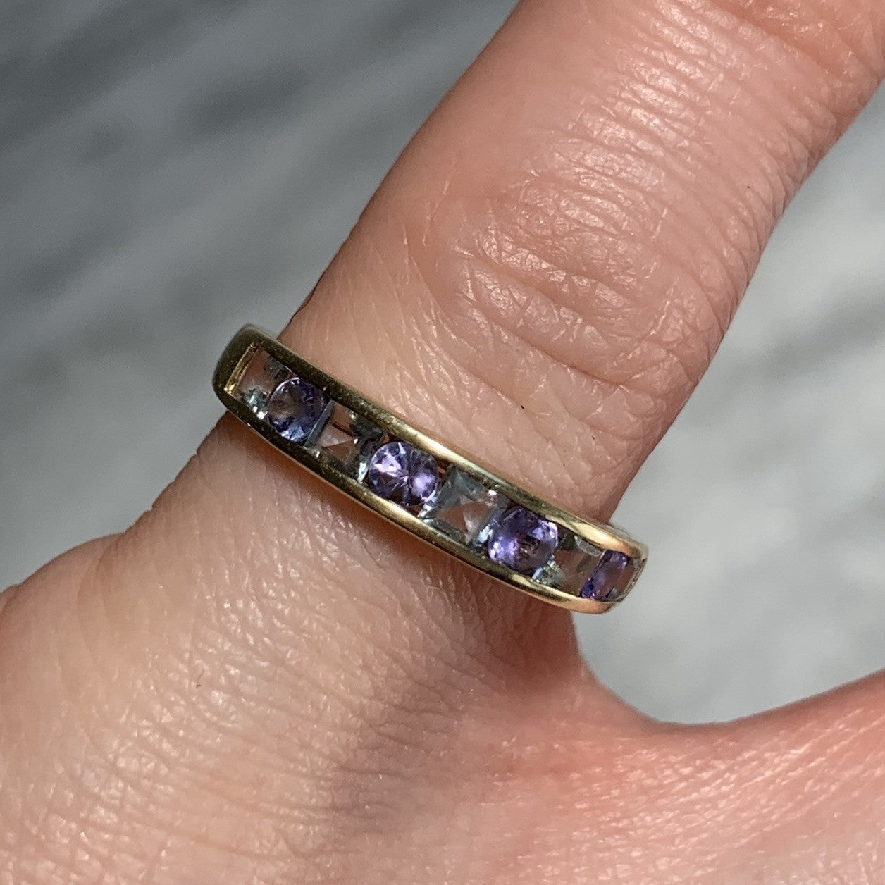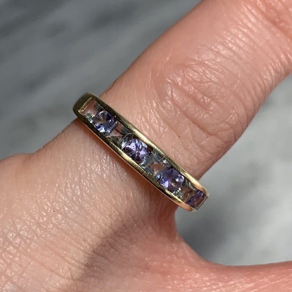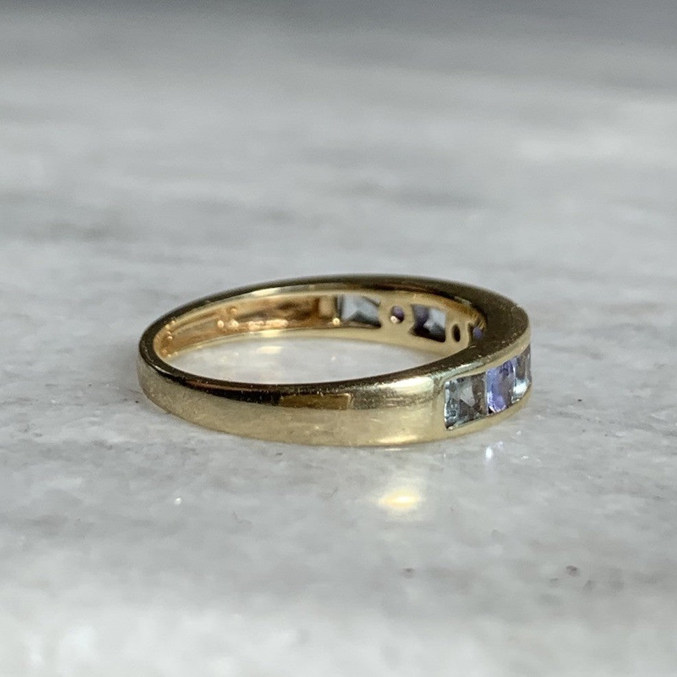 Tanzanite & Aquamarine Channel Set Band Ring 9ct 9k 375 Yellow Gold - Size I 1/2