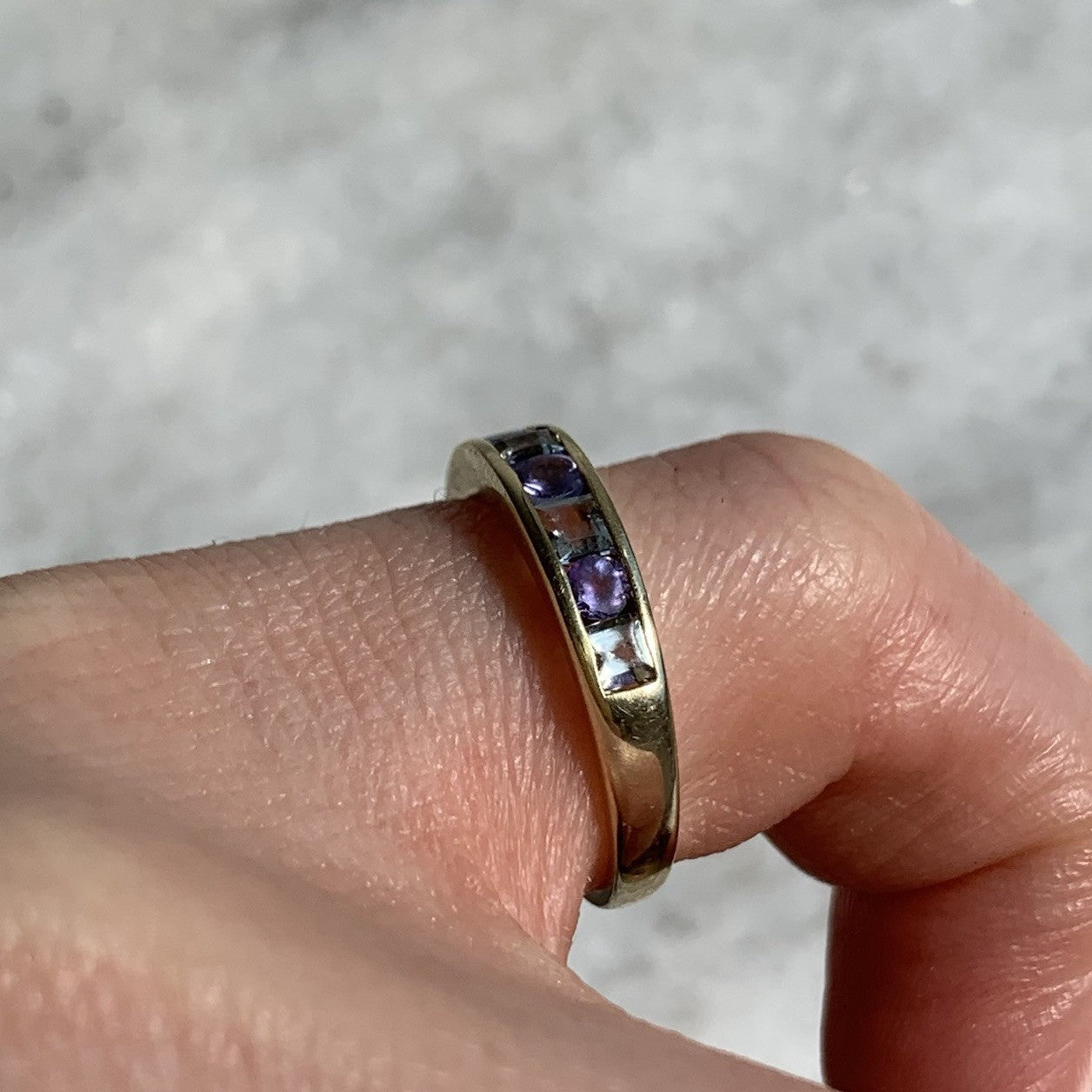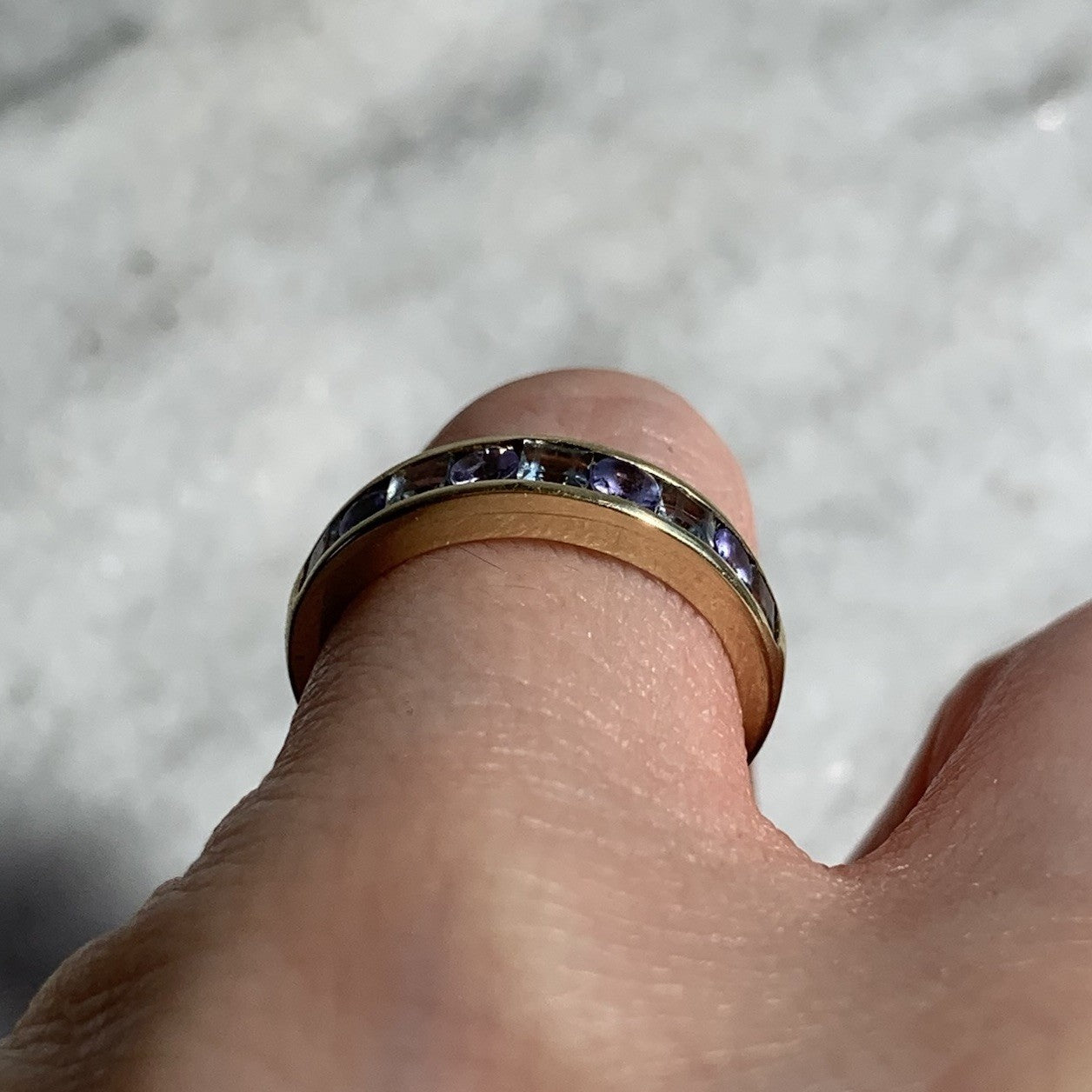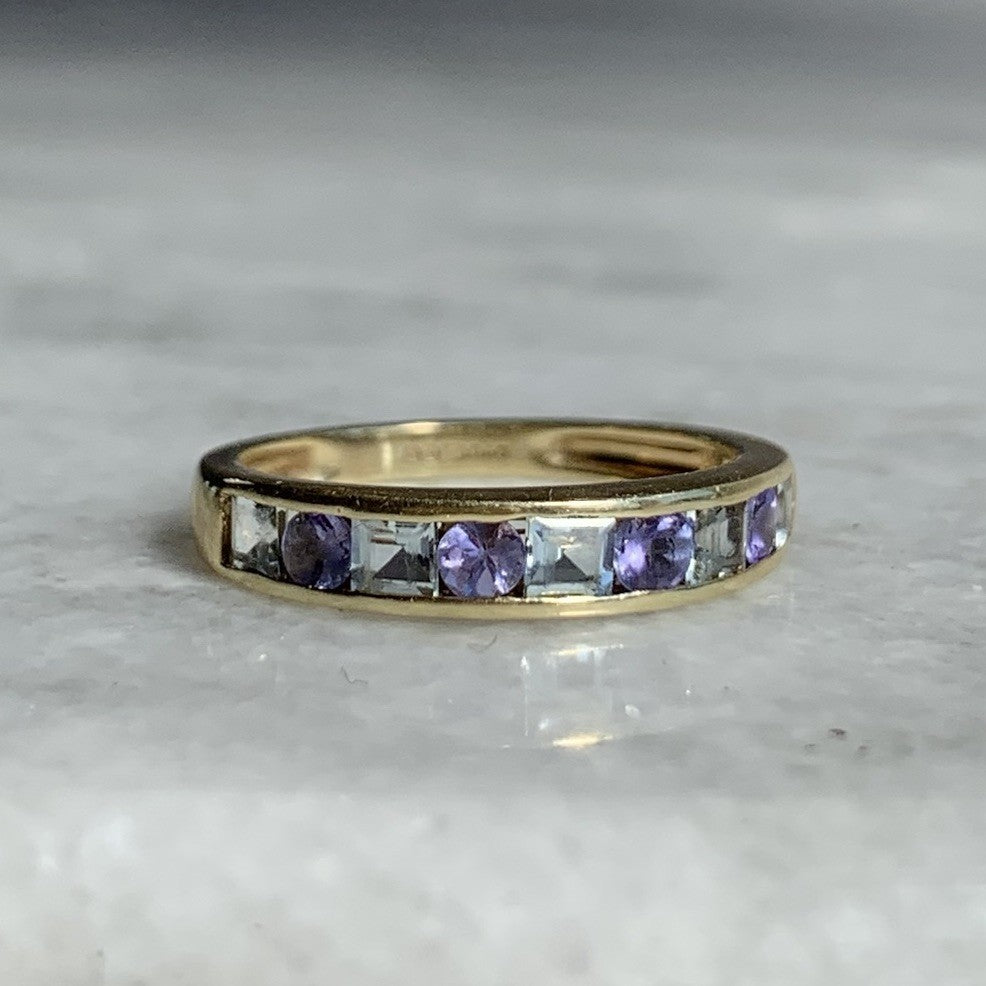 Tanzanite & Aquamarine Channel Set Band Ring 9ct 9k 375 Yellow Gold - Size I 1/2