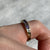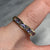 A stunning gold band ring showcasing a channel of alternating princess cut aquamarine and round cut tanzanite.